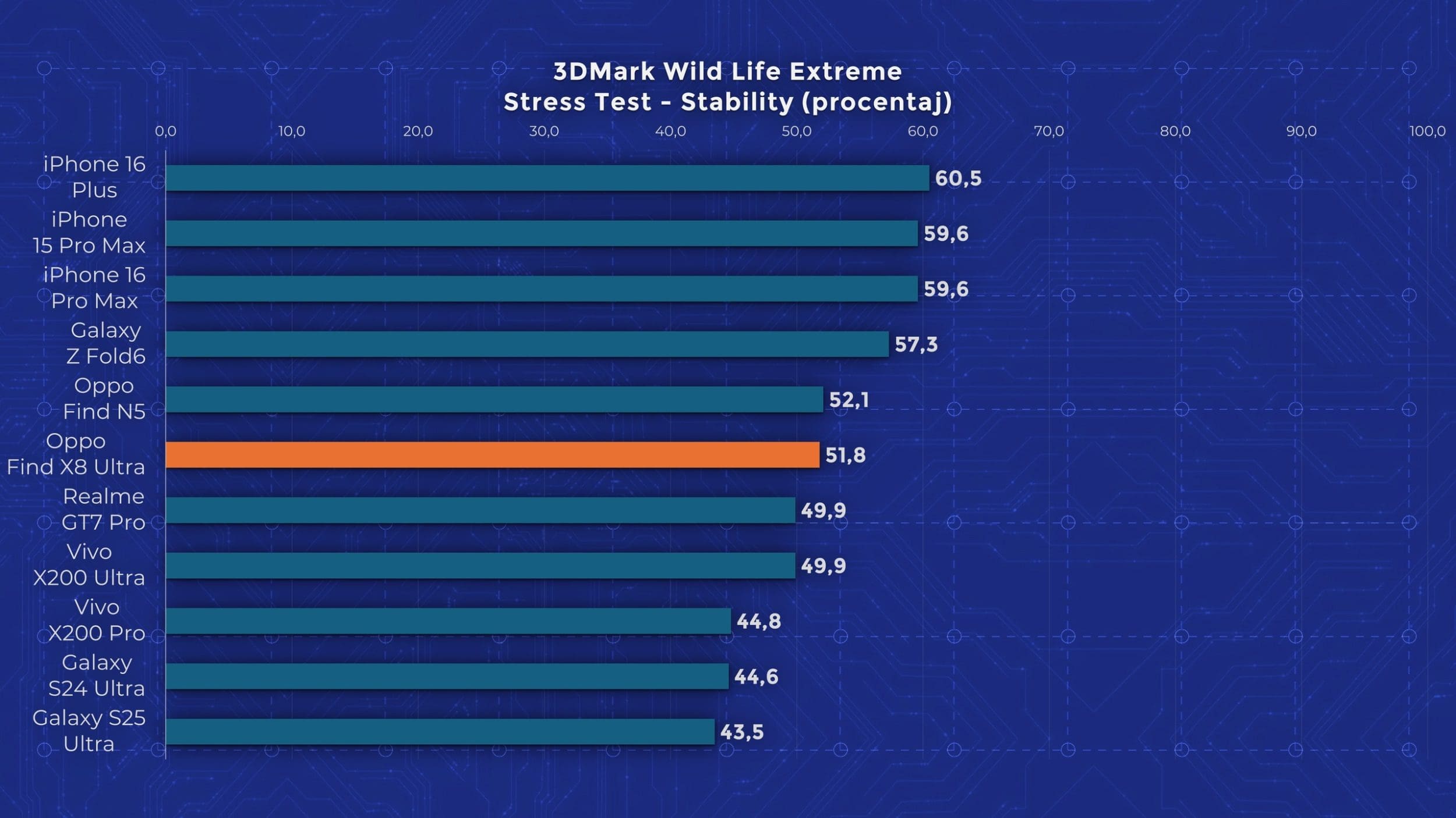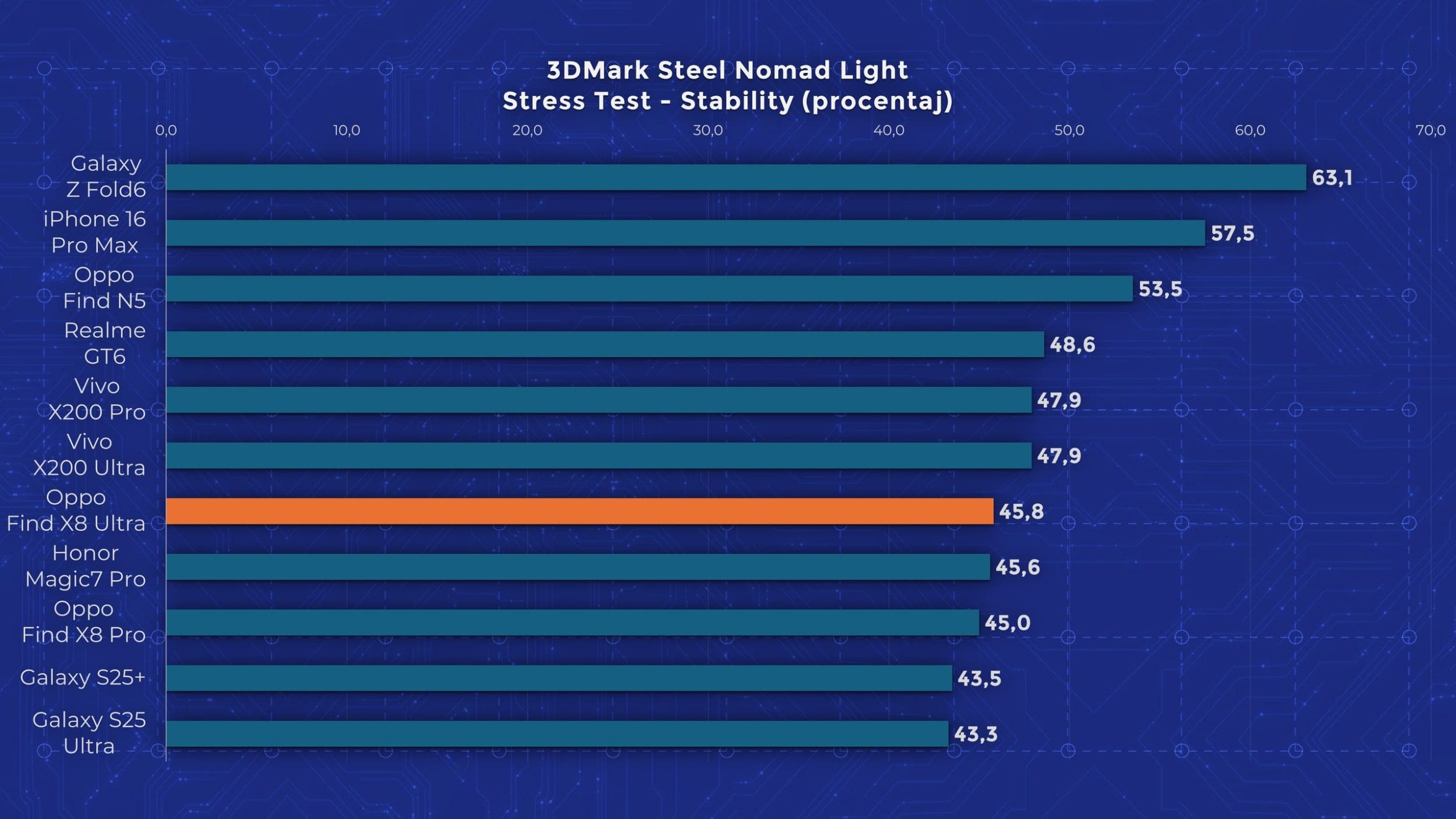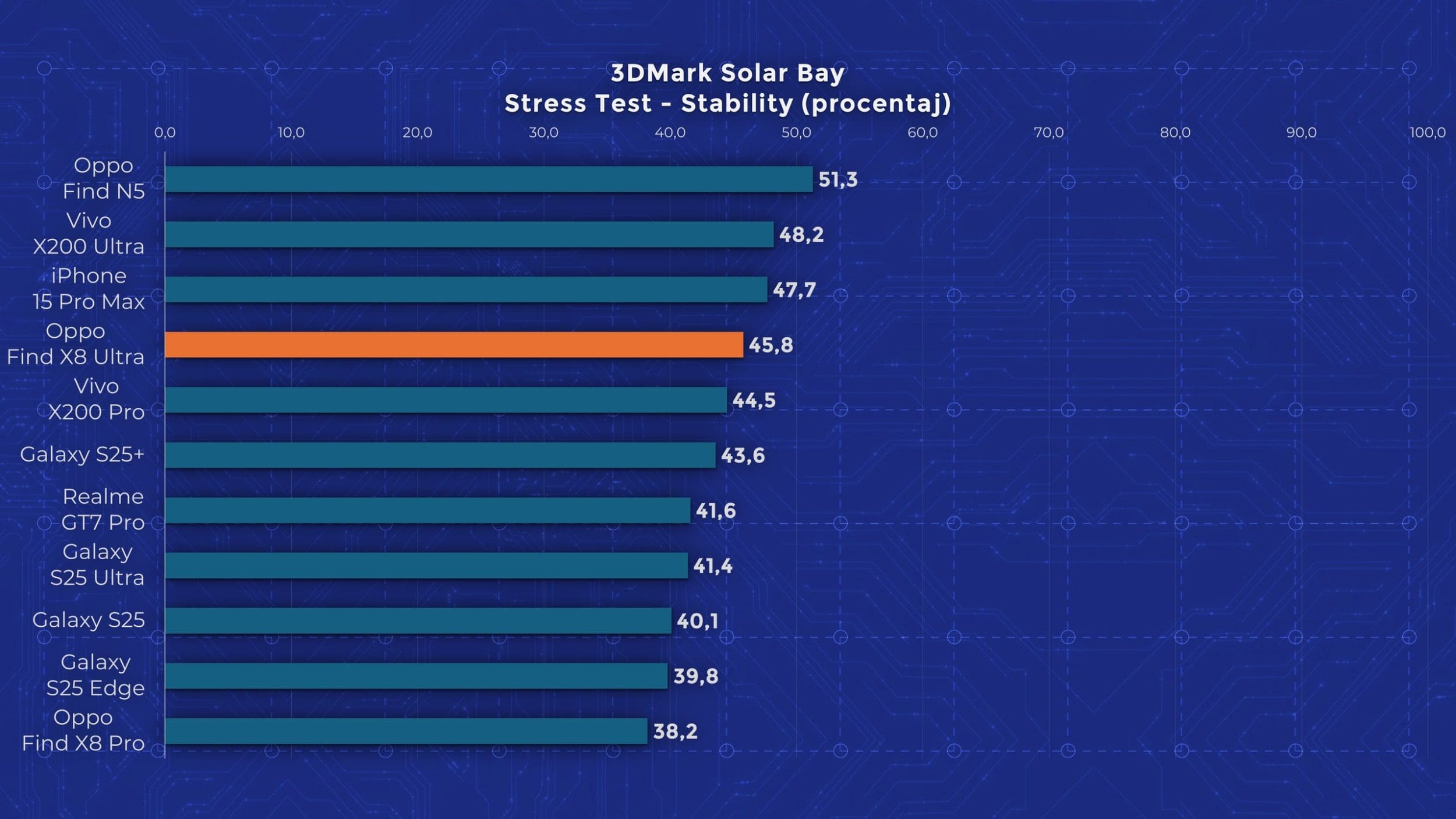 Avem și performanță de top, așa cum era de așteptat. Și la acest capitol Oppo Find X8 Ultra stă foarte aproape de vărul său de la Vivo, cu rezultate aproape identice în majoritatea testelor. Asta pentru că față de Find X8 Pro, modelul nou vine cu un chipset Snapdragon 8 Elite, renunțând la Dimensity 9400 de la MediaTek. Avem scoruri înalte în toate testele, dar și o limitare a performanței pe la jumătate atunci când rulăm testele de stres. Este însă o îmbunătățire față de Pro, care scădea pe la 30-35%. Totuși Find X8 Pro este un camera phone, așa că este de înțeles de ce nu are o răcire foarte avansată. Trebuie să recunosc însă că după testele de stres, carcasa era cam fierbinte la atingere. Aveți grijă.