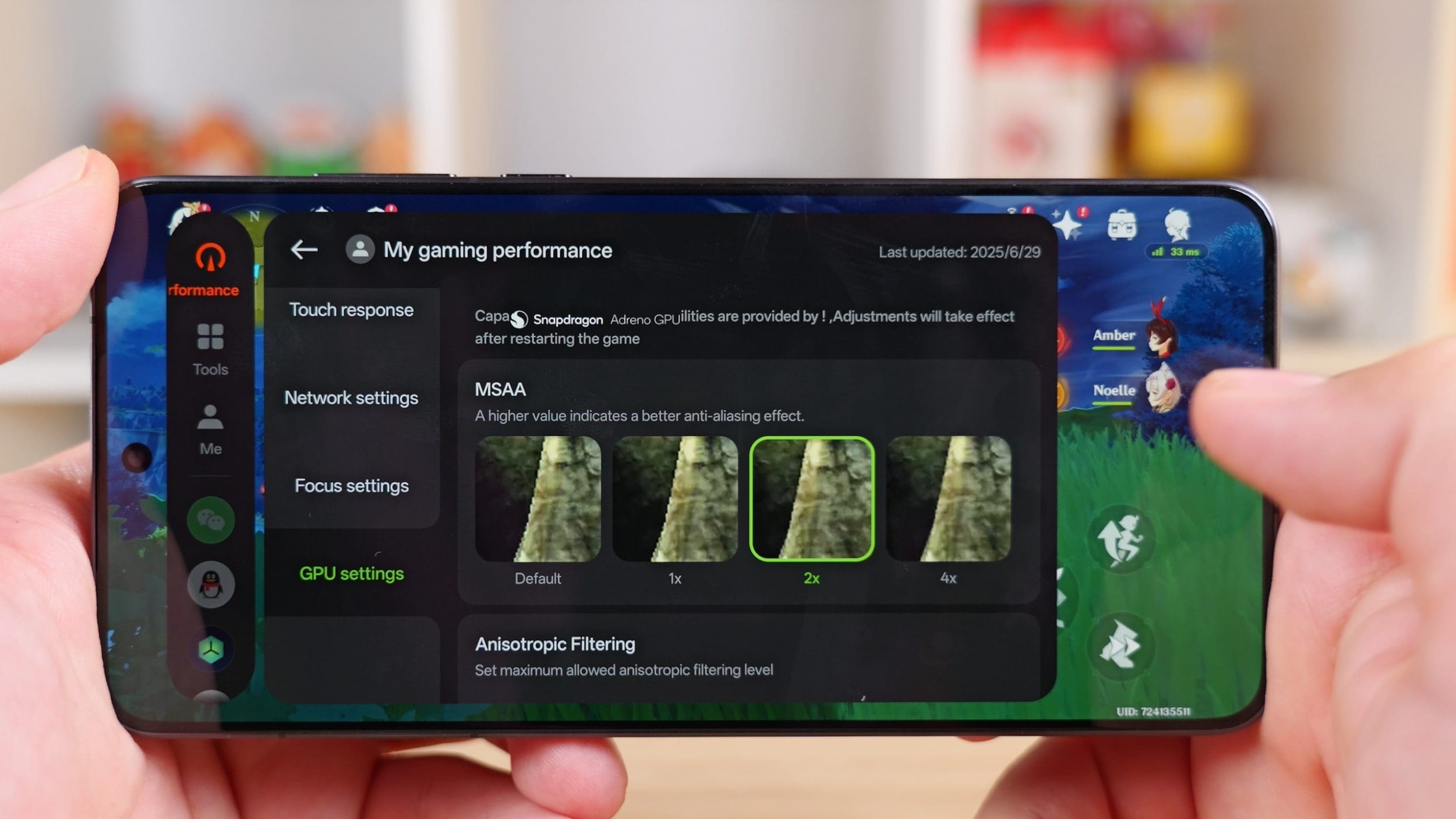 Poți, de asemenea să activezi un mod HDR de afișare, care îmbunătățește semnificativ calitatea imaginii. Sau poți crește rezoluția, aplica Antialiasing și îmbunătăți calitatea texturilor. Sunt genul de capabilități pe care le găsești prin driverele de PC de la NVIDIA și AMD. Și jocurile rulează excelent. Genshin, pe care l-am menționat anterior este impresionant, dar și în Call of Duty sau Asphalt m-am bucurat de framerate-uri înalte și calitate înaltă a imaginii. Doar nu vă jucați prea mult, pentru că telefonul cu siguranță se va încinge.