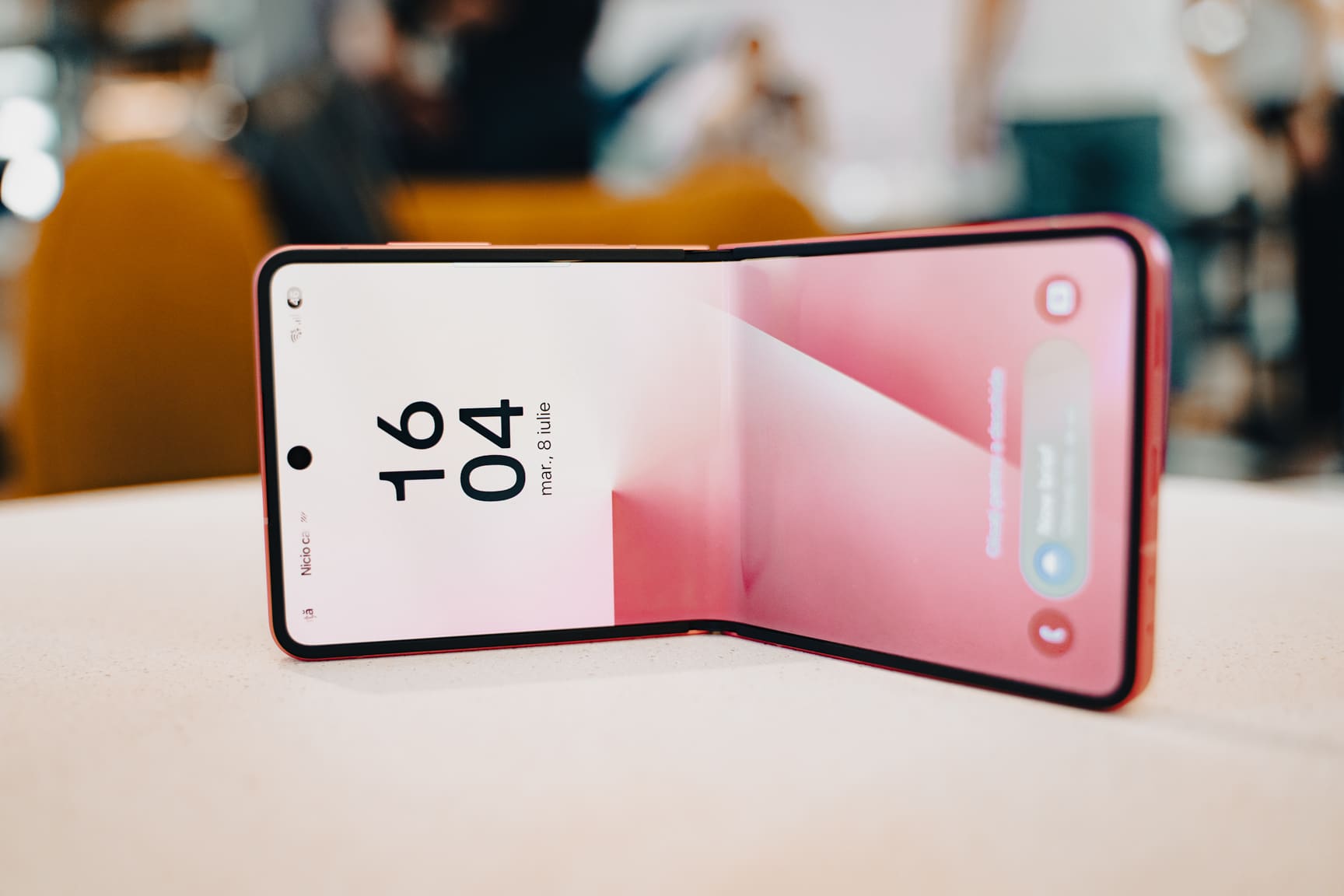 Totuși, Flip7 nu este la fel de subțire. Este doar puțin mai slim decât precedentul, la 6,5mm în grosime, dar primește și cu ecrane mai mari. În sfârșit, Samsung adoptă un ecran FlexWindow cu diagonală de 4,1” care acoperă întregul panou frontal. Panelul este un OLED la 120 Hz cu luminozitate de 2.600 nits, comparabil cu cel principal, și are decupaje doar pentru sistemul de camere. Impresionant este faptul că are margini de doar de 1,2mm de jur împrejur, asigurând o experiență de utilizare și vizuală mult mai plăcută.