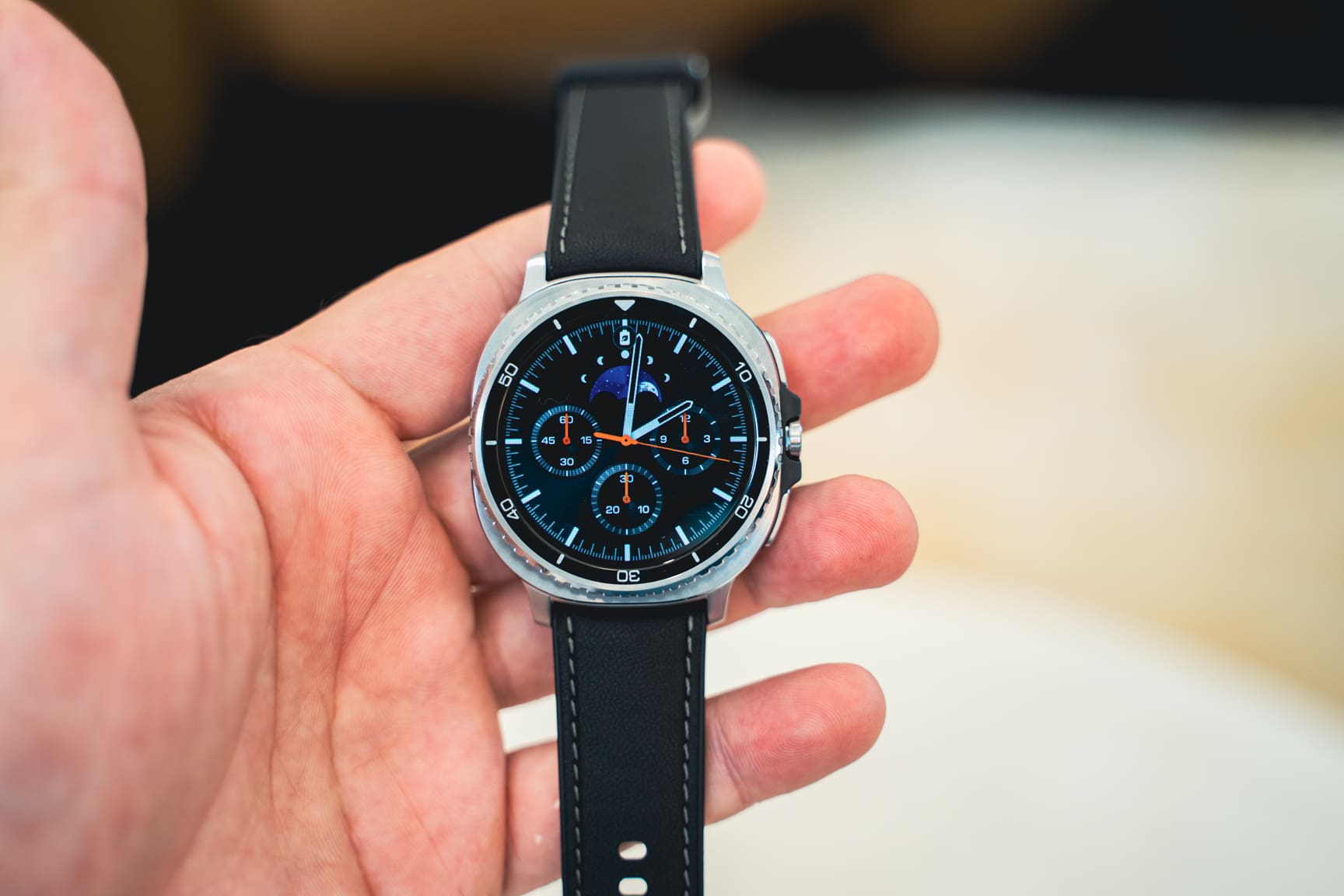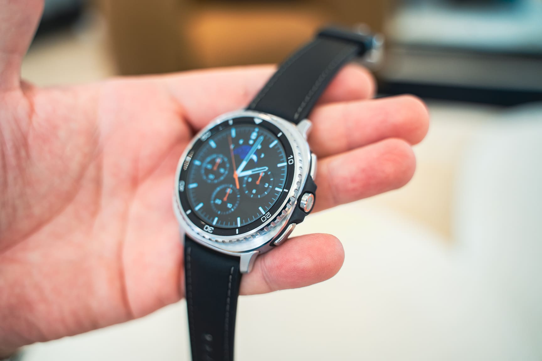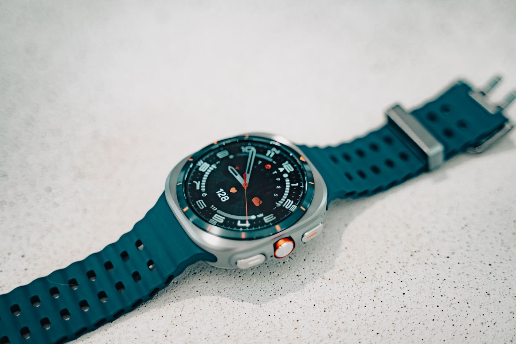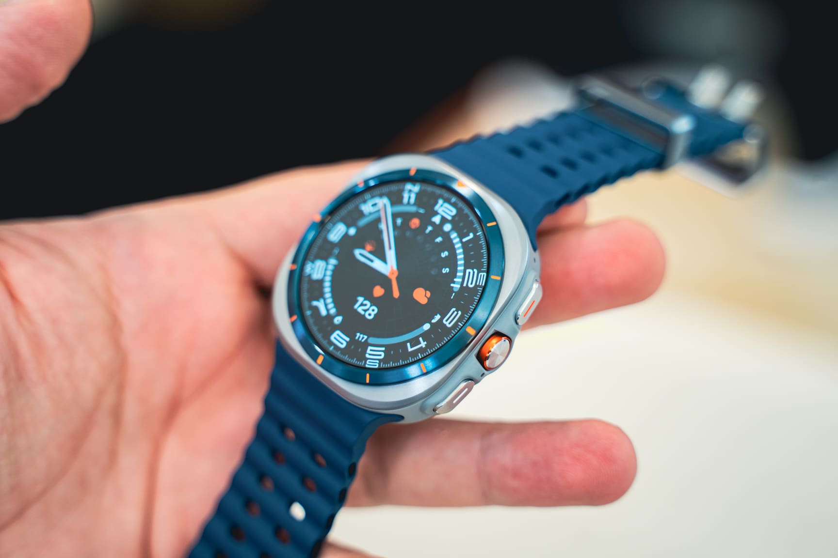 Samsung consideră că modelul Ultra era deja destul de bun, așa că nu primește un upgrade anul acesta. Doar stocarea se dublează la generația 2025, restul specificațiilor fiind aceleași. Ultra este în continuare cel mai mare ceas de la Samsung, la 47mm, și primește și o nouă culoare cu accente albastre pe carcasă.