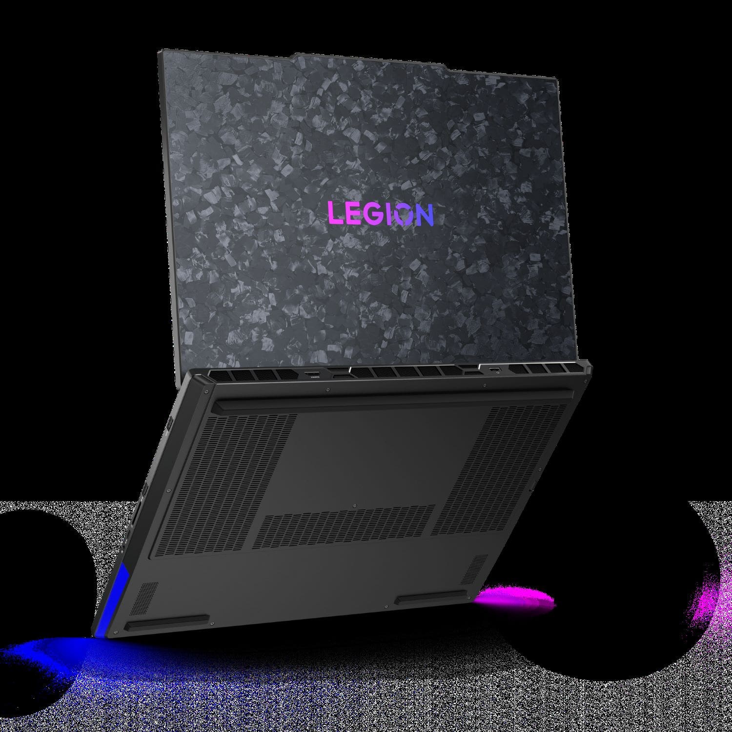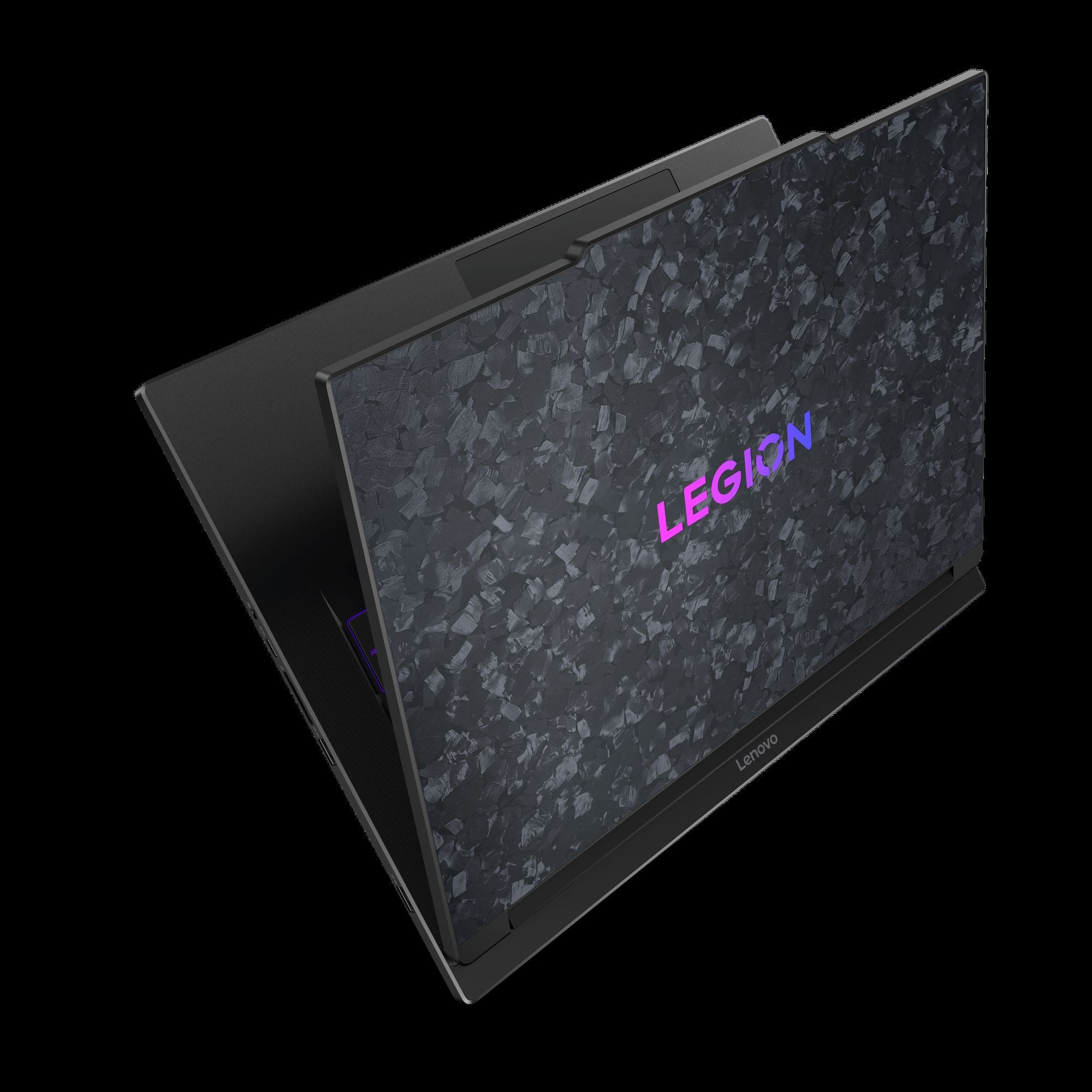 Legion 9i nu este un laptop nici ușor, nici mic, întrucât este nevoie de dimensiuni ridicate pentru a asigura un sistem de răcire atât de performant pentru cele mai puternice componente disponibile. Construcția metalică este completată și de un capac unic pe spatele ecranului. Fiecare unitate este realizată manual din opt straturi de fibră de carbon, forjate împreună. Acest material este mai ușor și mai rezistent decât aluminiul, conferind fiecărui laptop o estetică distinctivă și o rezistență superioară. În ceea ce privește conectivitatea, porturile HDMI și de alimentare sunt inteligent poziționate în spate, iar pe laterale se regăsesc multiple porturi, inclusiv porturi Thunderbolt 5 și USB4 80Gbps de ultimă generație.