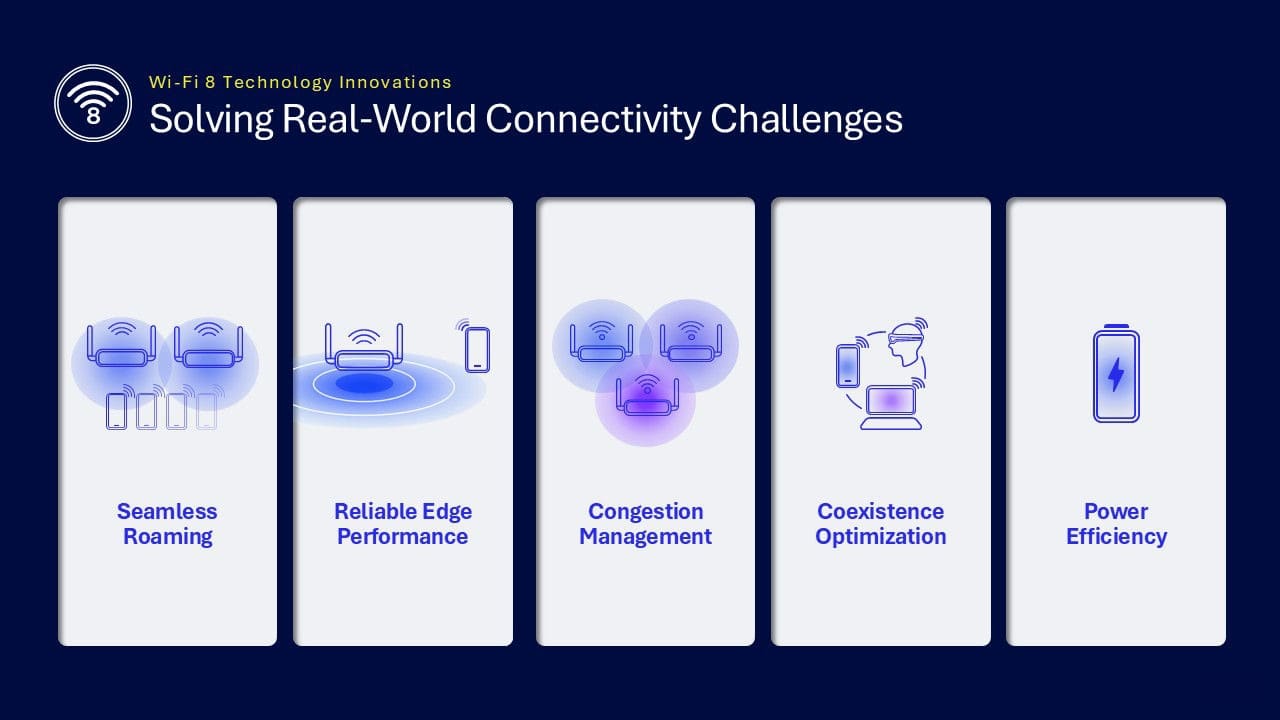 Pentru a atinge această viziune de fiabilitate comparabilă cu cea a conexiunilor pe fir Wi-Fi 8 va introduce o suită de inovații în domeniu. Probabil cea mai importantă este „Roaming fără întreruperi”, adică trecerea de la un access point la altul fără întreruperi, pe o rețea mesh uniotară. Qualcomm vorbește despre o experiență de tip „odată conectat, întotdeauna conectat”, introducând conceptul de Domenii Unice de Mobilitate, care mențin conexiuni continue, cu latență scăzută, pe măsură ce dispozitivele se deplasează.