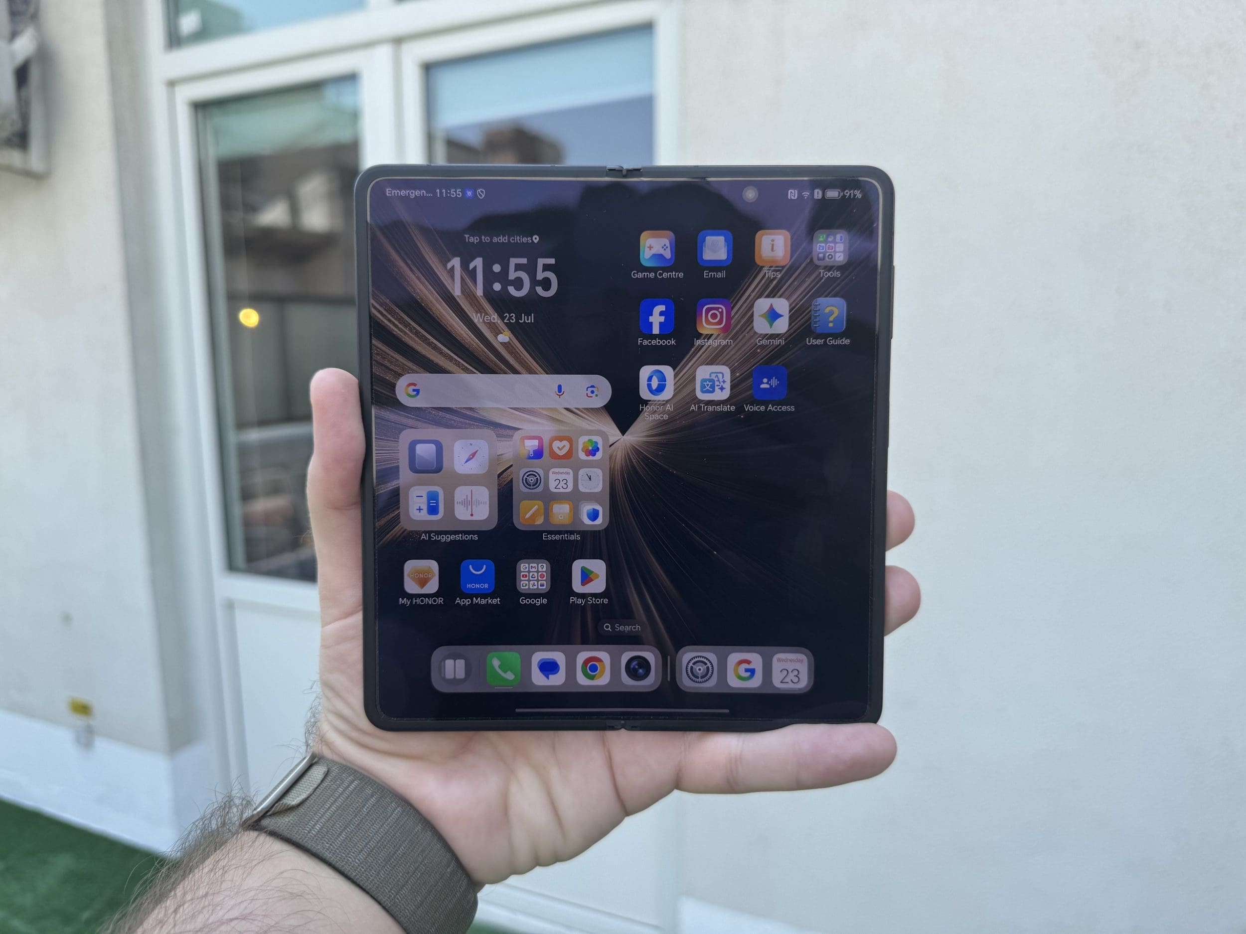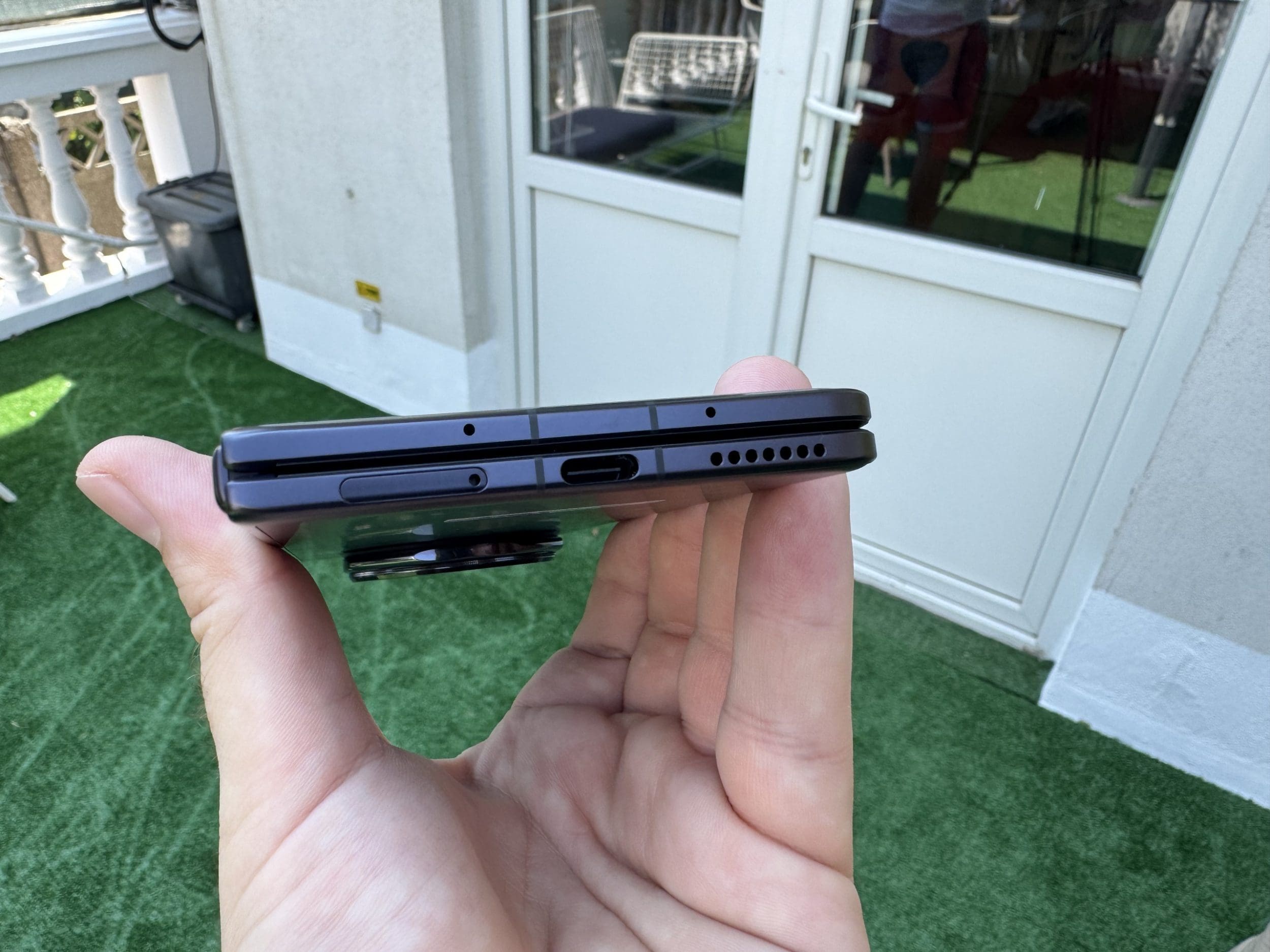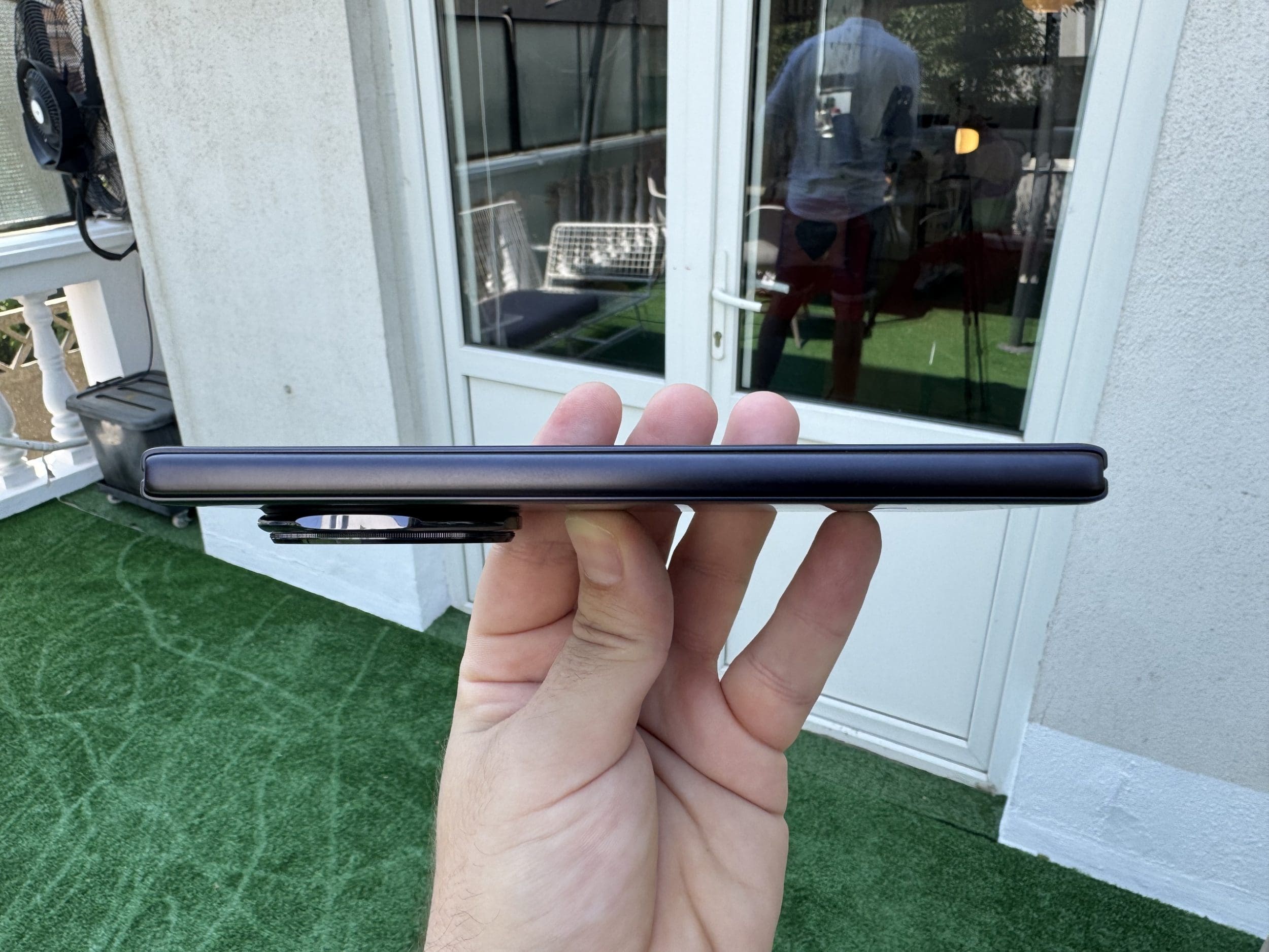 La construcție există însă câteva avantaje față de Samsung și chiar și alte modele pliabile recente: rezistență mai mare la praf, cât și rezistență la jeturi de apă sub presiune, datorită certificărilor IP58 și IP59. Compania zice că rezistă la mașina de spălat vase. Eu nu mi-aș băga însă telefonul la spălat. Balamaua rezistă la 500.000 de cicluri de pliere, adică poate fi deschis și închis de cel puțin 100 de ori pentru 13 ani, rămâne de văzut dacă chiar așa e, iar ecranul pliabil este ranforsat cu fibră de carbon și aluminiu. La exterior avem acea sticlă NanoCrystal pe care am testat-o anterior pe Magic7 Lite, care a rezistat și la un buldozer.