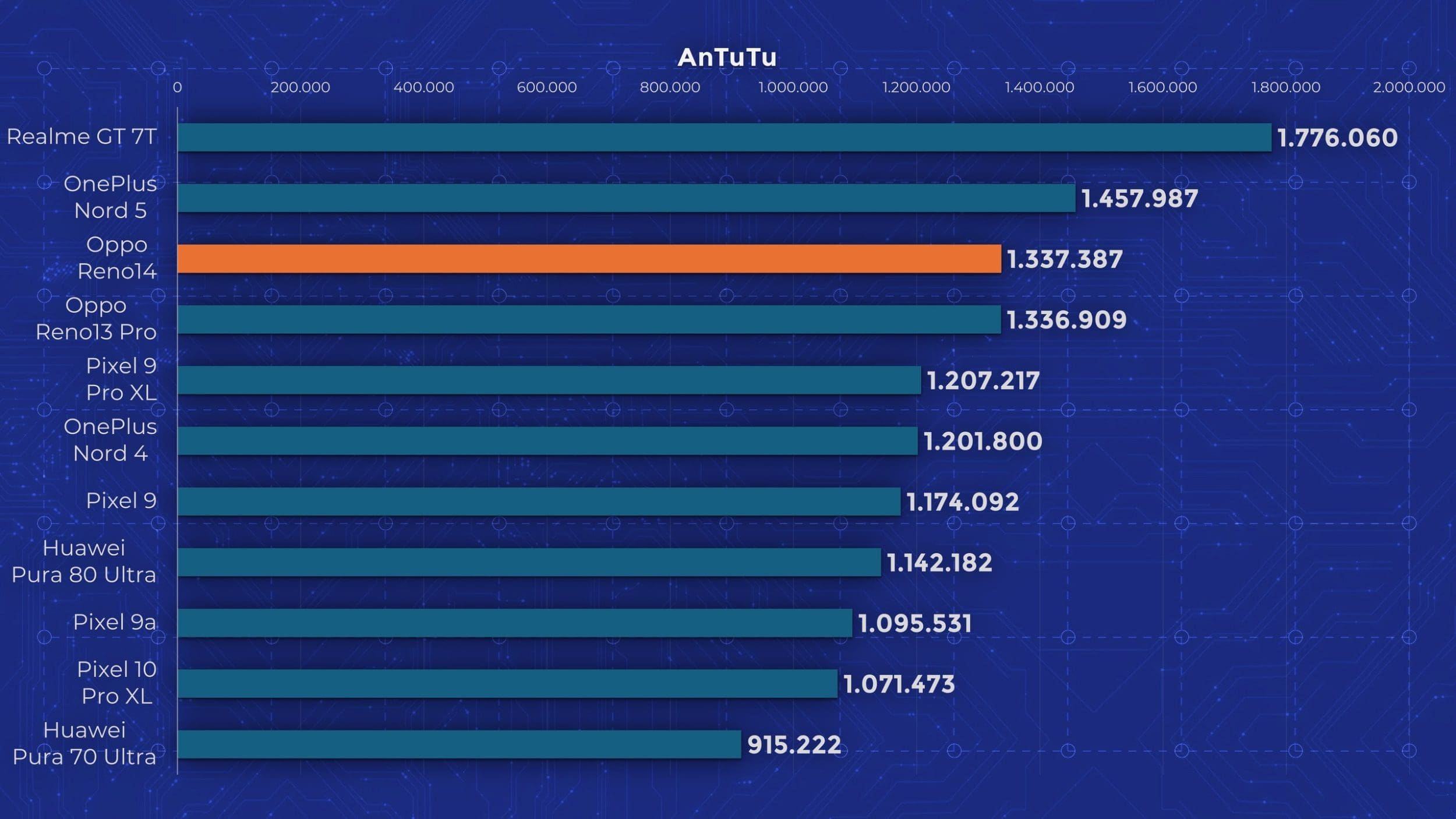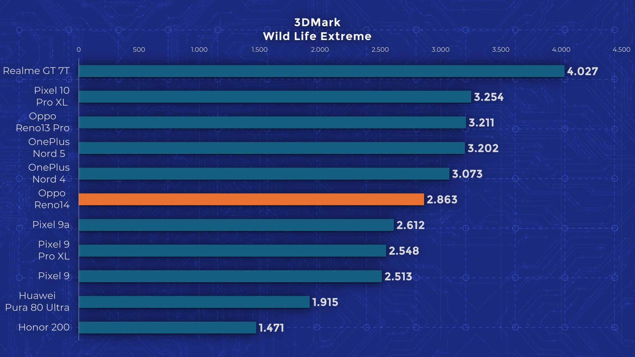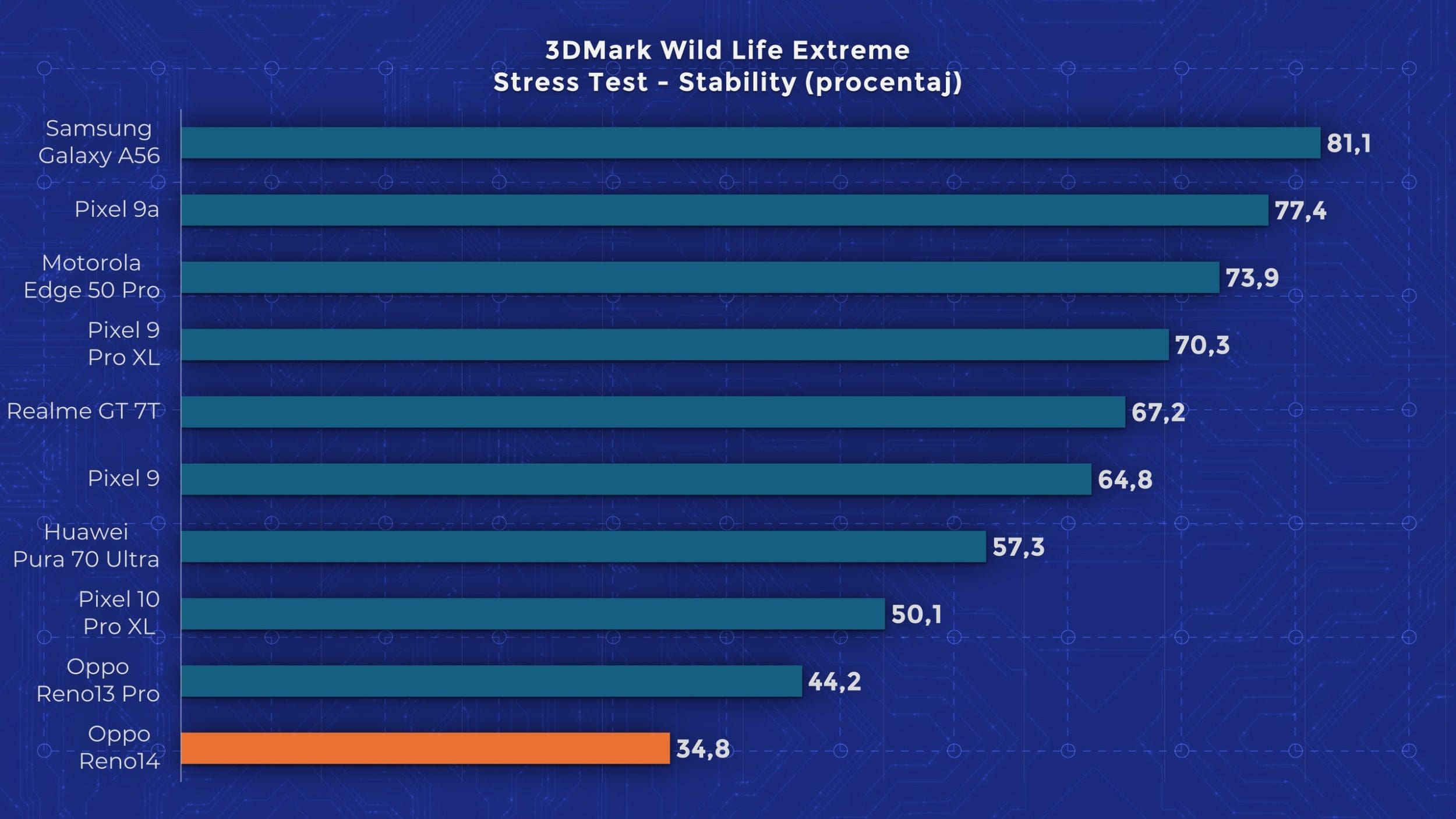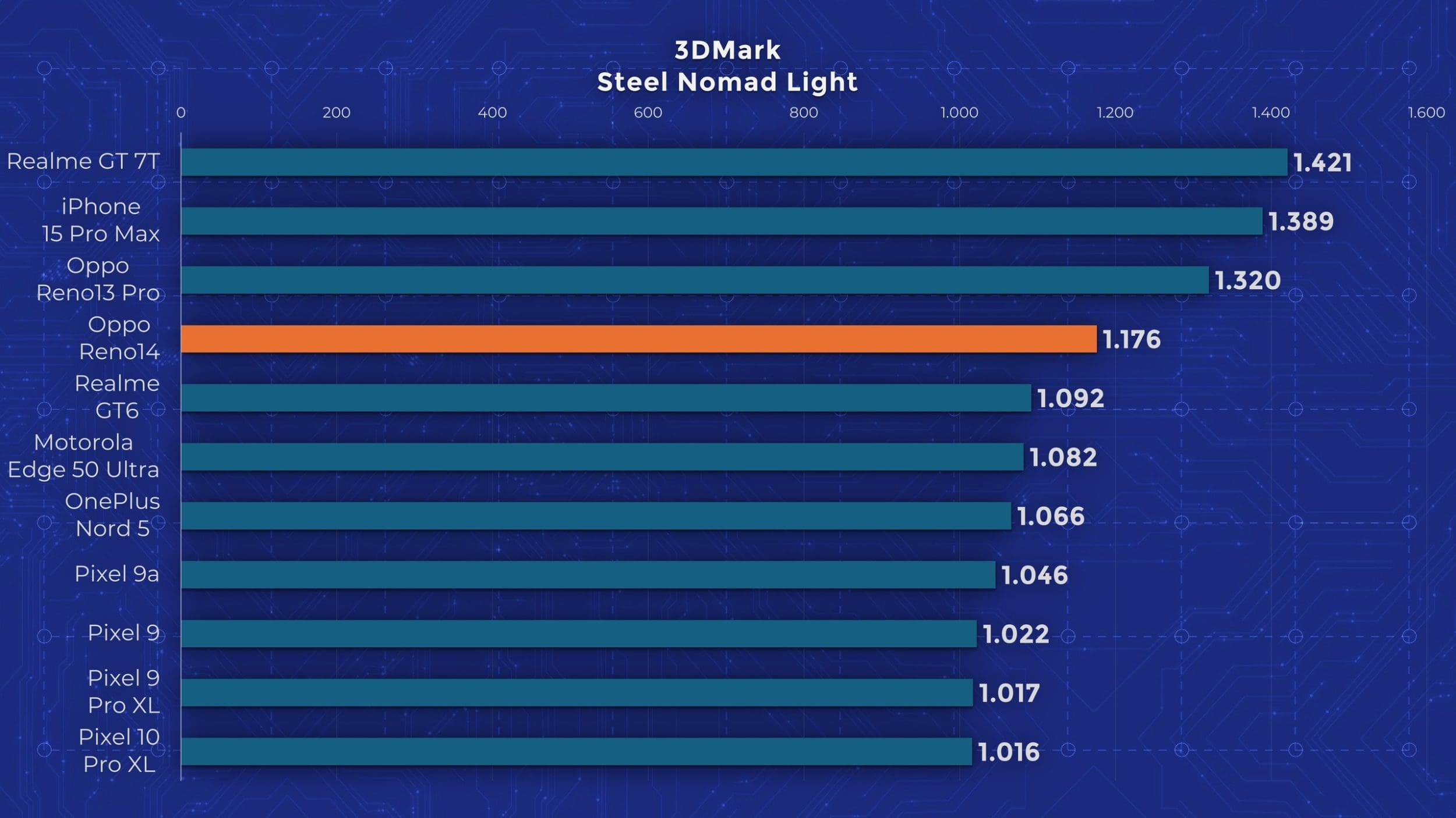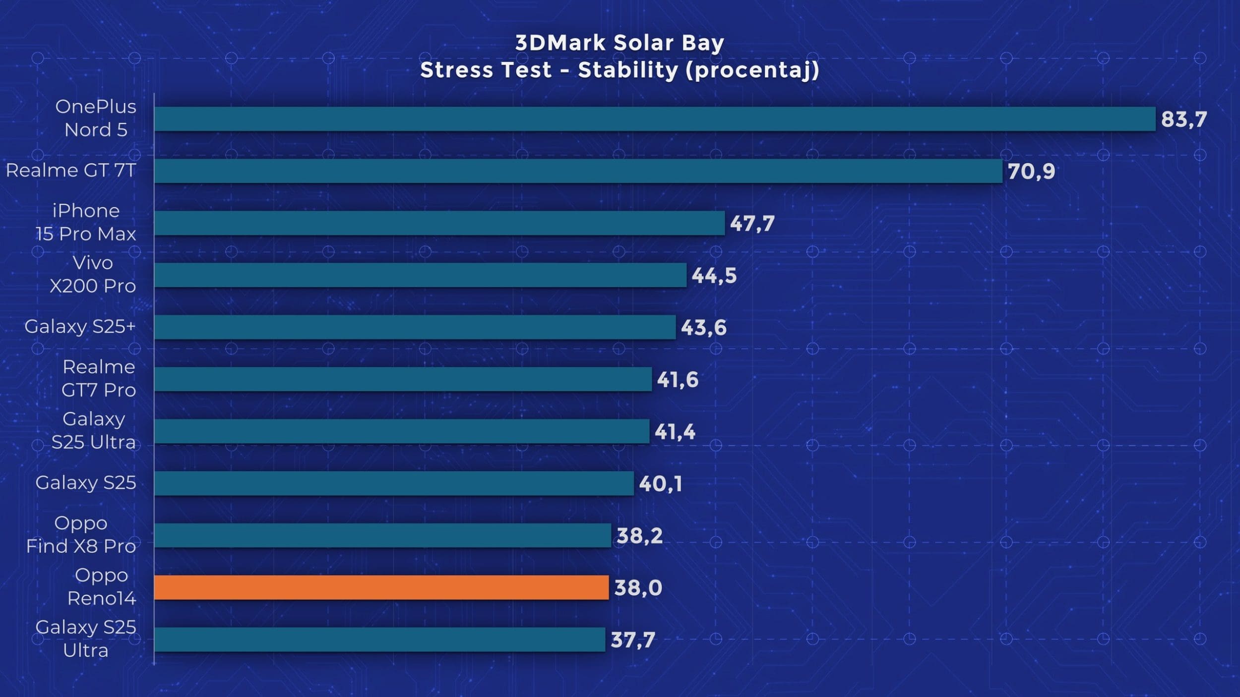 La capitolul performanță asistăm la o reluare. Reno 14 folosește exact același chipset pe care l-am testat anterior pe Reno 13 Pro, iar performanțele sunt apropiate. Oppo a integrat în acest model și o cameră cu vapori pentru răcire, dar nu reușește să țină în frâu acest Dimensity 8350. Nu pot însă să mă supăr din cauza asta. Vorbim despre un telefon de sub 3.000 lei cu 512 GB stocare, care depășește în performanță atât noul Pixel 10 Pro XL, cât și Huawei Pura 80 Ultra, telefoane de 6.500, respectiv 8.000 lei.