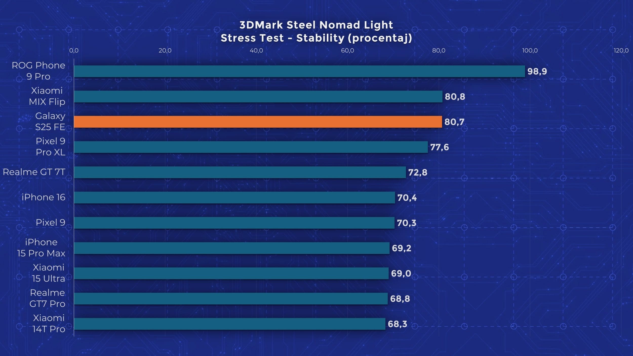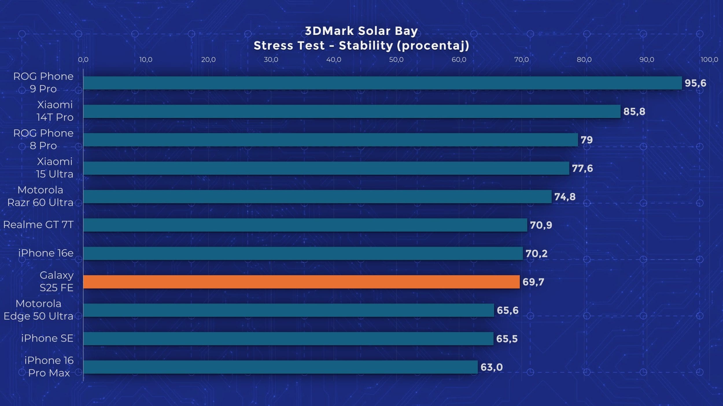 Și niciun alt lucru nu demonstrează această tendință mai bine decât alegerea hardware-ului intern. Samsung a ales să nu facă un mare upgrade de procesor. Dacă S24 FE avea anul trecut un Exynos 2400e, ei bine, anul acesta Samsung aduce un Exynos 2400 „complet”, cu 100 MHz în plus pe nucleul principal. Astfel, performanța lui S25 FE este semnificativ mai slabă decât cea a modelelor S25 obișnuite, care au procesoare Snapdragon 8 Elite, cu o generație mai nouă. Telefonul nu este deloc lent, și chiar am fost plăcut surprins de faptul că acea cameră de vapori nouă, chiar ține acest Exynos destul de bine în frâu. În testele de stres, performanța scade doar pe la 70%, ceea ce este foarte bine. Dar vorbim totuși despre performanță de nivel 2024.