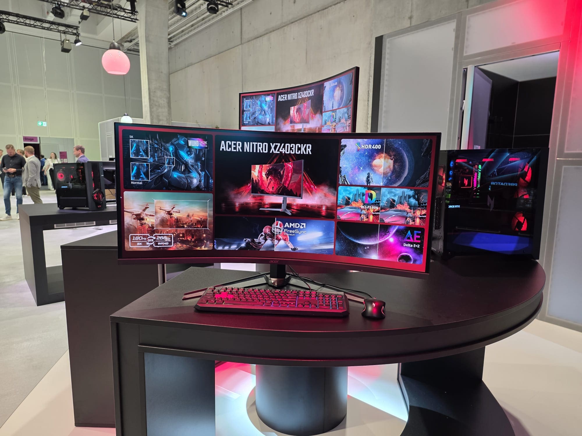 - Nitro XZ403CKR – ecran curbat de 39,7 inci 5K WUHD, rată de refresh de 288 Hz și difuzoare integrate de 5 W.