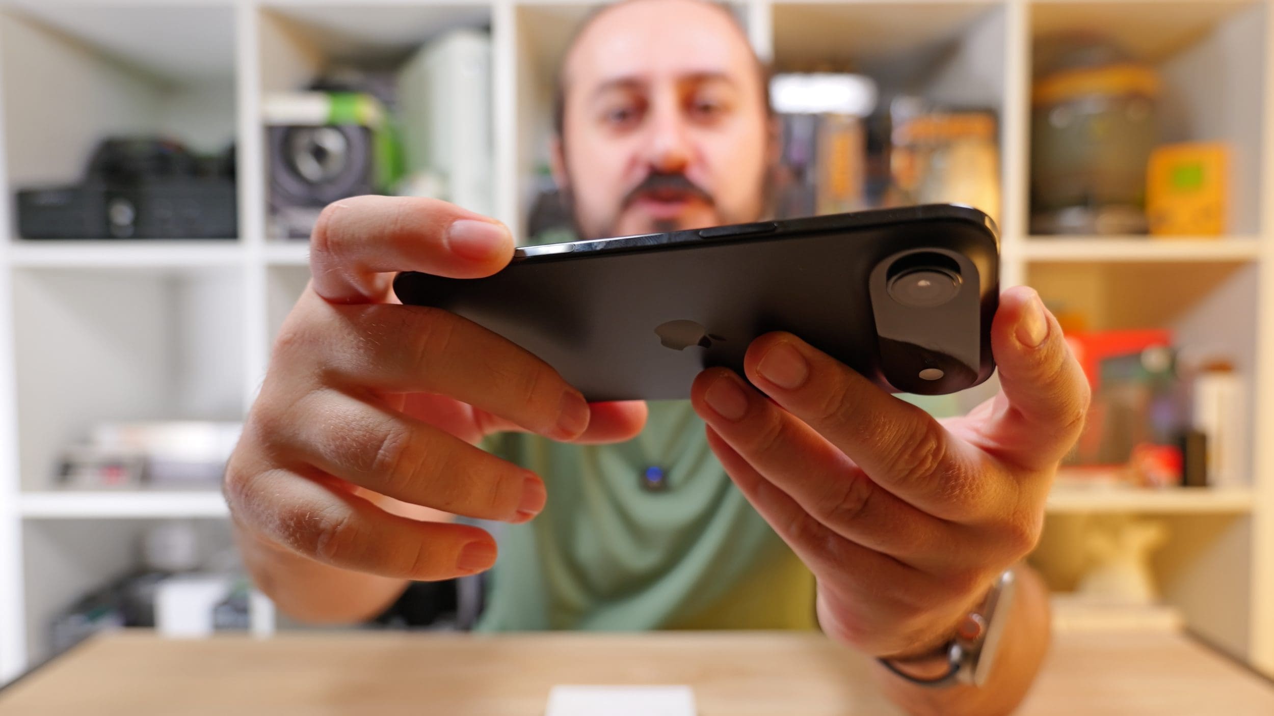 Butoanele sunt foarte subțiri pe margini, din această cauză, dar au un răspuns tactil și sonor foarte bun. Pot spune că nu prea am de ce să mă plâng la acest capitol. Pot să mă plâng doar de faptul că modulul de cameră este imens, cu grosime care dublează telefonul și încă puțin în acea zonă. Pare că viziunea Apple nu poate fi momentan atinsă complet, în mare parte din cauza legilor fizicii.