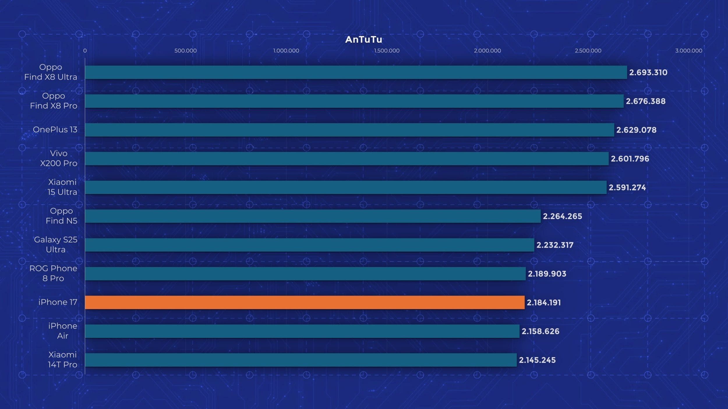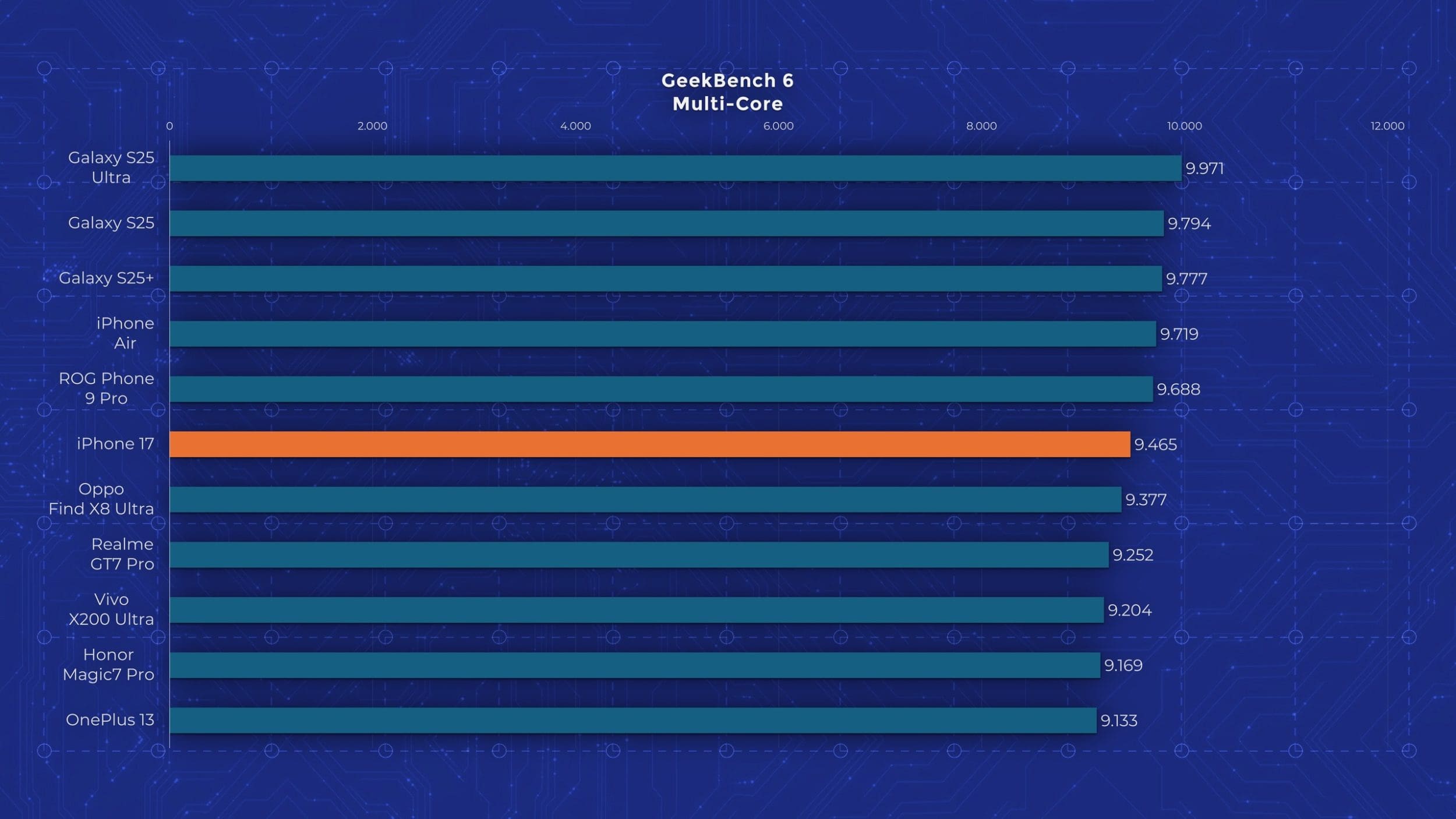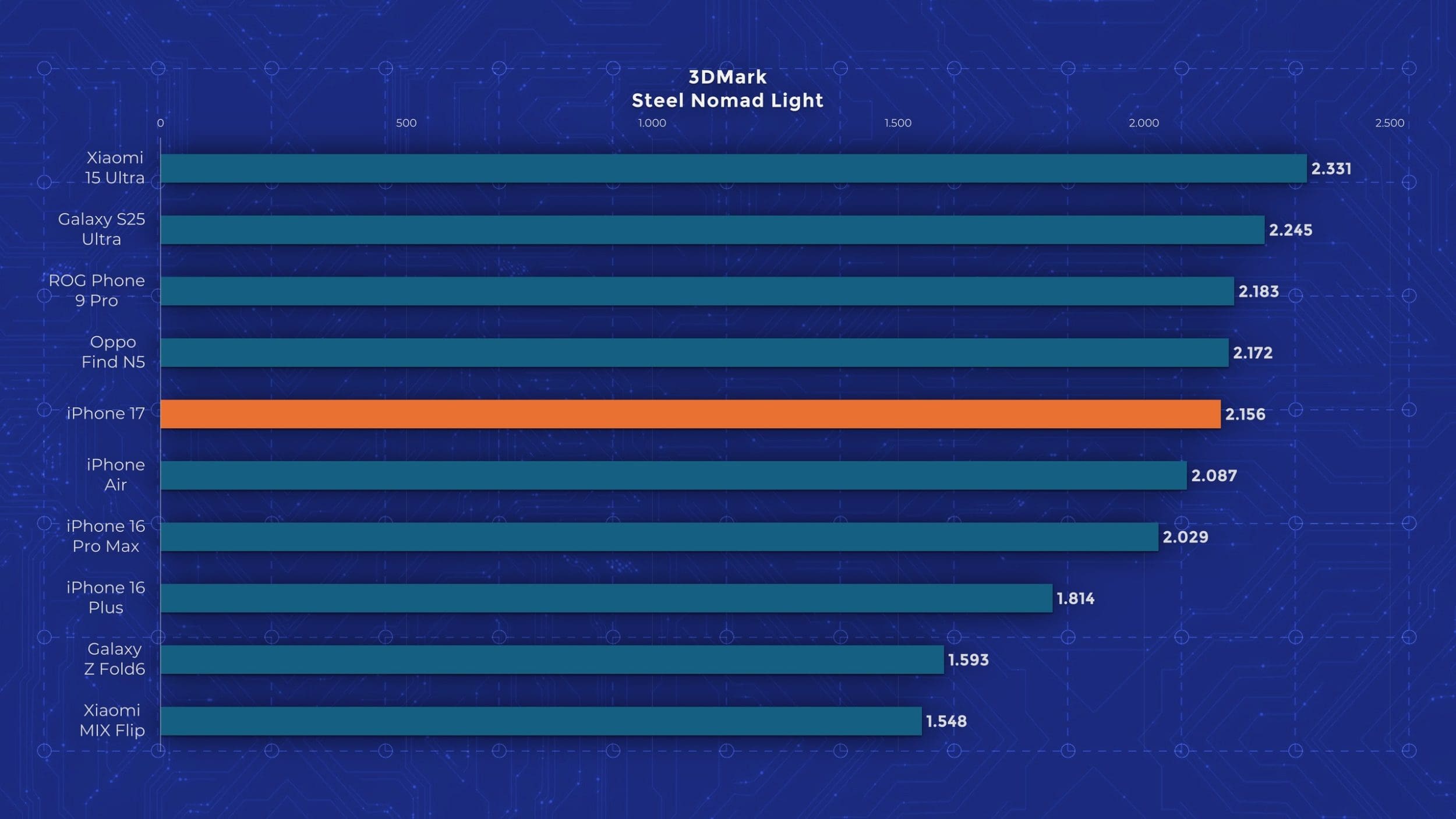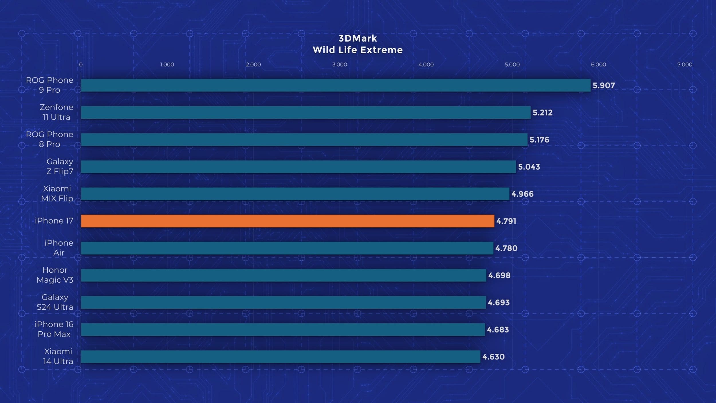 M-am bucurat să văd că rezultatele în teste sunt foarte apropiate de A19 Pro de pe Air, chiar puțin peste, iar stabilitatea în testele de stres este bună, pe la 70, chiar 80%. O să vă dau un mic spoiler: este chiar mai stabil decât 17 Pro, care include o cameră cu vapori pentru răcire.