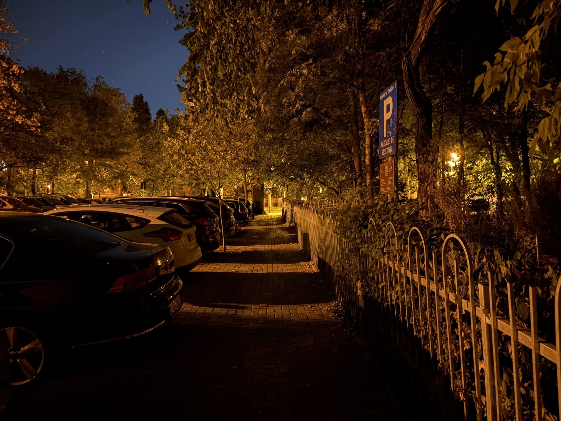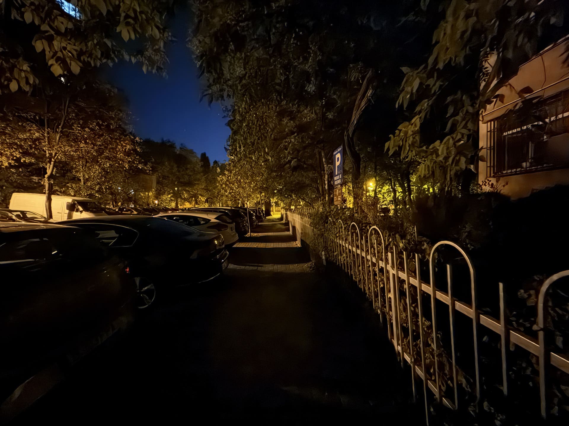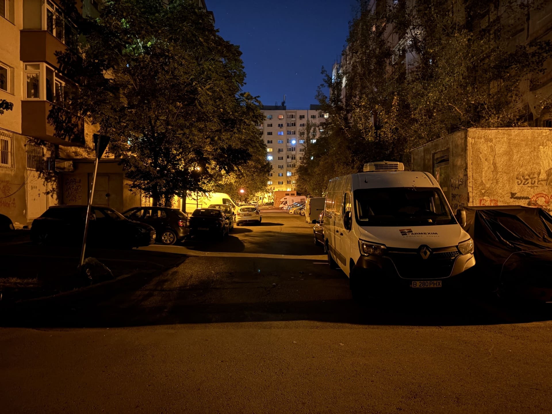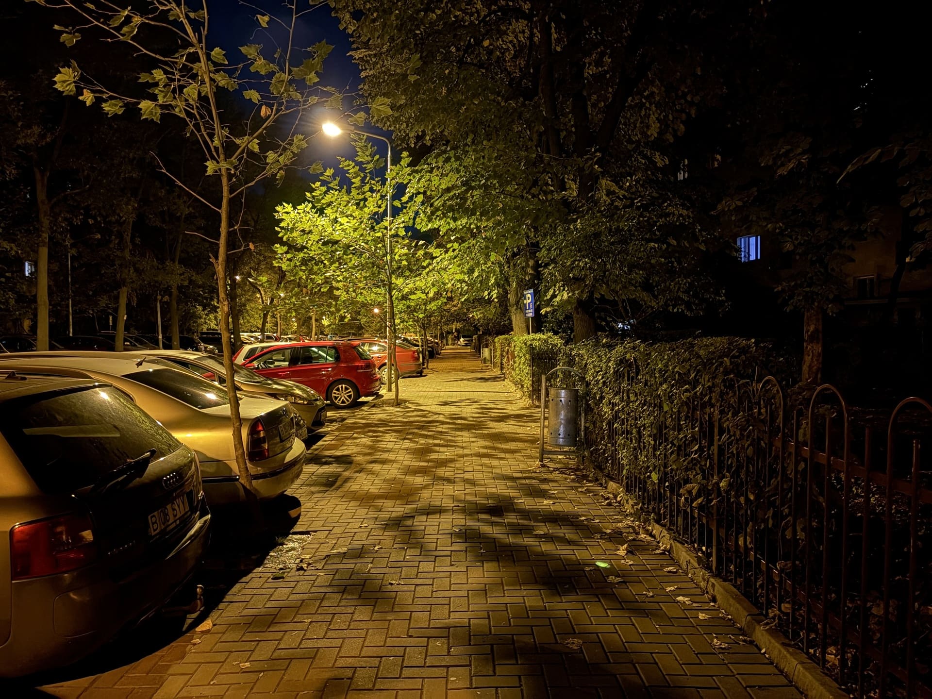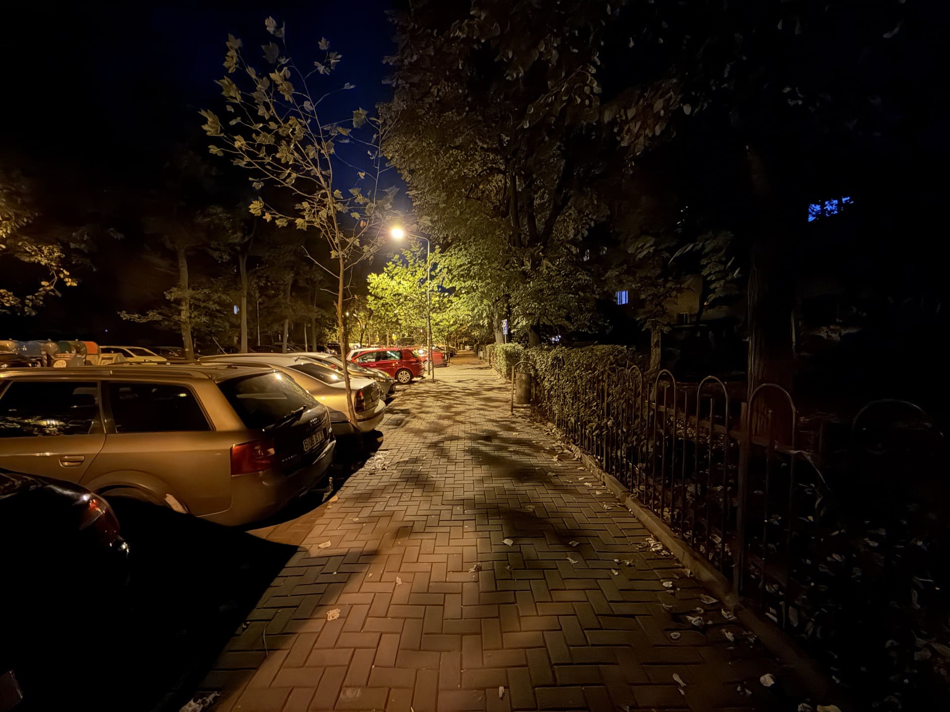 Pe timp de noapte, performanța camerei principale este bună, dar Apple a început de câțiva ani să lumineze excesiv fotografiile nocturne, ceea ce duce la imagini care nu respectă atmosfera reală a scenei. Avantajul este că păstrează detalii și în umbre, iar imaginile au un aspect plăcut. Desigur, în anumite situații, este mai mult zgomot de imagine decât întâlneam pe Pro-urile de anul trecut.