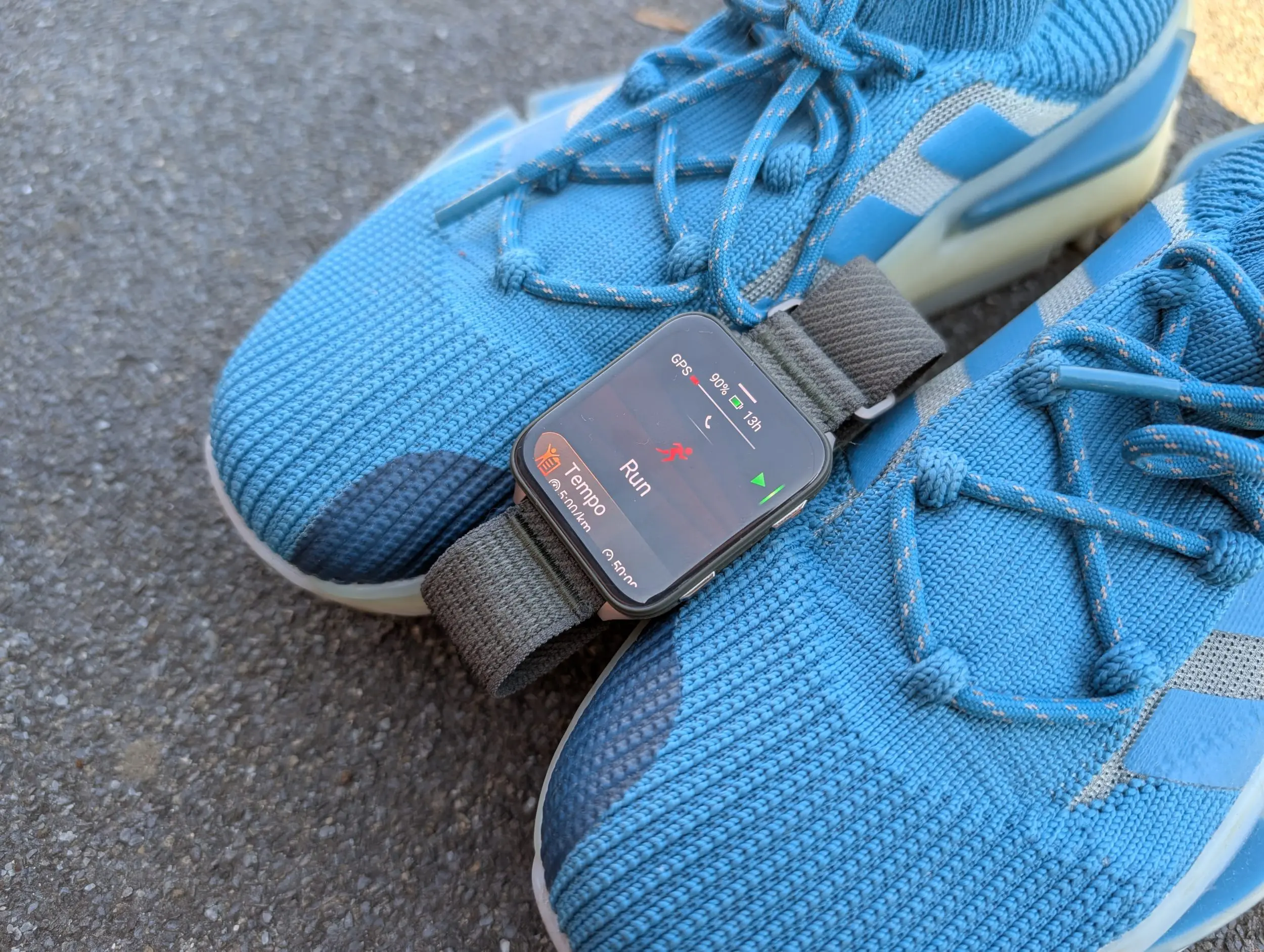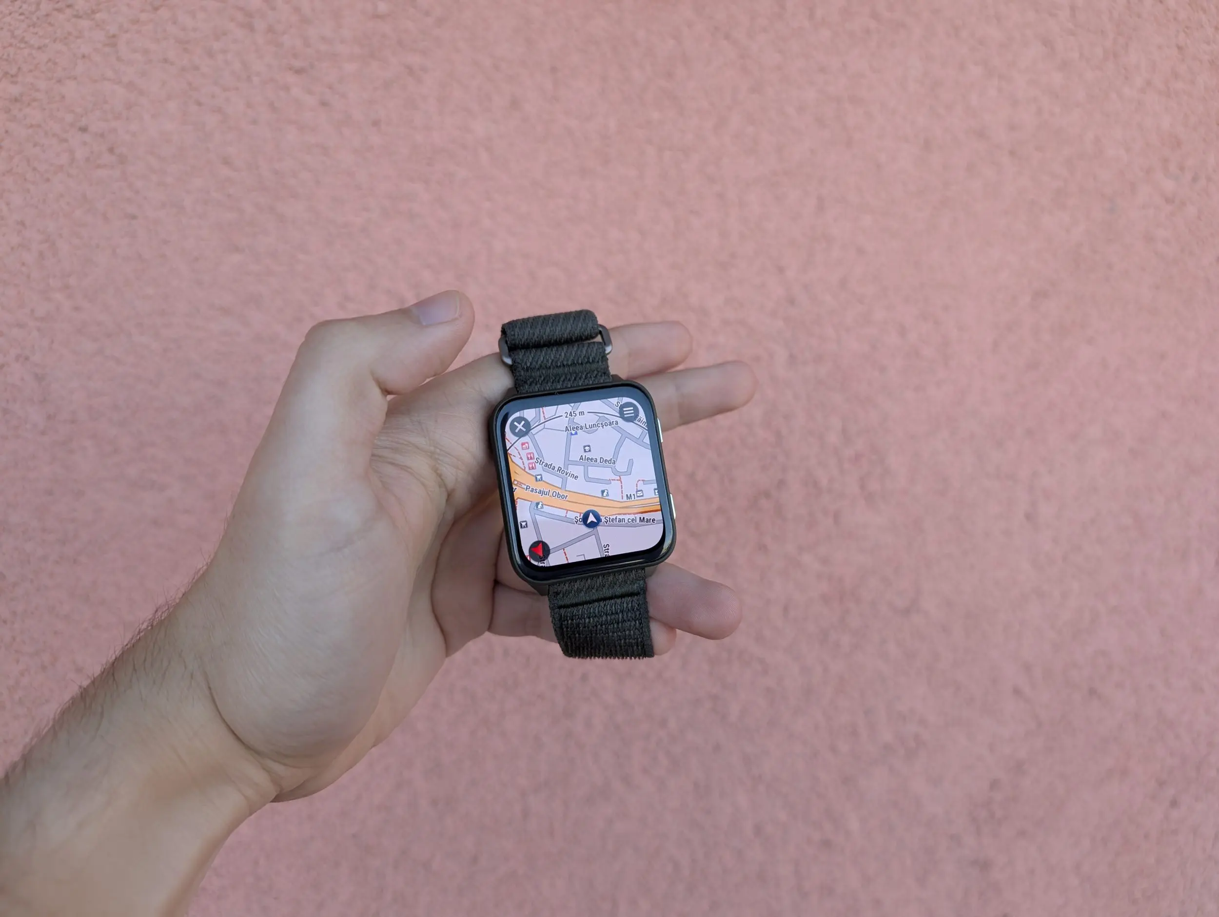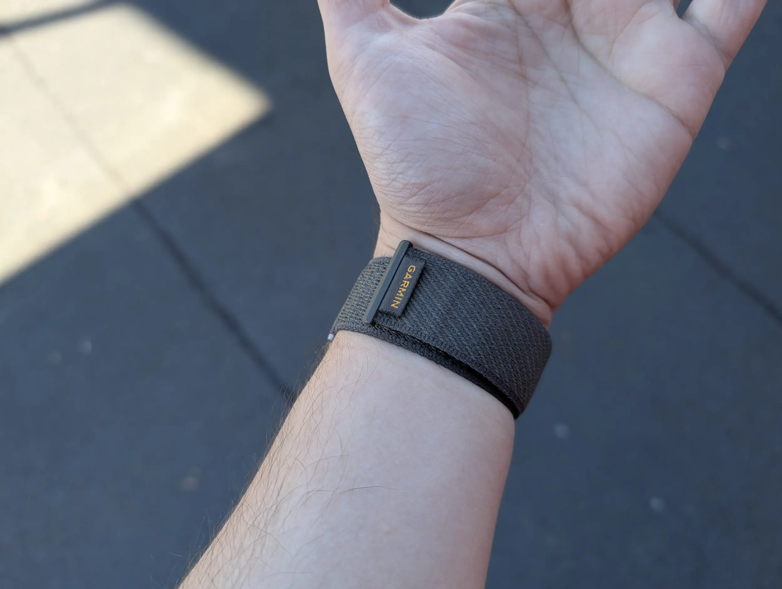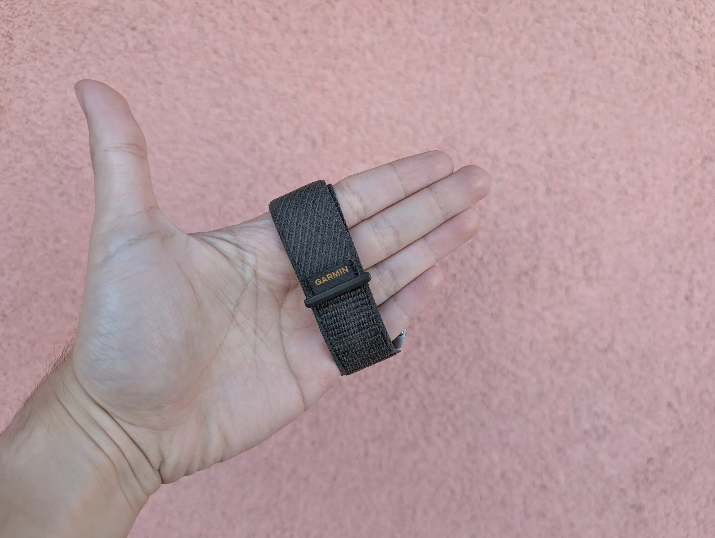 Cureaua pe versiunea testată de mine este din nailon și este numită ComfortFit Moss de către Garmin, ultima parte cu referire la culoarea pe care o are, un soi de verde închis care dă spre gri. Este extraordinar de confortabilă, ador pur și simplu acest sistem de prindere, e simplu, ușor, știi că nu există riscul să-ți cadă de la mână indiferent ce activitate ai face și e extrem de ușor de reglat. Se simte bine pe piele, nu e abrazivă, deși e puțin mai rough la atingere, și cred că o să-mi caut fix același model pentur Garminul meu de zi cu zi, să văd dacă se potrivește la el.