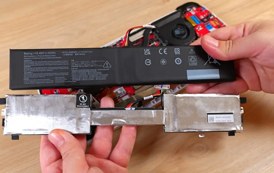 Upgrade-ul de baterie v-am zis că este mai complex și nu este pentru cei mai slabi de înger. Capacul și carcasa necesită niște decupaje în anumite puncte cheie, pe care le faci cu șficul care este inclus în pachetul bateriei. Aveți aici un un tutorial. Important de reținut este că bateria trebuie să stea în consolă confortabil și să nu intre în contact cu bucăți ascuțite de plastic care ar putea străpunge învelișul exterior. Mare atenție aici pentru că este un risc de incendiu. Există și distanțiere din burete care trebuie instalate în anumite locuri cheie pentru a sta cât mai bine în carcasă, fără să se miște. Este ciudat să vezi că bateria ASUS originală are pe centru un spațiu lipsă între cele două celule. Acolo putea fi găzduită încă o celulă care ar fi oferit autonomie destulă și ar fi putut evita acest upgrade… dar n-a fost să fie. Odată ce decupajele sunt gata, poți atașa bateria nouă la consolă. Foarte important este faptul că Ally nu se pornește dacă nu are capacul instalat, așa trebuie verificat bine dacă totul e pe poziție înainte să închizi capacul.
