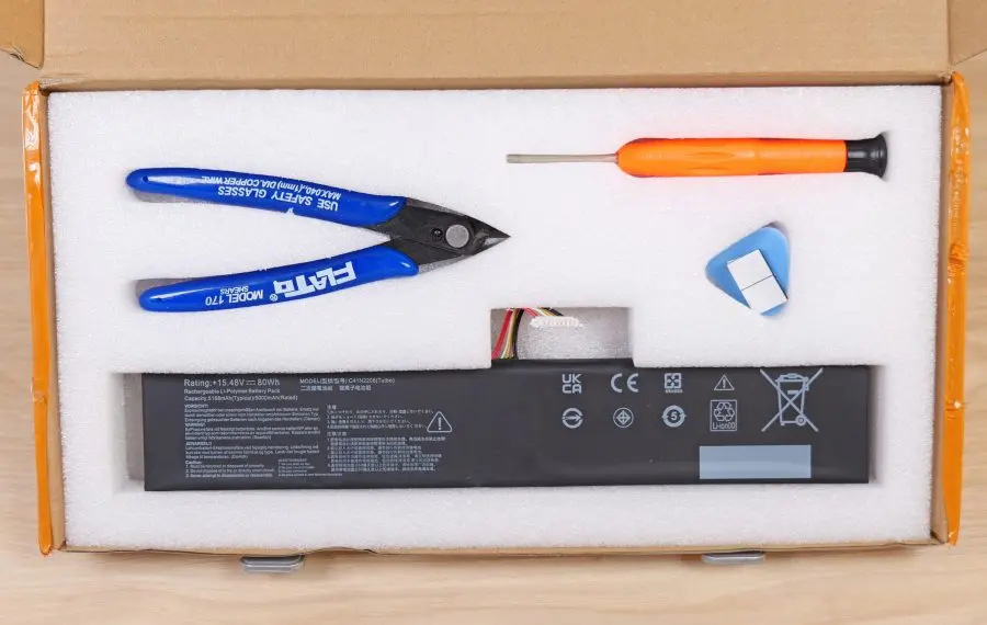 Acest kit de baterie este cumpărat de pe AliExpress, a costat cam 300 de lei (link) și vine în pachet cu toate uneltele necesare pentru a desface și modifica carcasa pentru a găzdui noua baterie. Mare atenție dacă vreți să încercați asta acasă! Procesul de upgrade al bateriei necesită niște modificări majore ale carcasei. Cu siguranță veți renunța la garanție dacă încercați acest upgrade.