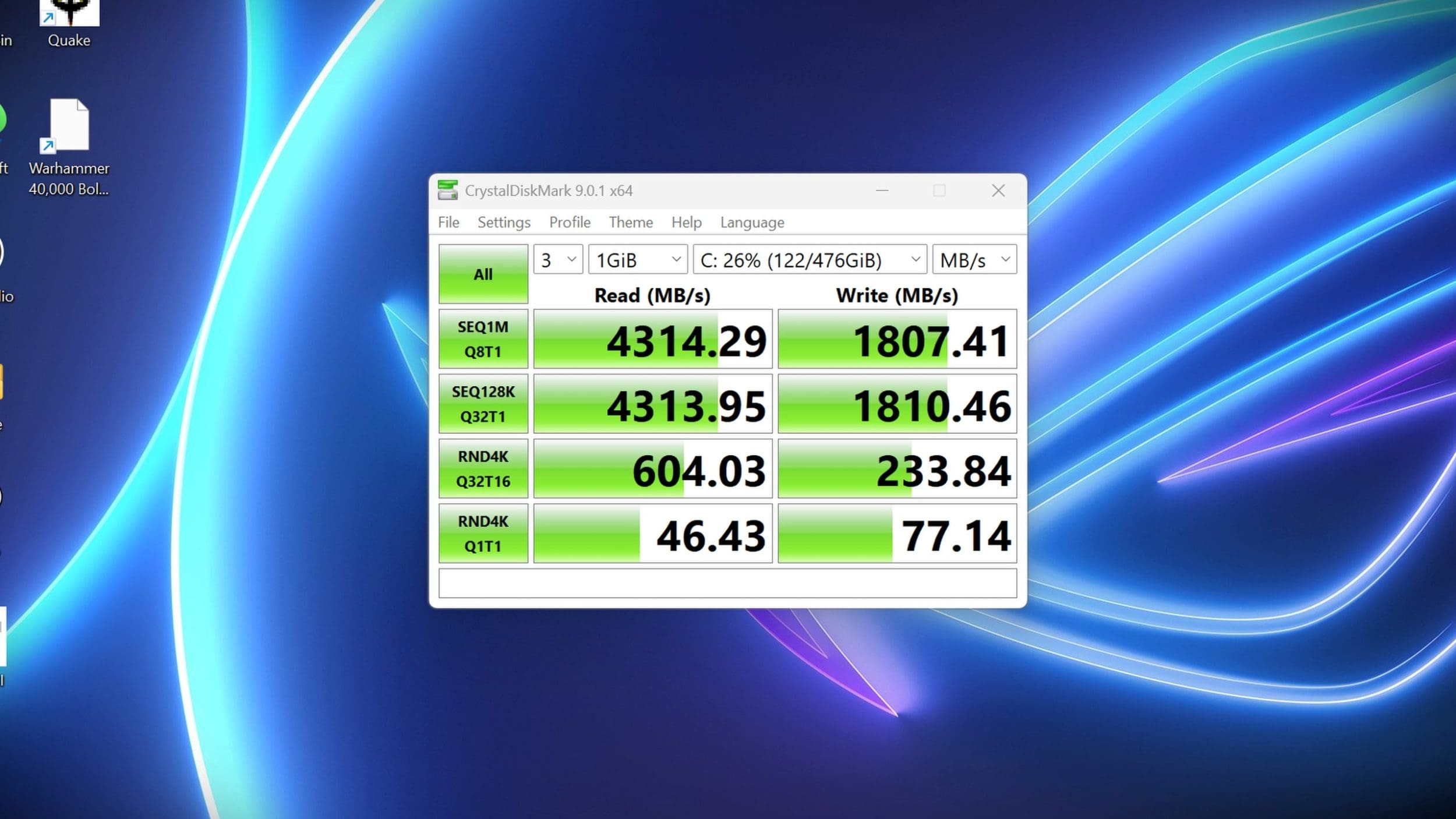 Acum că avem SSD-ul pregătit, ajungem la partea de modificări hardware. Pentru a desface Ally-ul, nu trebuie decât să scoți cele 6 șuruburi de pe spate și să folosești o pană de chitară pentru a separa cele două jumătăți. Durează cu totul vreo 2-3 minute. SSD-ul este acoperit de o protecție din plastic, pe care o poți înlătura pentru a desface șurubul. Tot ce trebuie să faci este să pui SSD-ul clonat în consolă și cam acesta este upgrade-ul de stocare. Dacă modelul original de Ally venea cu un SSD mai lent, cu 4,3 GB la citire și 1,8 GB la scriere, cel Kingston atinge 6,3 GB la citire și 5,7 GB la scriere, depășind specificațiile promise de producător. Nu vei simți asta în jocuri obligatoriu, ci mai degrabă în transferuri de jocuri de pe alte dispozitive. Vei simți însă cei 1,5 TB de stocare în plus, care vor ține mult mai multe jocuri.