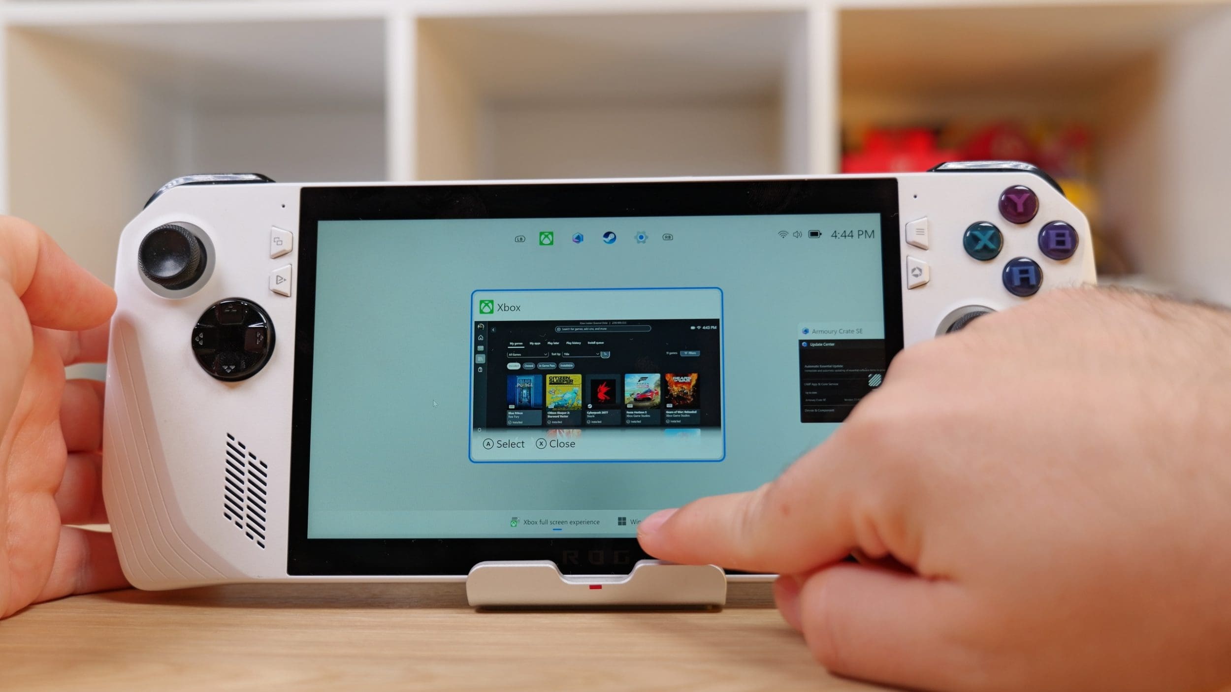 Operațiunea este astfel un adevărat succes, însă mai am un upgrade special despre care nu am vorbit încă. Pentru a putea „concura” cu Xbox ROG Ally, trebuie ca acest Ally original să ruleze același software. Din fericire, există o metodă pentru a activa interfața fullscreen de gaming și pe Ally-ul original. Implică intrarea în programul beta Windows Insider, rularea anumitor comenzi din command prompt și modificarea unor regiștri. Tutorialul nu face scopul acestui clip, dar vă pot trimite către comunitatea Legion Go de pe Reddit, unde sunt explicați pașii. Acesta poate fi folosit pe Ally sau alte console portaible cu Windows, fără probleme. Important este că după acest proces, Ally-ul rulează interfața Windows fullscreen dedicată pentru gaming, care poate fi controlată 100% din butoane, fără a mai apela la touchscreen sau la pointer-ul emulat pe stick-ul dreapta. Chiar și PIN-ul de login poate fi introdus doar din butoane