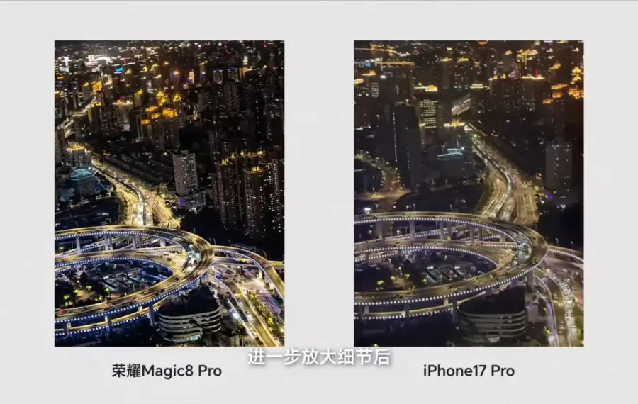Comparația directă a pus în evidență diferențe notabile în ceea ce privește capacitatea de zoom și claritatea la distanță. Camera de 200 MP de pe Honor Magic 8 Pro, promovată ca având funcția „Super Night Telephoto”, pare să livreze rezultate mai consistente și mai detaliate în scenariile de noapte cu zoom.