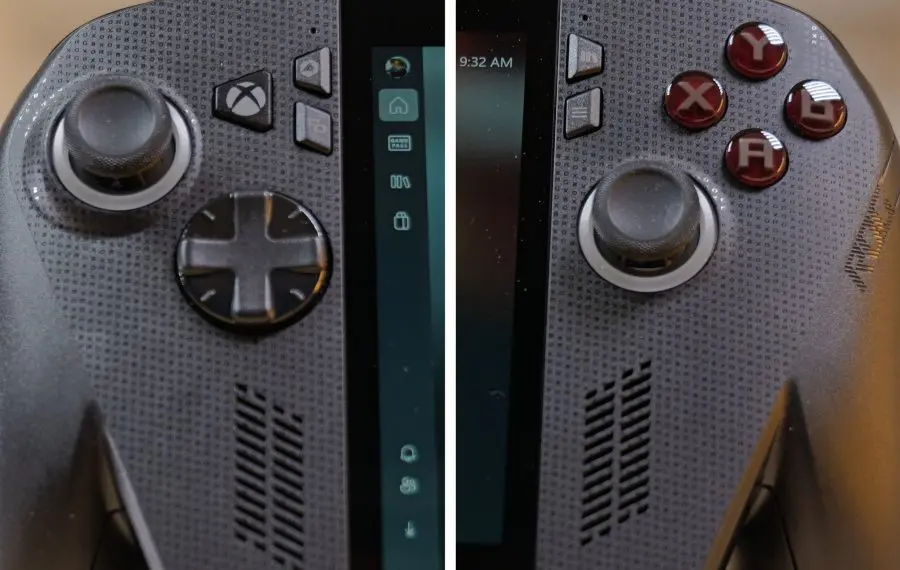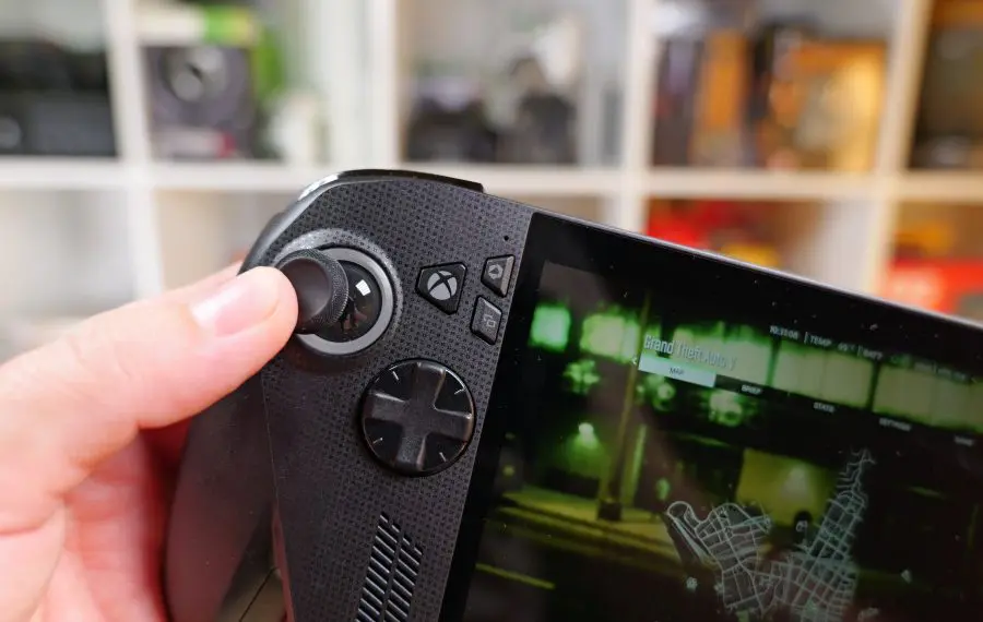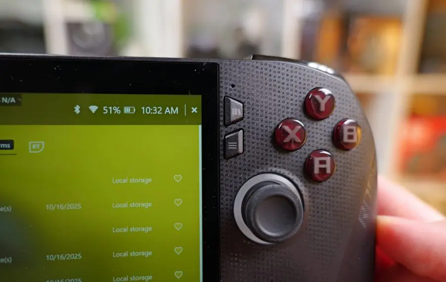 Tot datorită Xbox avem și butoane și stick-uri noi. Și aici avem parte de un upgrade mare, întrucât originalul Ally avea butoane cam anemice. Stick-urile, în special, sunt aproape identice cu cele de pe un controller de Xbox, iar butoanele se simt mai bine, cu apăsări mai precise. Trigger-ele analogice includ acum și vibrații, iar pe spate rămân acele butoane programabile M1 și M2 de pe modelele Ally deja existente. O mare noutate este debutul butonului Xbox, care devine foarte important, fiind folosit aproape exclusiv pentru navigarea noului software-ului. Dar vom vorbim imediat și despre interfață. Dintr-un motiv sau altul, butoanele view și menu, clasicele start și select, au fost inversate cu butoanele pentru setări rapide. Mi-a luat ceva timp să mă pot adapta la asta, mai ales că butonul de deasupra Start deschide implicit aplicația Xbox, ceea ce nu vrei să se întâmple în timpul unui joc.
