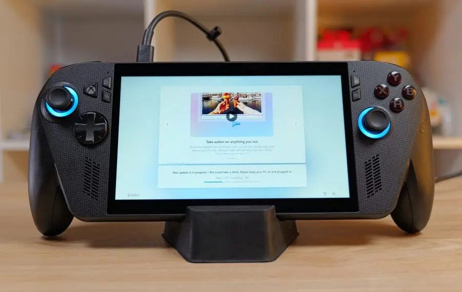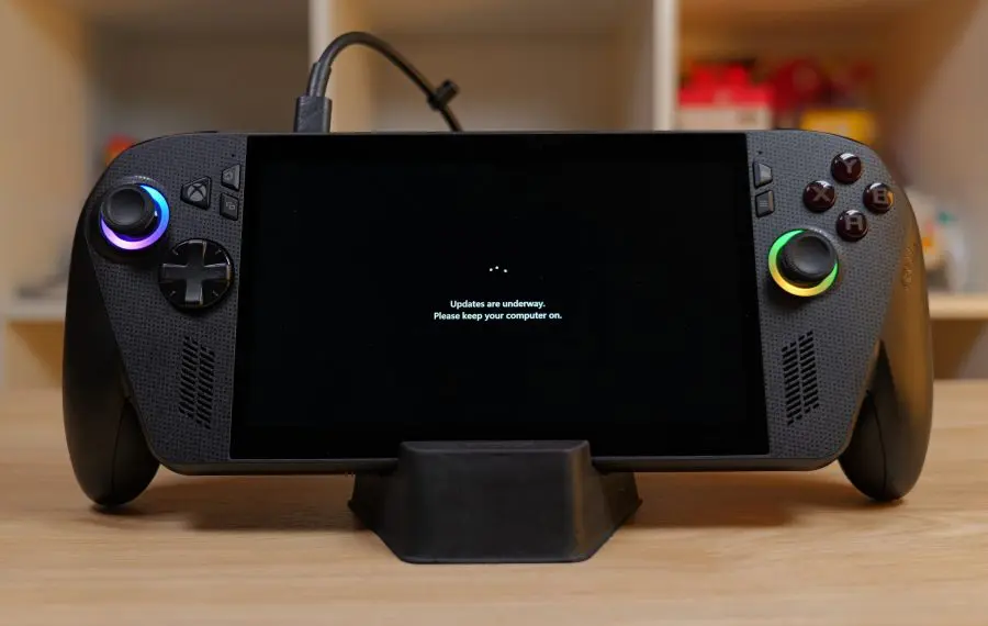 La prima pornire a trebuit să aștept literalmente ORE pentru a instala toate actualizările de Windows, toate update-urile aplicațiile ASUS Armoury Crate și MyASUS pentru a ajunge la zi cu driverele și ultimul BIOS. Abia apoi poți să începi să te joci relaxat pe noua ta consolă. Iar experiența Xbox Fullscreen nu este disponibilă din start, ci doar după ce ai toate update-urile instalate. Cândva, aleatoriu, la un restart, vei porni direct în fullscreen. Poate fi frustrant, mai ales pentru că vorbim despre un produs Xbox, care este prezentat direct gamerilor de console.