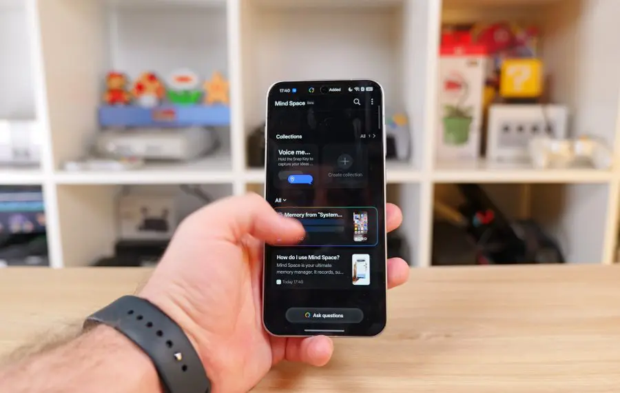 Implicit, butonul Snap Key de pe stânga salvează conținutul ecranului în MindSpace, un spațiu în care poți păstra notițe și diverse alte lucruri, pe care să le poți accesa rapid și să primești rezumate AI despre ele. Aceste date sunt acum accesibile și prin Gemini de la Google, ceea ce este un lucru foarte bun. Personal, prefer acest buton pentru acces rapid la lanternă.