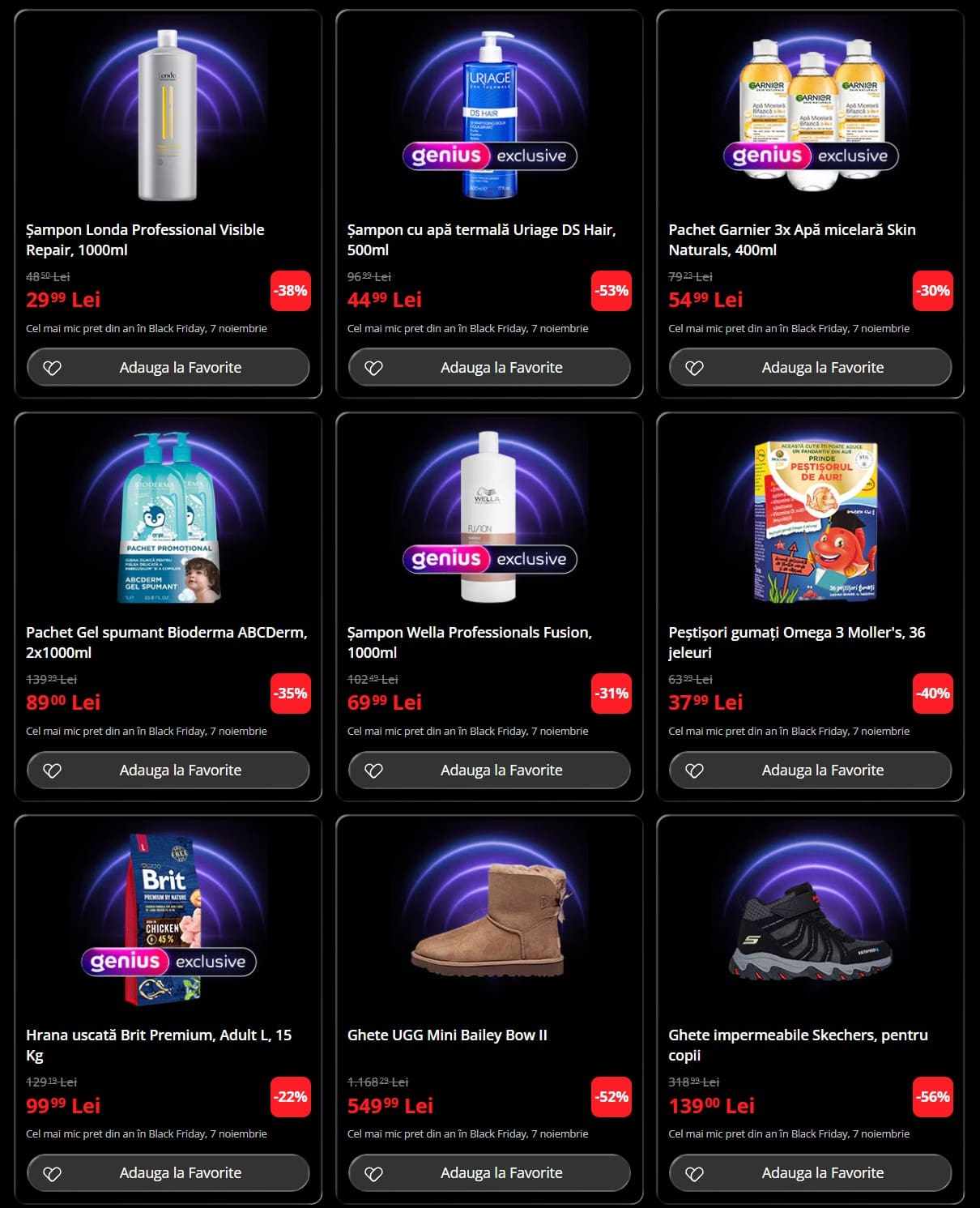 - Pachet Garnier 3x Apă micelară Skin Naturals, 400ml – 54,99 Lei (redus de la 79,23 Lei)