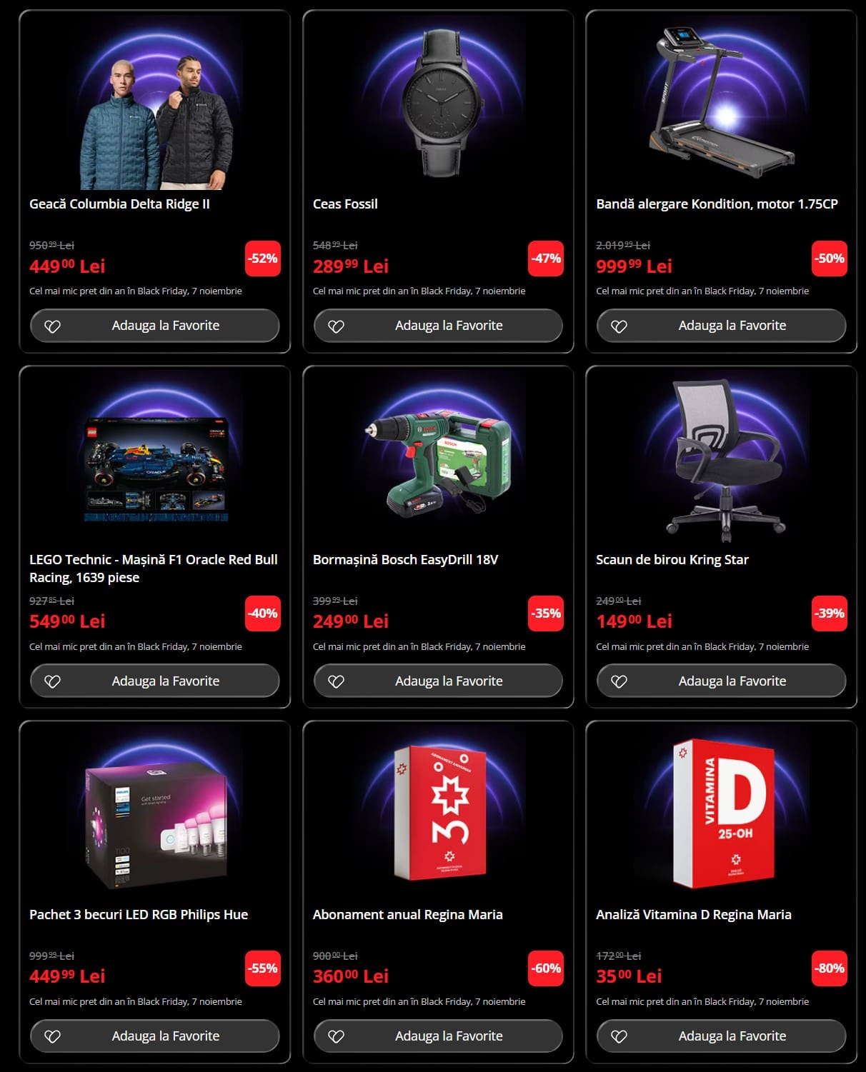eMAG a început să publice lista cu produsele „vedetă” care vor beneficia de cele mai mari reduceri în cadrul campanei sale de Black Friday, care va începe vineri, pe 7 noiembrie, de dimineață. Tradițional, campania de reduceri pornește după ora 7:00 și este anunțată prin intermediul aplicației de mobil care trimite o notificare către toți clienții. Dacă vreți să prindeți reduceri pentru produsele listate mai jos, care vor fi cu siguranță în cantități limitate, va trebui să le adăugați în listele de favorite sau chiar să le lăsați în coșul de cumpărături din seara de joi, 6 noiembrie.