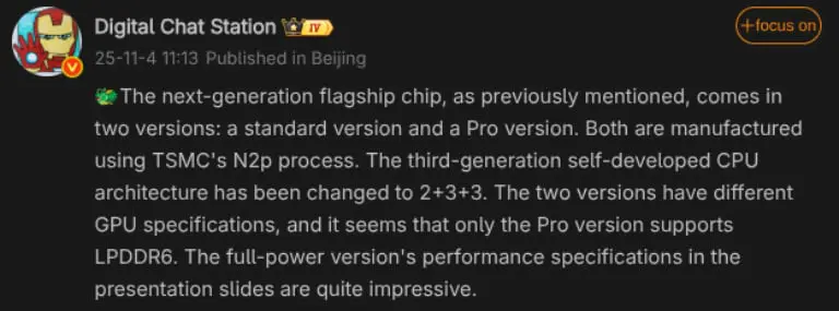 Conform scurgerilor de informații, cele două versiuni vor diferi în principal în ceea ce privește capacitățile GPU, și se așteaptă ca doar varianta Pro să suporte memoria LPDDR6.