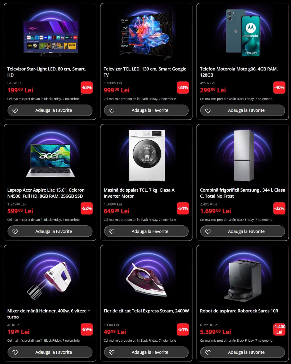 Citește și Black Friday 2025: eMAG a publicat primele oferte: televizor la 799 lei și reduceri de până la 80%