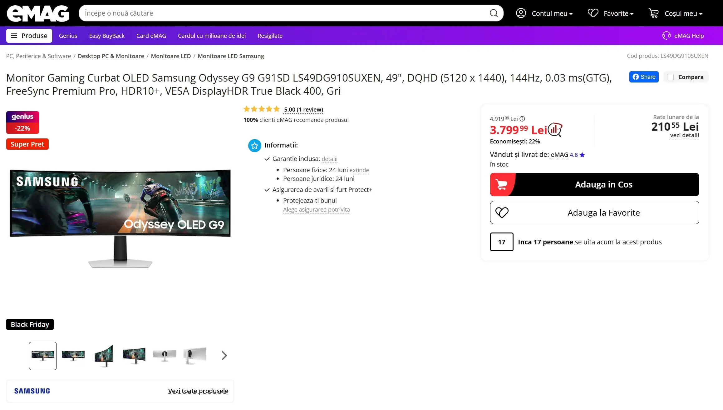 Am vorbit încă de ieri despre ofertele pe care le pregătesc cei de la Samsung cu ocazia Black Friday 2025, dar acum că văd și prețurile din teren e altă treabă. Și cum căutam prin oferta eMAG, mi-a sărit în ochi o ofertă chiar bună: Samsung Odyssey G9 OLED este disponibil la 3.799 de LEI. În mod normal, prețul pentru acest model se învârte prin jurul sumei de 4.500 – 4.700 de LEI, astfel că promoția de astăzi este chiar bună.
