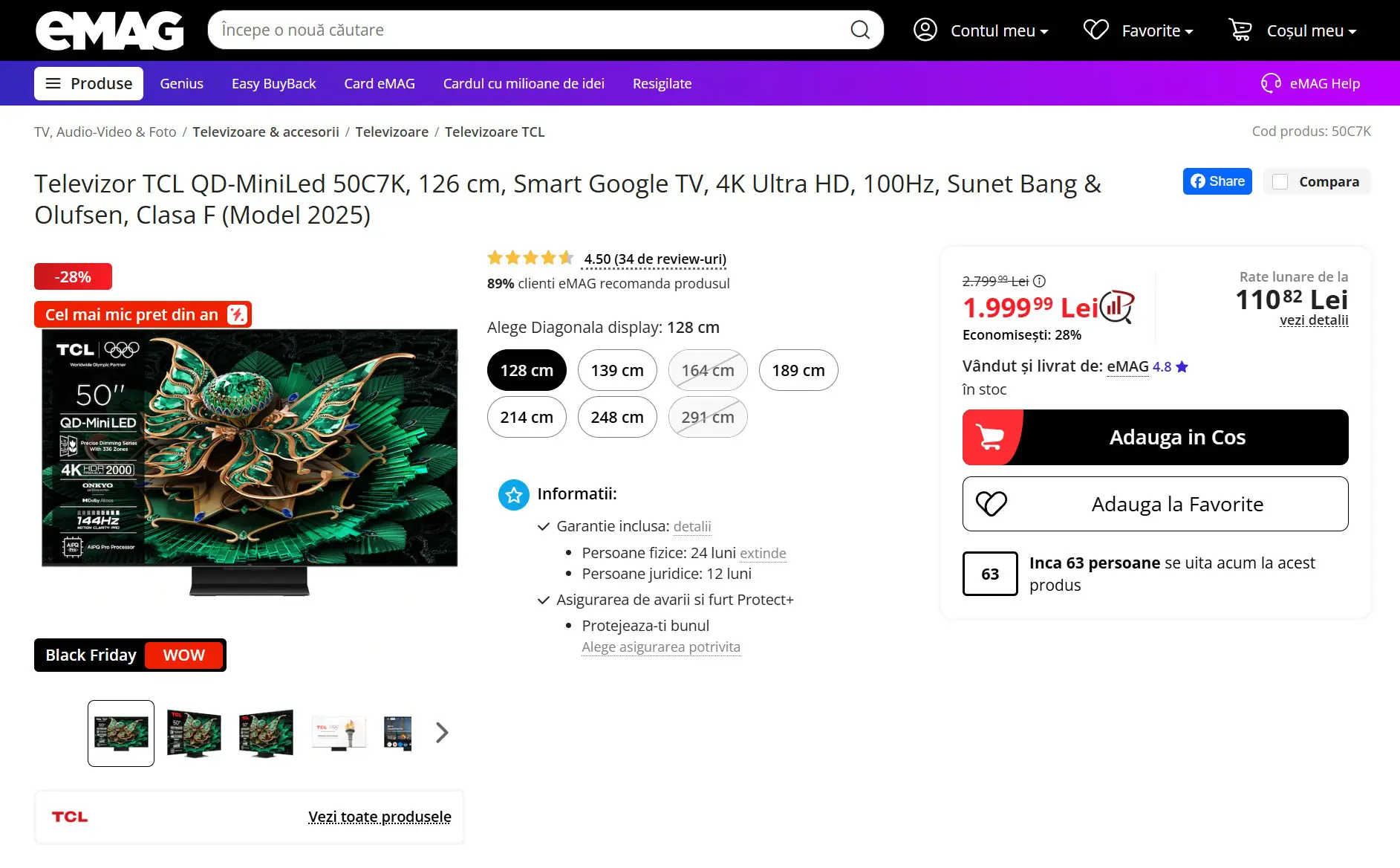 Cu așa reduceri la consolele de jocuri, este clar că de Black Friday 2025 ecosistemul de gameri pe PlayStation 5 a mai câștigat câțiva reprezentanți. Și cum modelele actuale de console pot rula jocuri la framerate-uri mari, nevoia unui ecran rapid a crescut și ea destul de mult. Din fericire, cu ocaiza Black Friday 2025 am găsit o ofertă super bună de TV numai bun pentru gaming: TCL 50C7K. Vorbim despre un model cu diagonala de 50 de inch, rezoluție 4K cu suport pentru high-refresh rate și-un sistem audio tunat de Bang&Olufsen pentru a te băga mai bine în atmosfera jocului sau serialului preferat.