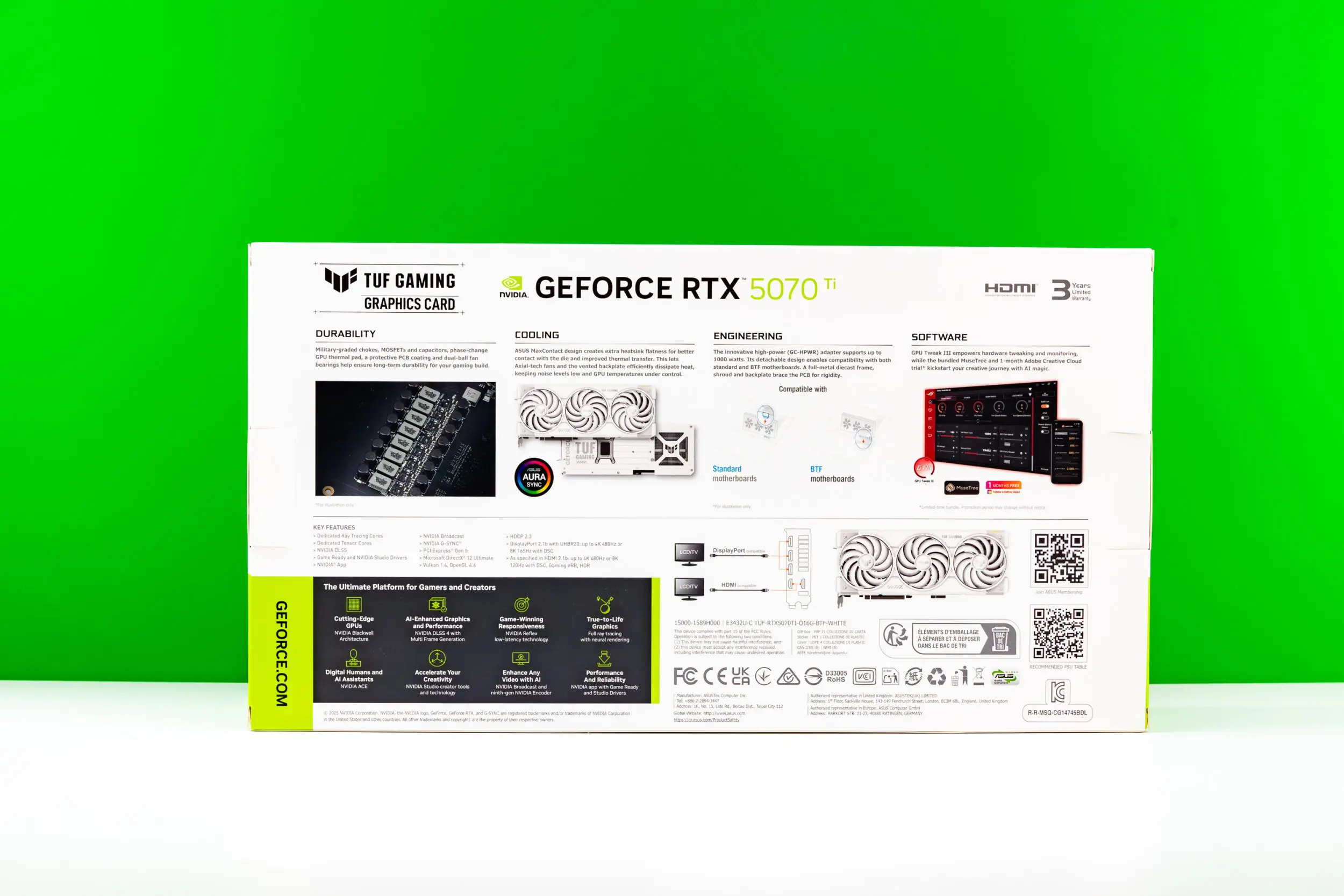 Dar înainte de a trece la testele de performanță, vreau să aruncăm o privire la placa video, cât și la configurația folosită pentru a obține rezultatele de astăzi. S-a ivit o ocazie numai bună să văd cu ochii mei, și să asamblez pentru prima dată, un sistem complet wireless. Cum adică? Fix cum ai citit! Distribuția de placă pe care am primit-o la teste este ASUS TUF Gaming GeForce RTX 5070 Ti BTF White Edition.