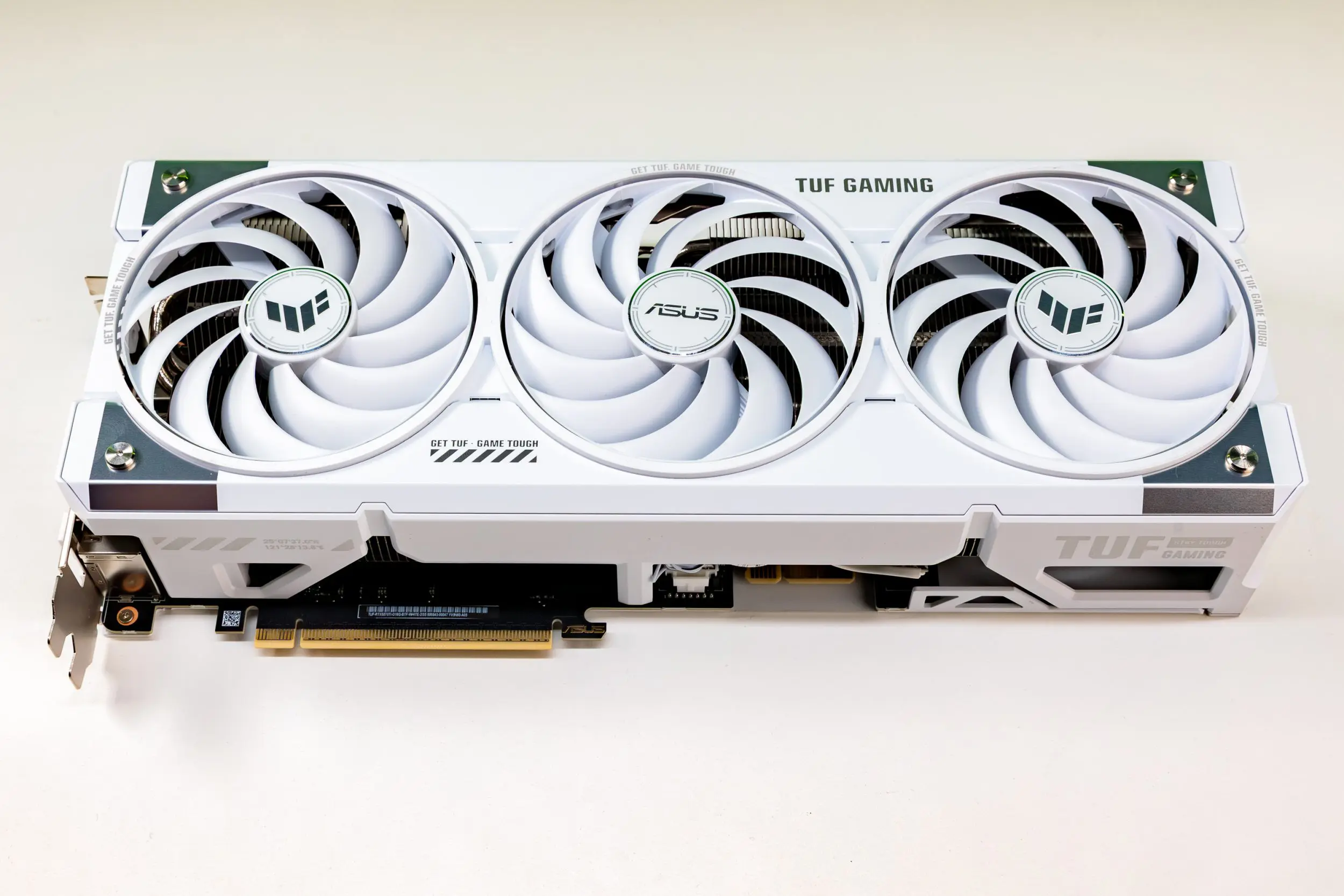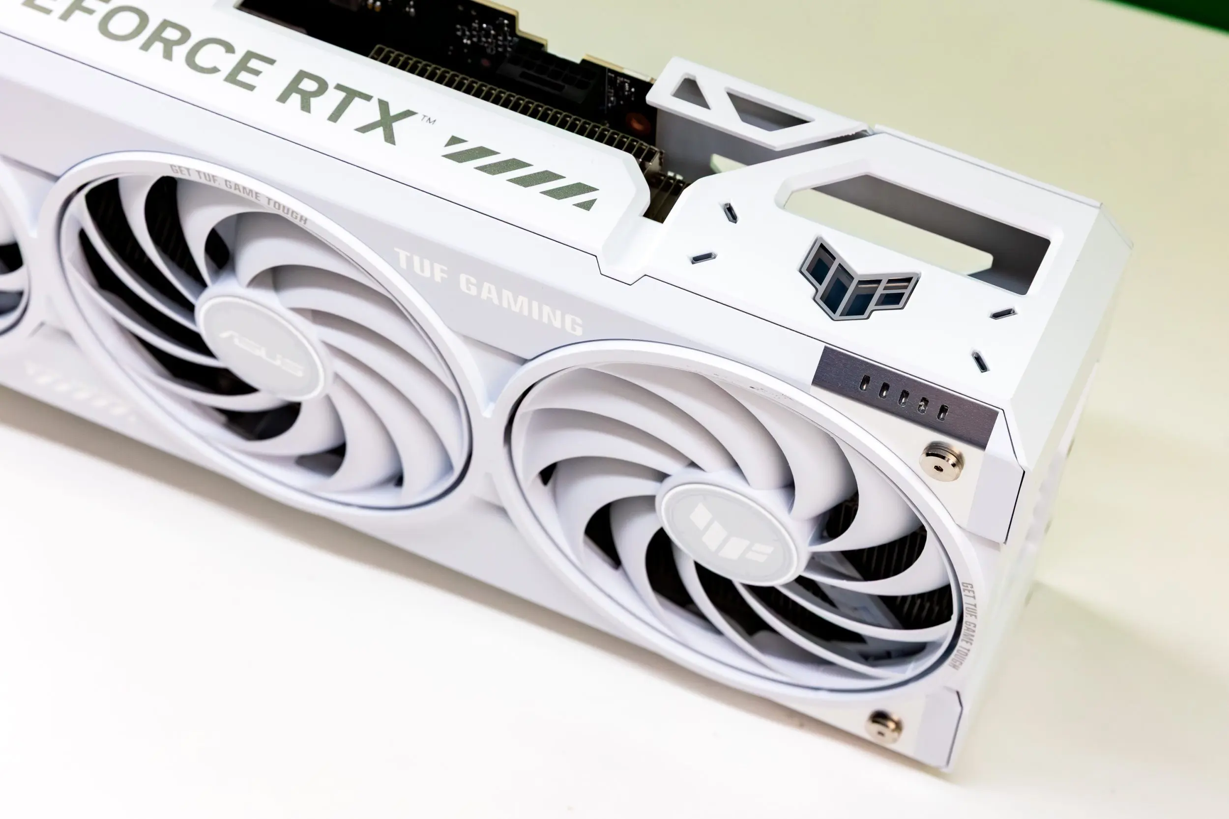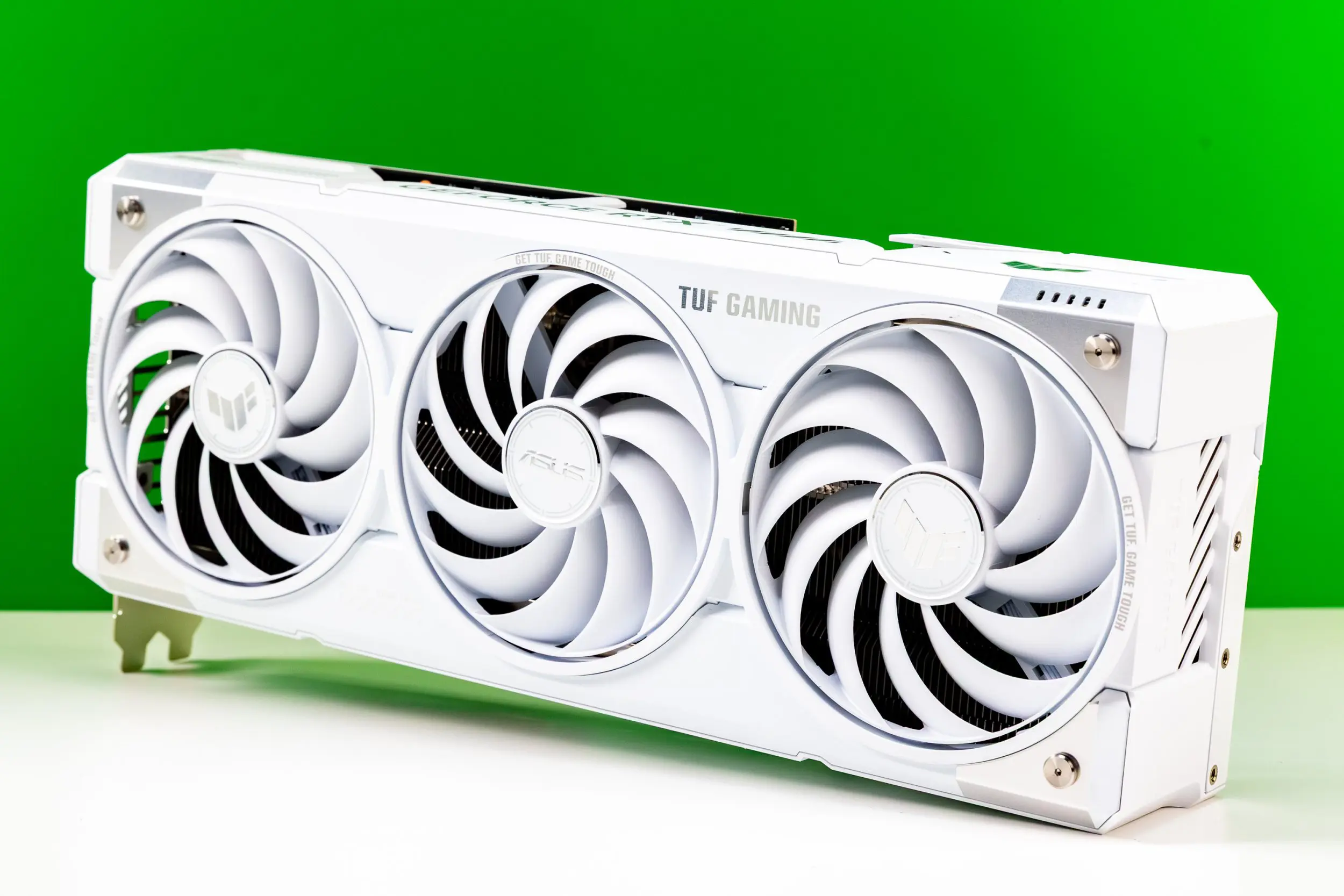 Cei de la ASUS au luat placa de la NVIDIA și au trecut-o prin tratamentul TUF Gaming. Adică i-au atașat o matahală de cooler cu grosimea de 3.125 sloturi. Dimensiunea asta îi asigură însă o răcire pe cinste, cu temperaturi maxime de 67°C în gaming la 4K. Și chiar dacă placa era în 100% utilizare și temperatura stătea sub 70, cele trei ventilatoare de pe heatsink nu au zis mare lucru. Le auzi când forjează, dar nu prea se disting printre ventilatoarele carcasei.