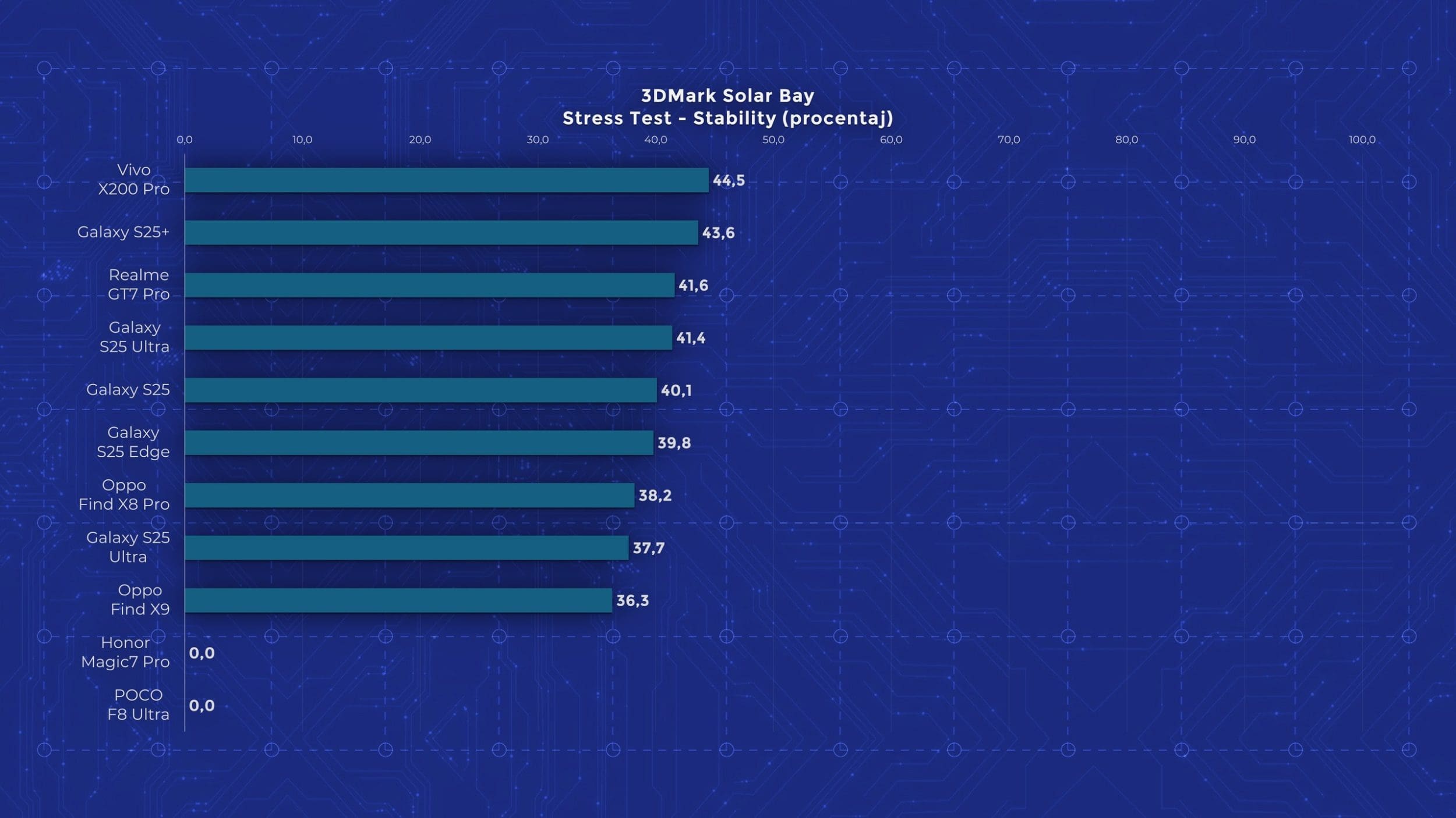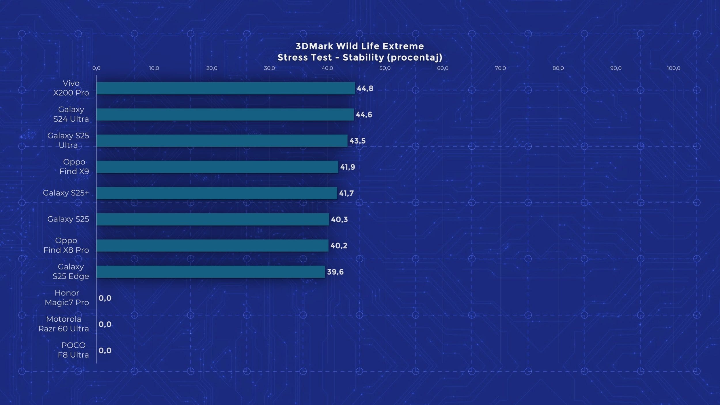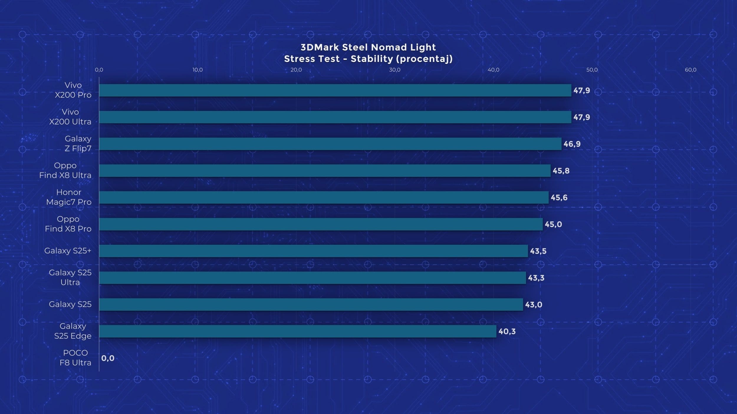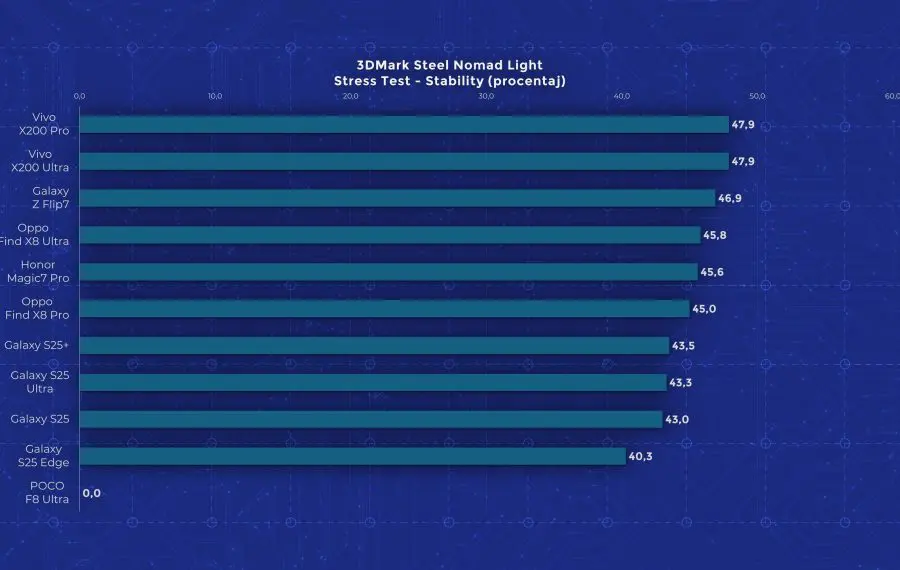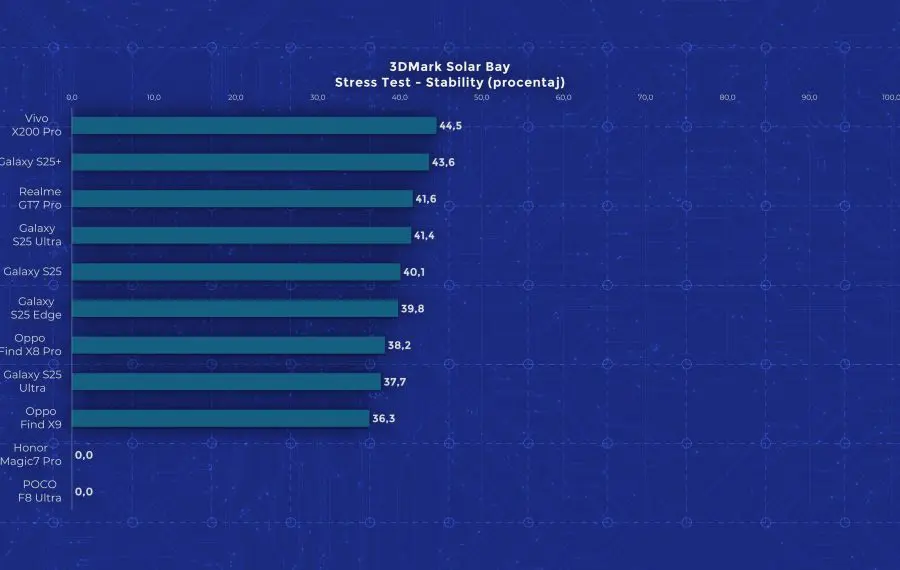 Și așa ajungem la performanță, unde POCO reușește să urce pe cele mai înalte culmi și totodată să se prăbușească. Așa cum îi stă bine unui telefon high-end, este echipat cu Snapdragon 8 Elite Gen 5, cu 16 GB memorie RAM și 512 GB stocare în varianta testată. Din păcate, această versiune nu vine la noi, ci doar cele cu 12 GB RAM, deci s-ar putea ca performanța să nu fie tocmai identică în teste. F8 Ultra promite multe, dar experiența anterioară cu acest procesor nu s-a ridicat la nivelul așteptărilor, așa că speram ca măcar pe POCO F8 Ultra să vedem o implementare mai promițătoare. Din păcate, rămâne în zona pe care am văzut-o cu Xiaomi 17 Pro Max. În majoritatea rezultatelor este cu doar puțin mai puternic decât Elite-ul de anul trecut și de câteva ori iese chiar sub Dimensity 9500, testat anterior pe Oppo Find X9. Dar cel mai dezamăgitor aspect este faptul că toată această performanță nu poate fi susținută în timp. Acesta este unul dintre puținele telefoane care nu a reușit să termine niciun test de stres din 3DMark.