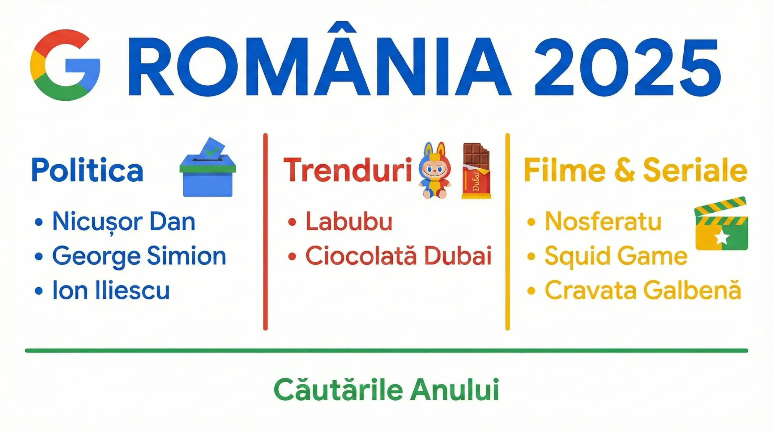 Anul 2025 se încheie sub semnul unor evenimente majore care au dictat agenda publică și, implicit, curiozitatea românilor pe internet. Google a publicat tradiționala retrospectivă a căutărilor, „Year in Search 2025”, care evidențiază o combinație fascinantă între momente politice istorice, dispariția unor figuri emblematice și o sete neobosită pentru divertisment și tehnologie.