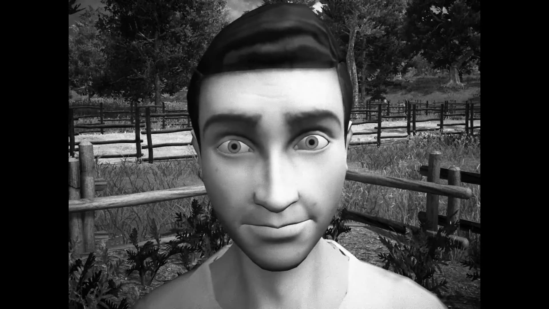 Și comparația cu un film nu este tocmai întâmplătoare. Însuși jocul se prezintă asemeni unui film, cu tot cu un aspect vizual inspirat de peliculele alb-negru ale anilor ’20 și cu un sunet constant de proiector în fundal. Iar motivul pentru asta este că Horses este creația lui Andrea Lucco Borlera, absolvent al universității de film de la Roma. Având în vedere „pedigree-ul”, nici nu mă miră că întregul joc are acest aspect de film mut, cu tot cu ecrane de text pe care sunt arătate replicile personajelor. Și nici că jocul „implicit” este în italiană cu subtitrări în engleză (are însă opțiunea de „full english”).