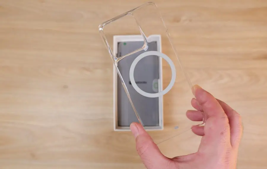 Ce are Motorola în pachet și nu au ceilalți însă este chiar o husă, una din plastic dur transparent, care nu protejează prea mult, dar măcar vine cu magneți pentru accesorii în stil MagSafe, pentru că da, acest telefon are încărcare wireless. Nu te-ai fi așteptat la asta de la un mid-range nu? Dar la rezistență la apă și praf IP68 și IP68, plus standardul militar 810H? Ei bine un telefon subțire le are și asta nu poate decât să mă bucure. Motorola Edge 70 se simte bine în utilizare și nu dă semne că ar aluneca ușor în utilizare, ceea ce este un lucru bun, având în vedere că este un telefon cu ecran de dimensiuni mari.