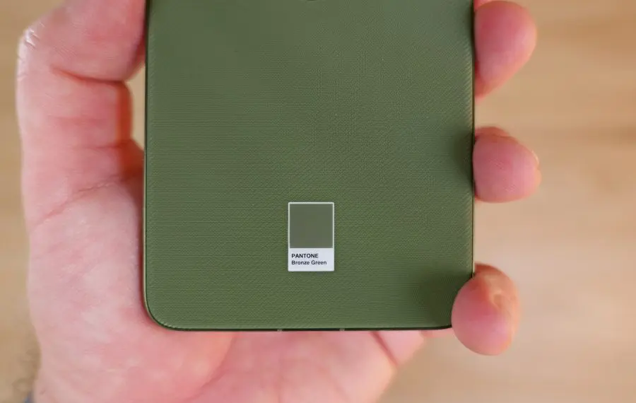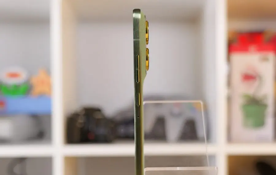 La nivel de construcție, avem de a face cu un telefon de calitate. Sigur, nu avem cea mai nouă și mai rezistentă sticlă pe ecran, ci doar Gorilla Glass 7i, dar e destul de bună și aceasta. Nu are titan pe margini precum modelele rivale, dar are o ramă de aluminiu care se simte bine în utilizare și asigură rigiditatea carcasei. Nu are sticlă pe spate, dar are un capac texturat aderent foarte plăcut în diverse culori de la Pantone, care încurajează utilizarea fără husă.