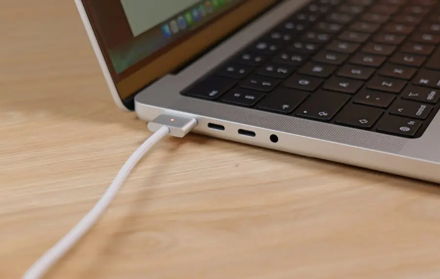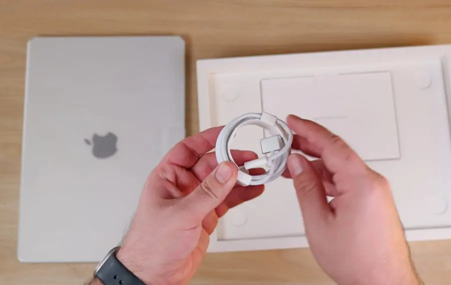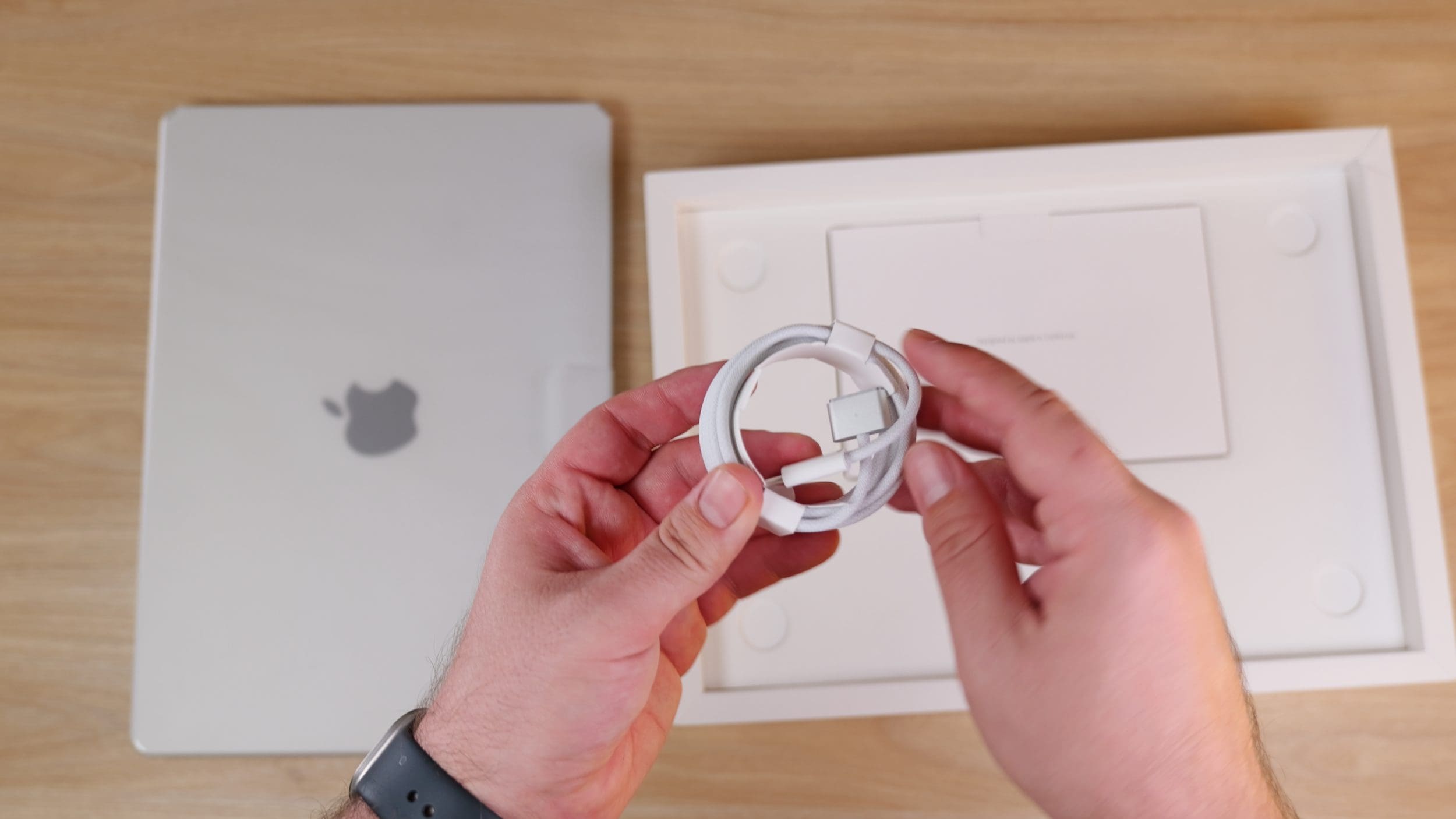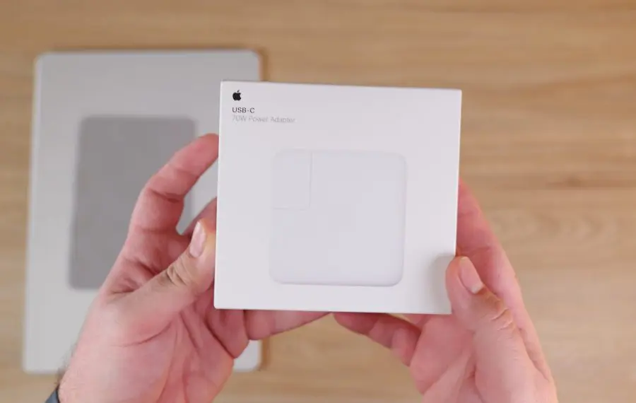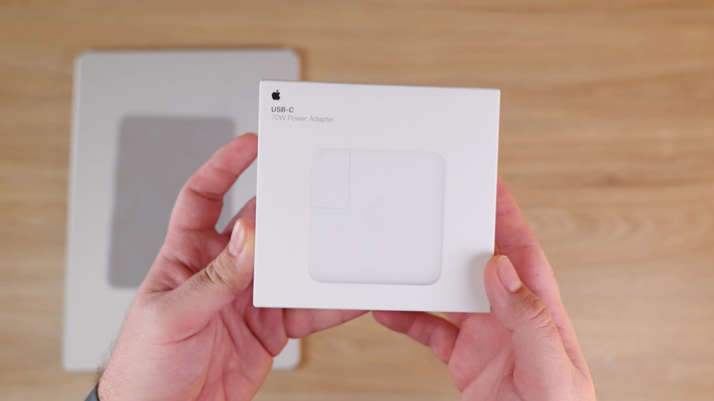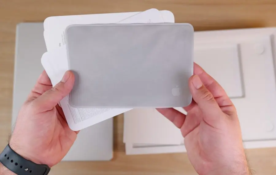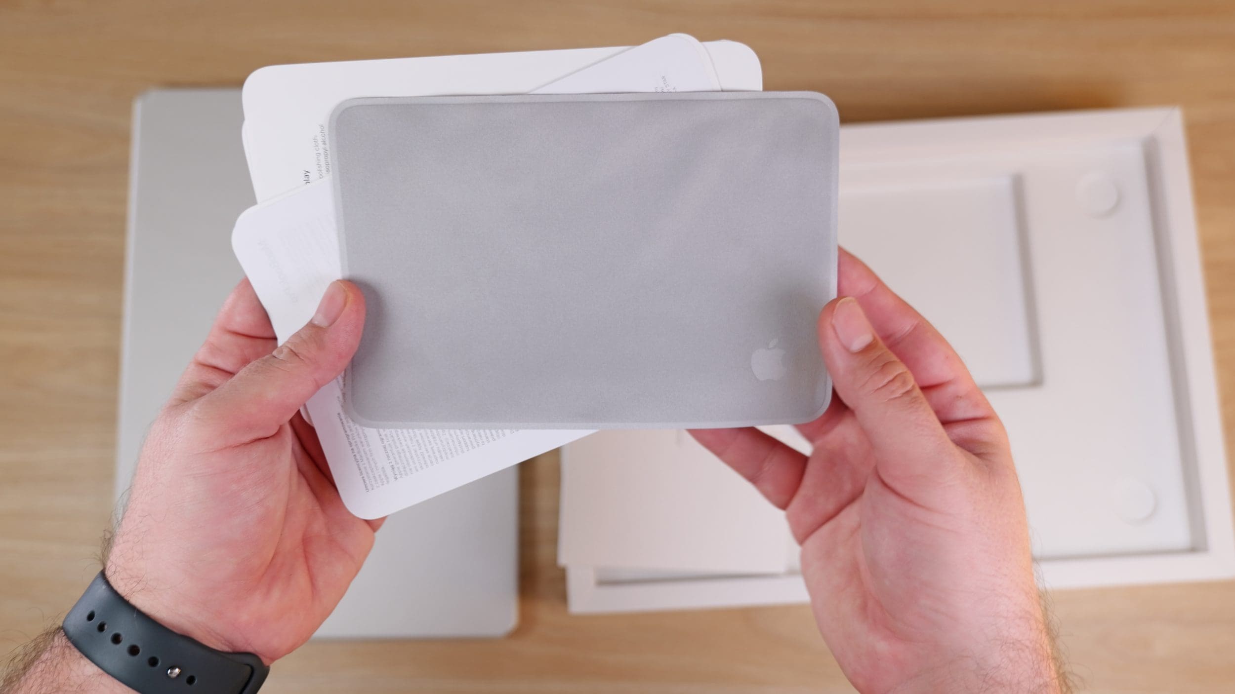 Și aici vine partea interesantă. Până acum, Apple livra alături de Mac-uri și încărcătoarele în pachet. MacBook Pro M5 este primul care NU mai include așa ceva. Vine cu un cablu cu USB-C la un capăt și MagSafe la celălalt, dar nimic altceva. Încărcătorul trebuie cumpărat separat, așa că deși prețul nu a crescut de la o generație la alta, la aceiași bani primești mai puțin acum. Vestea bună este că poți cumpăra oricare încărcător de 70W sau mai mult cu Power Delivery și va funcționa fără probleme. Apple a trimis la test însă unul original pe care l-am folosit cu succes. Măcar inclusă în pachet am găsit Apple Cloth, sau „iCârpa”, acea lavetă cu microfibre pe care compania o vinde separat la 20 de euro, care se găsește în pachetul modelelor cu ecran cu nanotextură.