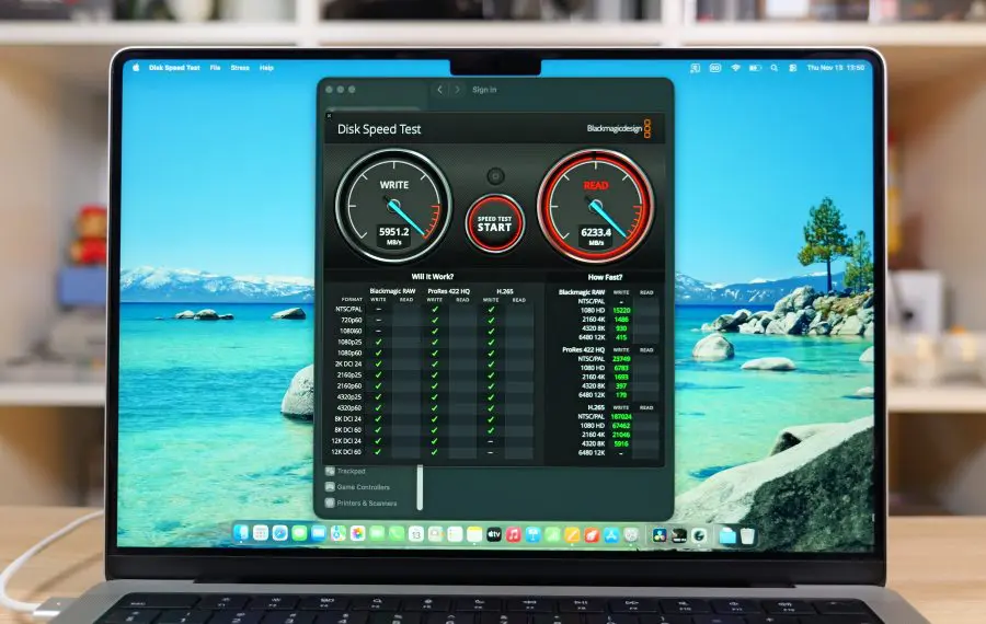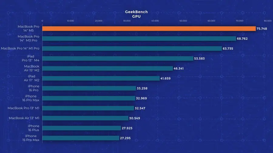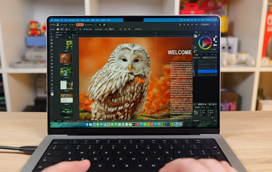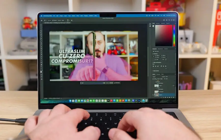 Fiind un laptop pentru profesioniști, am instalat Photoshop, noul Affinity Studio, DaVinci Resolve, etc. Totul a rulat perfect, dar asta nu este o mare noutate, pentru că totul rula perfect și pe modelele cu M1, M2, M3 sau M4. Aș zice că saltul de performanță de la M3 sau M4 nu este atât de mare, însă față de M1 și M2, M5-ul este semnificativ mai performant. Și nu o zic doar eu, o zic și testele de performanță. Pur și simplu totul rulează mult mai bine pe noul model, dar nu vei simți asta decât la render sau în sarcini dependente de un GPU puternic.