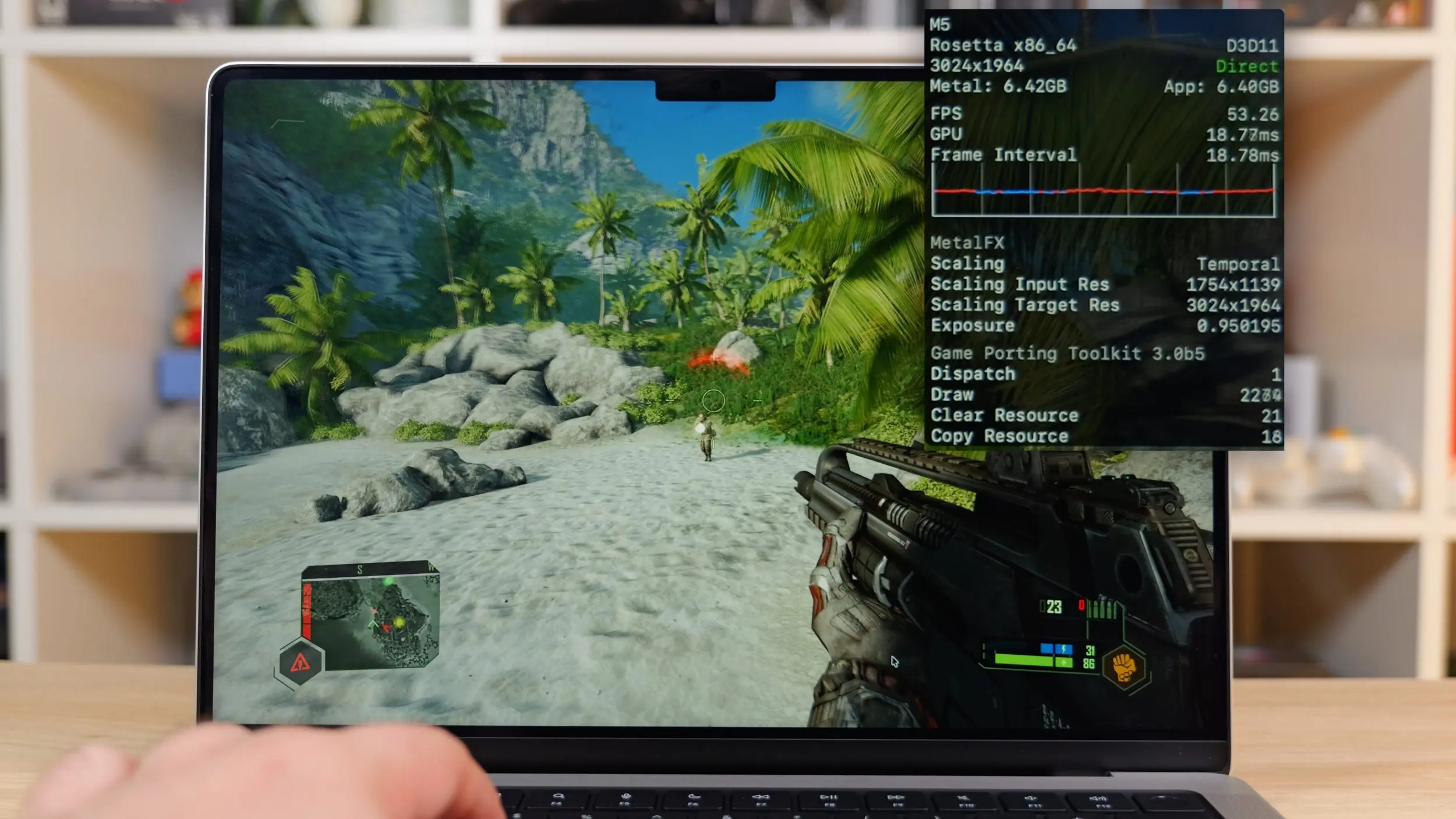 Dar nu puteam să închei aventura în gaming fără să îmi răspund la întrebarea „CAN IT RUN CRYSIS?” Și răspunsul este DA! Chiar Crysis Remastered, instalat printr-o aplicație de compatibilitate, nu foarte diferită de Proton-ul de pe Linux, numită CrossOver (link). Din păcate este o aplicație plătită, dar merge în versiune trial și permite rularea de aplicații și jocuri de Windows. Am pus Epic Games Store, am instalat Crysis și l-am rulat fără probleme. Am reușit să emulez si DLSS pentru a rula sub MetalFX cu ceva efort de copiat fișiere din SDK-ul Apple în „containerul” Crossover, putând beneficia astfel de alternativa Apple la upscaling cu AI. Totul s-a comportat OK. Totuși, nu am exagerat cu setările: profilul medium, fără ray tracing este metoda optimă de joc pe un MacBook cu M5 pentru Crysis. Și nu mai sus de 1080p sau pe acolo.