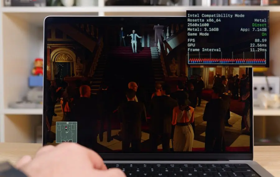 Am testat și Hitman. Doar prima parte a trilogiei este disponibilă pe Mac prin Steam, dar arată și rulează bine, la peste 60 de cadre pe secundă în modul de compatibilitate cu procesoarele Intel. E o experiență chiar bună, dar din păcate nu poți experimenta întreaga poveste pe Mac așa, ci trebuie să cumperi jocul din nou din App Store pentru întreaga serie „World of Assasination”.