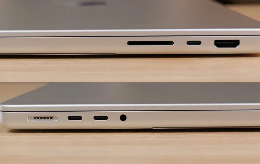 Pentru un laptop de productivitate, care se „bate” cu modele din gamele de gaming și studio pe partea de PC, MacBook Pro-ul mi se pare în continuare mai bine construit, fiind integral realizat din aluminiu, destul de ușor pentru a putea fi cărat oriunde fără probleme și destul de compact pentru a încăpea în majoritatea ghiozdanelor sau genților. Și chiar nu ai nevoie de încărcător peste tot. Poate oferi întreaga performanță pe baterie, deci dacă ai ceva de făcut urgent, poți o să faci de oriunde, nu doar unde ai o priză. Spoilers: și jocurile merg la fel de bine pe priză, dar ajungem și acolo.