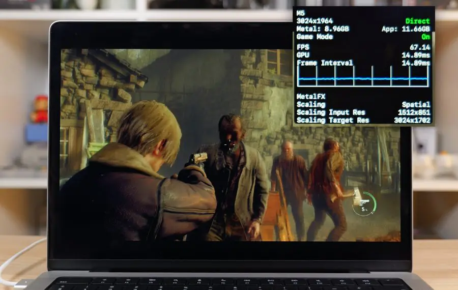 Și pentru că nu m-am putut abține, am rulat și câteva jocuri, măcar așa de curiozitate. Din păcate, gaming-ul pe Mac încă nu este la un nivel acceptabil pentru un gamer hardcore ca mine și nu din cauza performanței, ci din cauza suportului software. Au început timid să apară jocuri pe Mac precum cele din seria Resident Evil, Cyberpunk și alte câteva, însă nu pot spune că ai o selecție vastă. Și multe dintre ele, precum Assassin’s Creed Shadows trebuie cumpărate din nou din App Store, pentru că nu există magazinul Ubisoft Connect pe Mac.