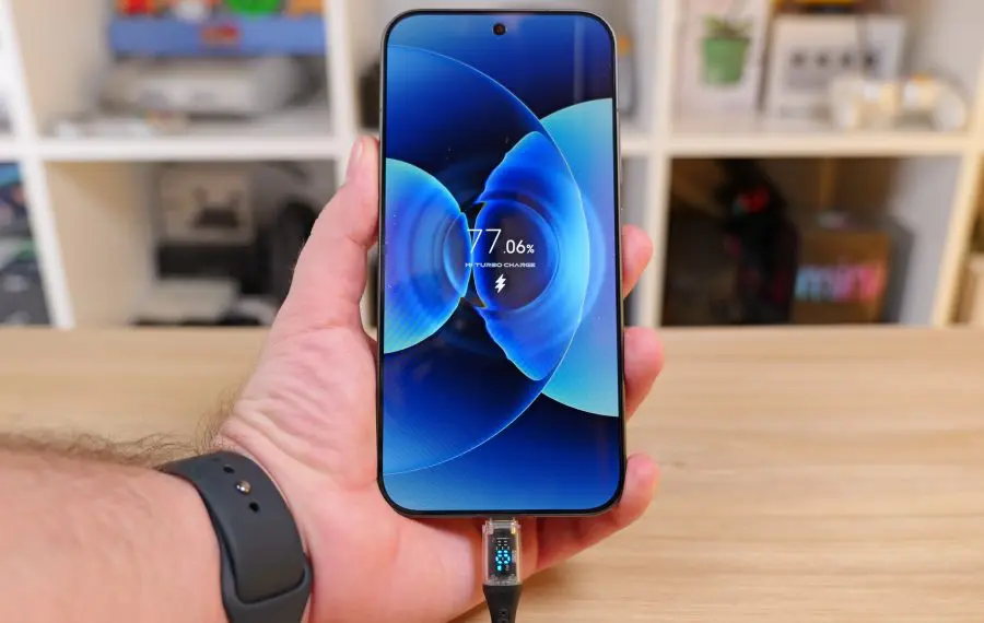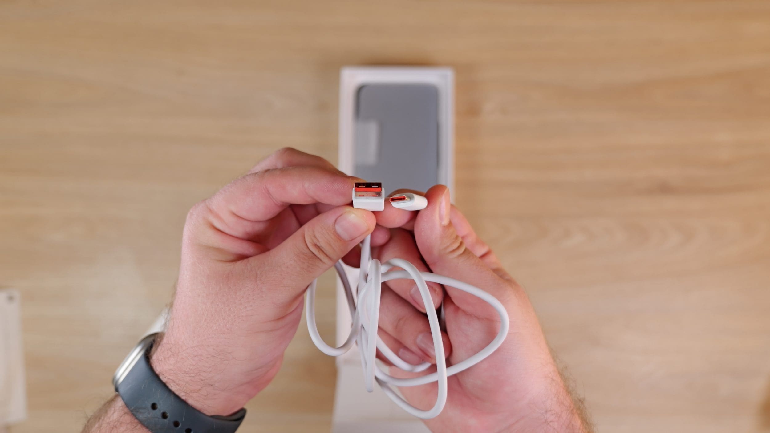 Deci avem o combinație de bun dar și mai puțin bun la construcție. Dar unde câștigă câteva puncte Xiaomi este la capitolul accesorii. Am zis deja că vine cu folie pe ecran, dar producătorul chinez livrează telefonul alături de o husă de plastic transparent (sincer nu foarte utilă, având în vedere că nu protejează partea de jos), cât și cu un încărcător de 100W și cablul aferent. Acesta din urmă are însă doar mufă USB-A… în 2025. Este clar mai bine decât să vină fără, dar m-aș aștepta la ceva mai modern, sincer, pentru compatibilitate cu toate încărcătoarele moderne cu Power Delivery. Fun fact! Am testat husa de pe Xiaomi și pe iPhone și se potriveste aproape perfect, mai puțin la butoanele, care sunt amplasate diferit. Mie mi se pare că acesta este încă un indiciu că design-ul nu este tocmai o coincidență.