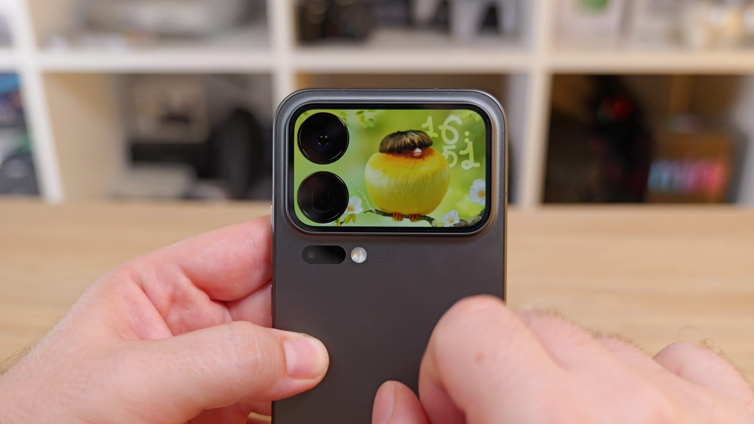 Dar Xiaomi 17 Pro Max are și acel ecran de pe spate, cu diagonală de 2,9”, construit pe aceeași tehnologie precum cel principal. Astfel, calitatea va fi identică, indiferent la care te uiți. Problema celui de pe spate este însă faptul că nu prea te ajută foarte mult. Deși este „marea noutate”, tot ce poți pune pe el sunt diverse tipuri de fundaluri. Unele interactive, cu animale 3D, altele mai practice, care pot afișa vremea sau ora și unele pur decorative, precum fundaluri foto. Pe mine unul mă lasă rece aceste capabilități și sper ca Xiaomi să adauge în timp și alte funcții, inspirate de ce am văzut pe pliabilele flip, precum widget-uri sau altele. Are și funcție always on display, dacă vrei să consumi mai multă baterie… Acest ecran are o singură funcție cu adevărat utilă, dar vom vorbi despre ea abia la capitolul „camere”.