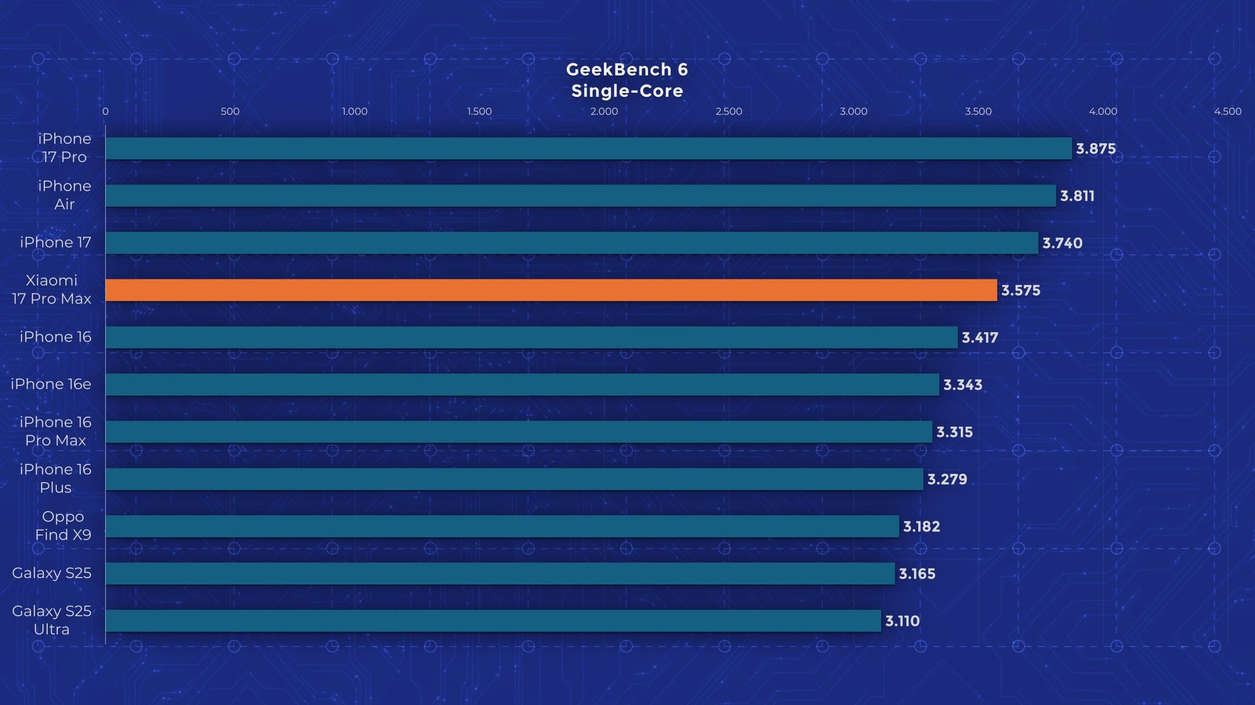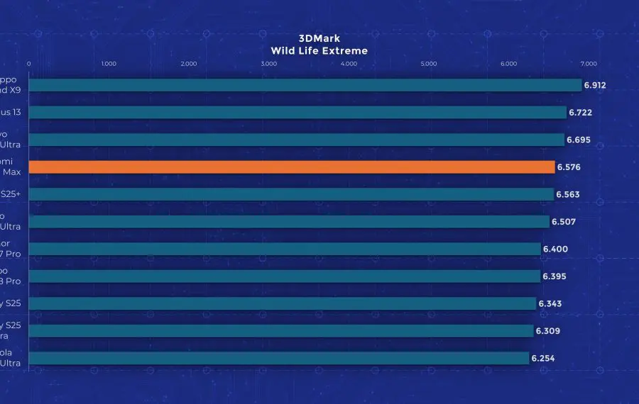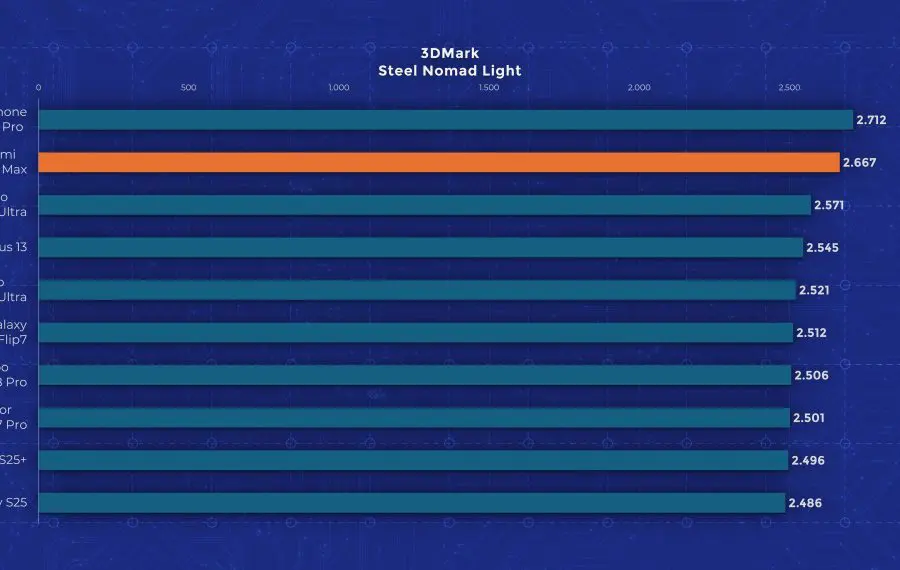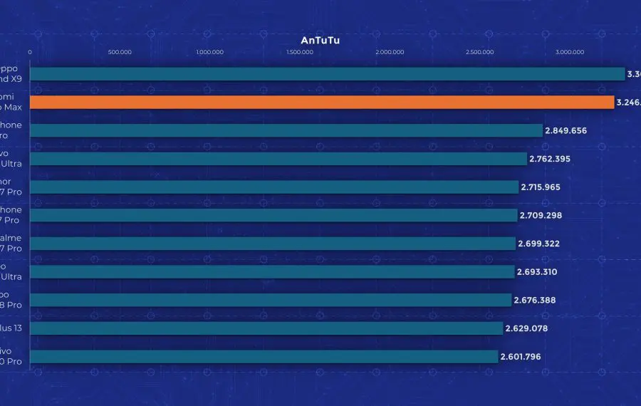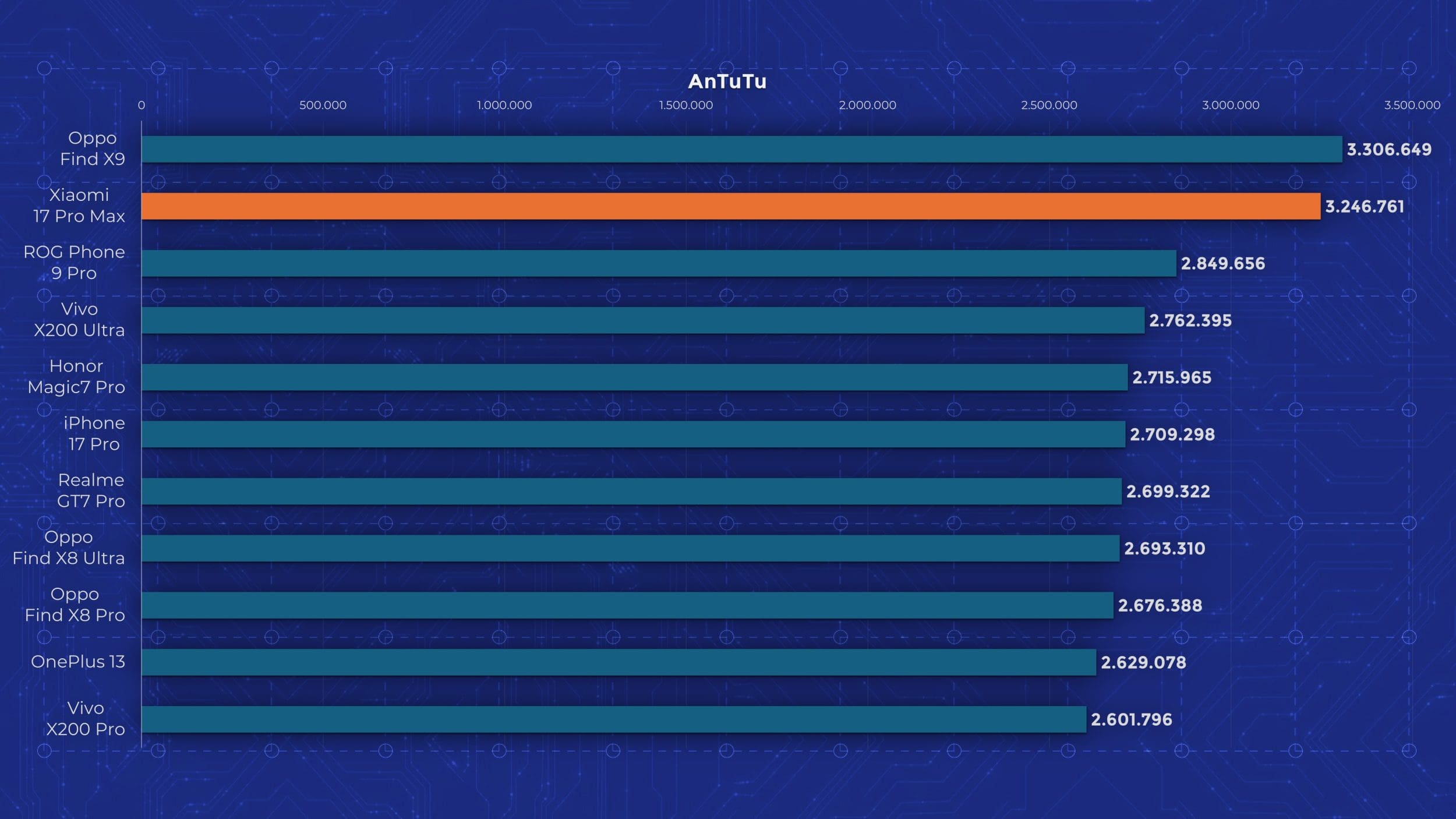 Acum vorbim însă despre performanță, și aici Xiaomi a marcat o premieră pe connect. A fost primul telefon ope care l-am testat cu noul chipset Snapdragon 8 Elite Gen 5, cel mai puternic procesor de mobil al momentului. Doar că în implementarea Xiaomi, acesta nu pare să fie cu mult peste Snapdragon 8 Elite-ul de anul trecut. Întrece în majoritatea testelor toate flagship-urile cu procesorul din generația precedentă, dar diferența de performanță este în general mică. Ba chiar am fost surprins să văd că Find X9 de la Oppo cu Dimensity 9500 reușește să îl întreacă, deși în teorie ar trebui să fie mai lent.