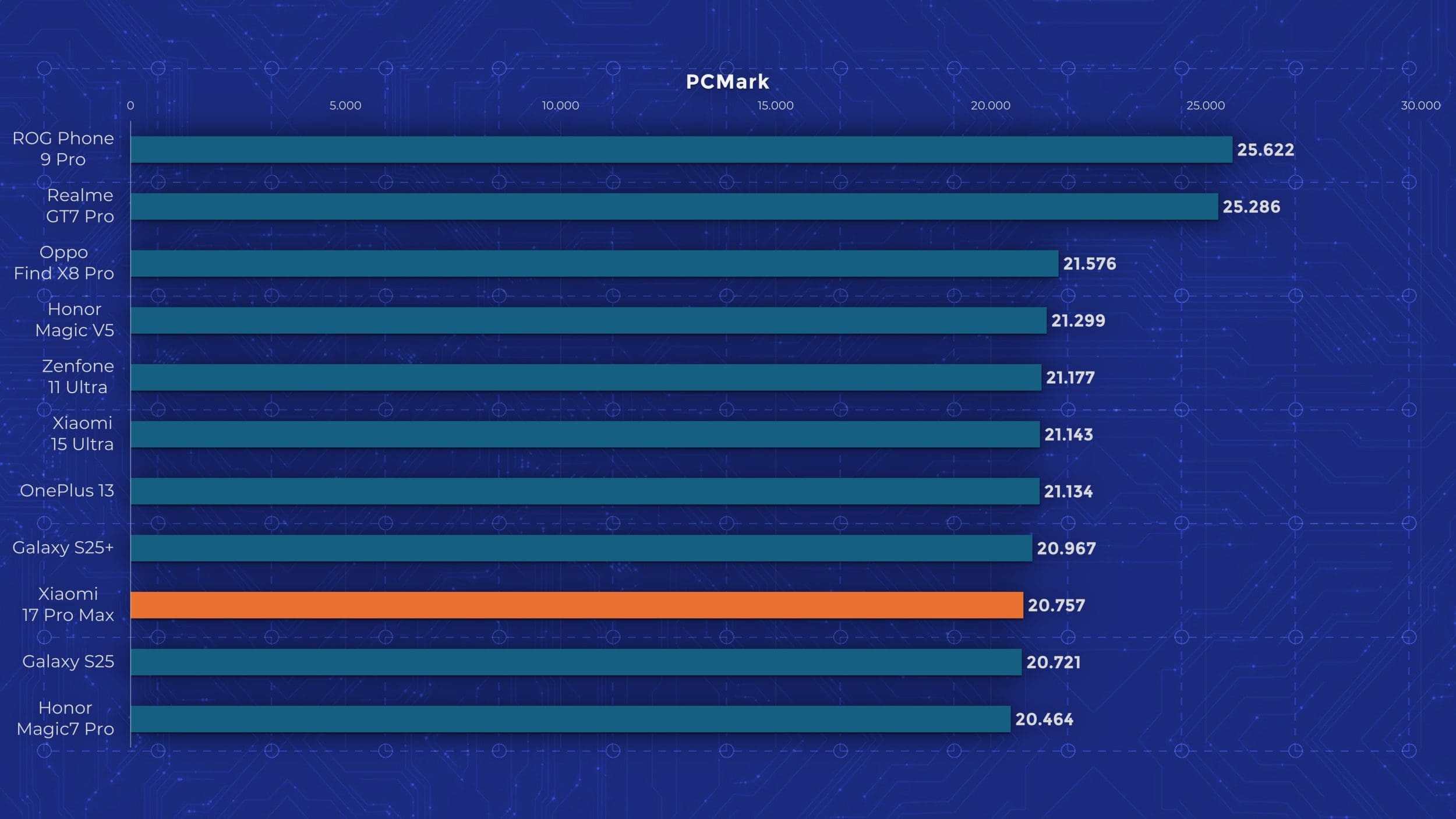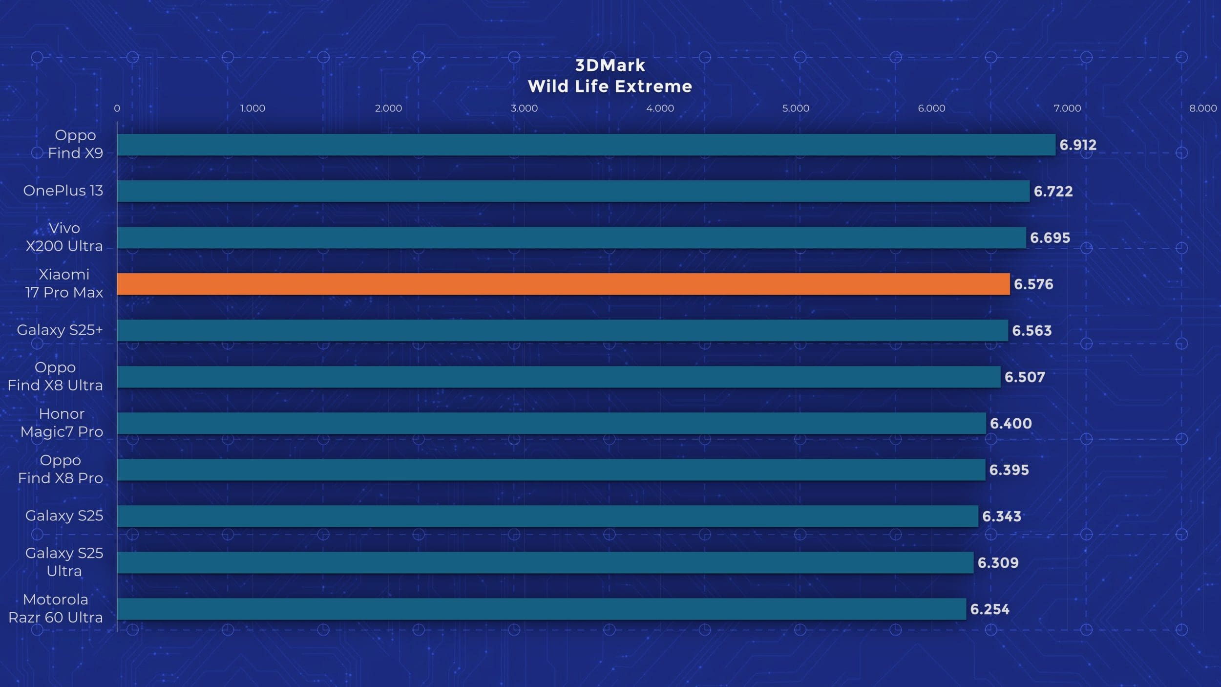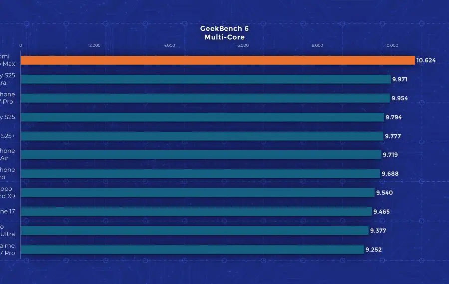 Acum vorbim însă despre performanță, și aici Xiaomi a marcat o premieră pe connect. A fost primul telefon ope care l-am testat cu noul chipset Snapdragon 8 Elite Gen 5, cel mai puternic procesor de mobil al momentului. Doar că în implementarea Xiaomi, acesta nu pare să fie cu mult peste Snapdragon 8 Elite-ul de anul trecut. Întrece în majoritatea testelor toate flagship-urile cu procesorul din generația precedentă, dar diferența de performanță este în general mică. Ba chiar am fost surprins să văd că Find X9 de la Oppo cu Dimensity 9500 reușește să îl întreacă, deși în teorie ar trebui să fie mai lent.