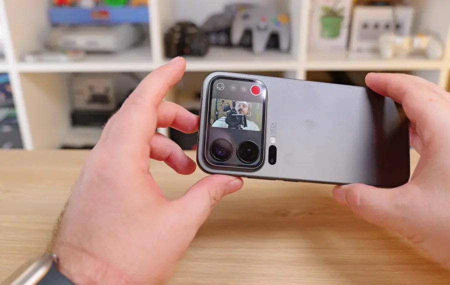 Dar Xiaomi poate să facă ceva ce iPhone nu poate: să îți ofere performanța camerei principale pentru vlogging, datorită ecranului de pe spate. Ideal ar fi să stai pe loc când filmezi din cauza problemelor de stabilizare, dar pot spune că doar pe telefoane pliabile am mai văzut calitate așa înaltă la înregistrare de tip selfie. Când compari cu ce înregistrează camera frontală diferența este evidentă.