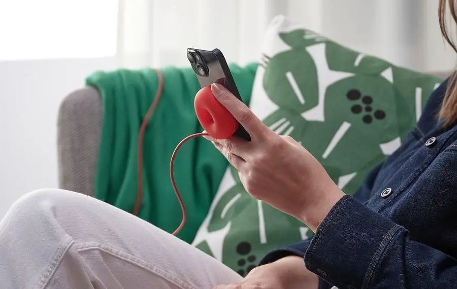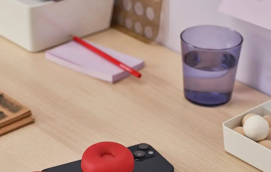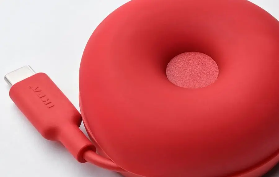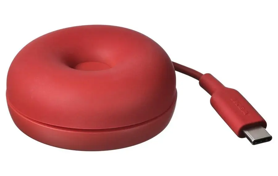 Noul accesoriu VÄSTMÄRKE, listat în SUA la prețul de 10 dolari (care va ajunge probabil în europa pe la 10-12 euro), atrage atenția printr-un design inedit din silicon roșu, care amintește vizual de o gogoașă. Această formă nu este doar o alegere stilistică, ci are și un rol practic, întrucât funcționează ca un suport ergonomic pentru degete, similar sistemelor populare de tip PopSocket. Mai mult, structura din silicon servește drept spațiu de stocare pentru cablul USB-C integrat, oferind o soluție ingenioasă pentru managementul firelor.