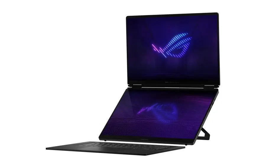 Punctul central al noului dispozitiv este configurația sa unică de ecrane. Ambele panouri sunt tactile, de tip ROG Nebula HDR OLED, oferind o rezoluție 3K și o rată de reîmprospătare de 120 Hz. Această specificație garantează imagini vibrante, negru profund și o claritate excepțională, esențiale pentru jocurile moderne și editarea video profesională.