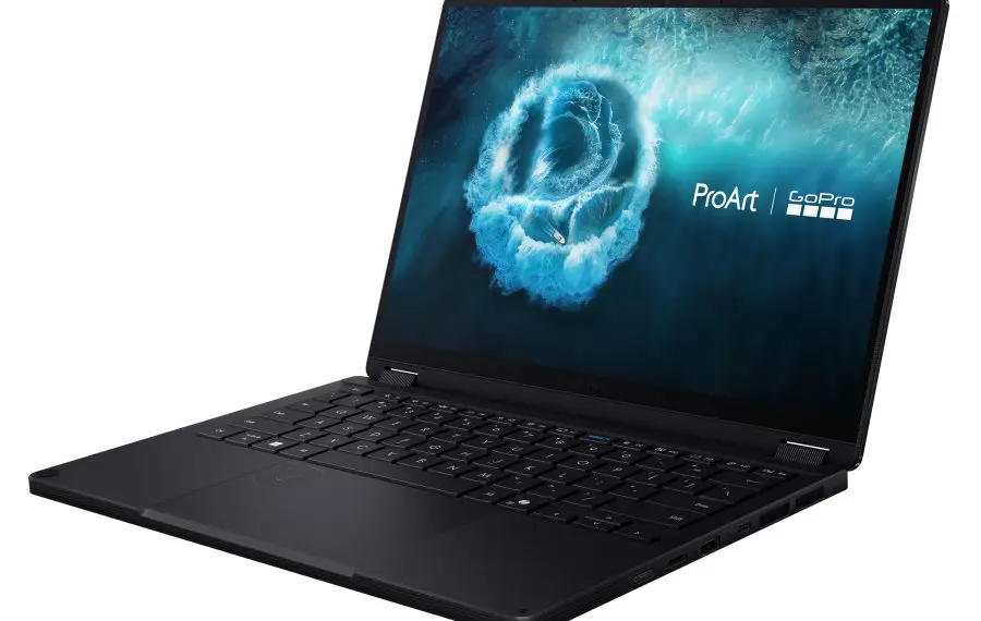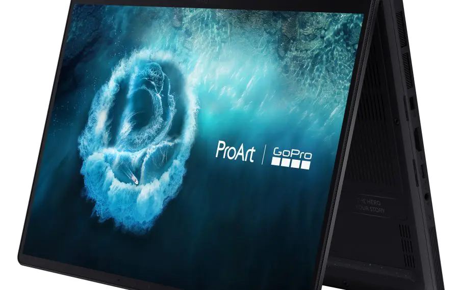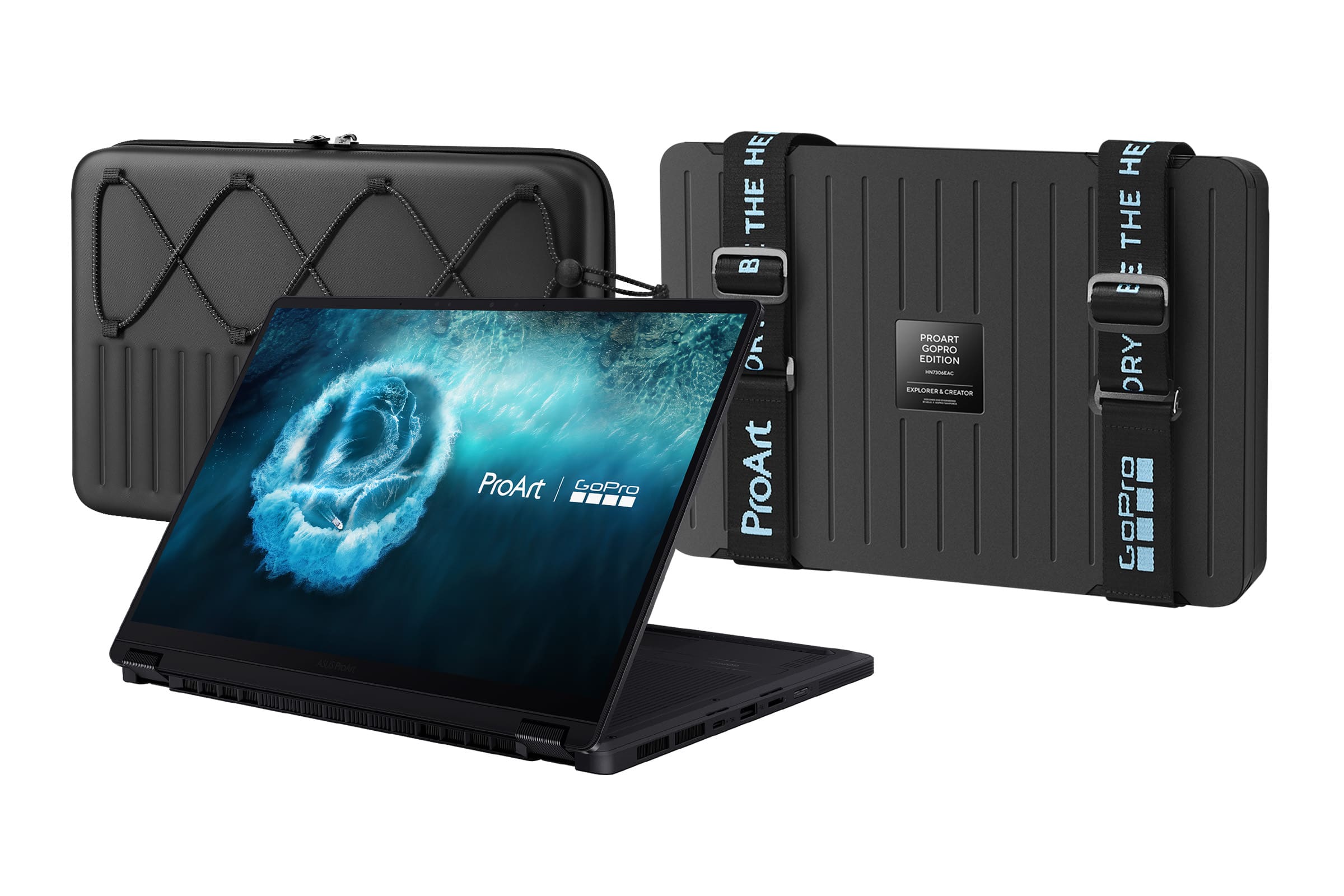 Vedeta colecției este acest ProArt GoPro Edition, laptop convertibil de 13 inchi, dezvoltat împreună cu GoPro. Dincolo de designul robust inspirat de camerele de acțiune, dispozitivul integrează o tastă dedicată „GoPro Hotkey” și aplicația ASUS StoryCube cu funcții AI exclusive. Aceasta poate clasifica automat scenele video 360° și organiza conținutul pe baza datelor GPS. Hardware-ul este impresionant: procesor AMD Ryzen AI Max+ 395, NPU de 50 TOPS și 128 GB memorie unificată.
