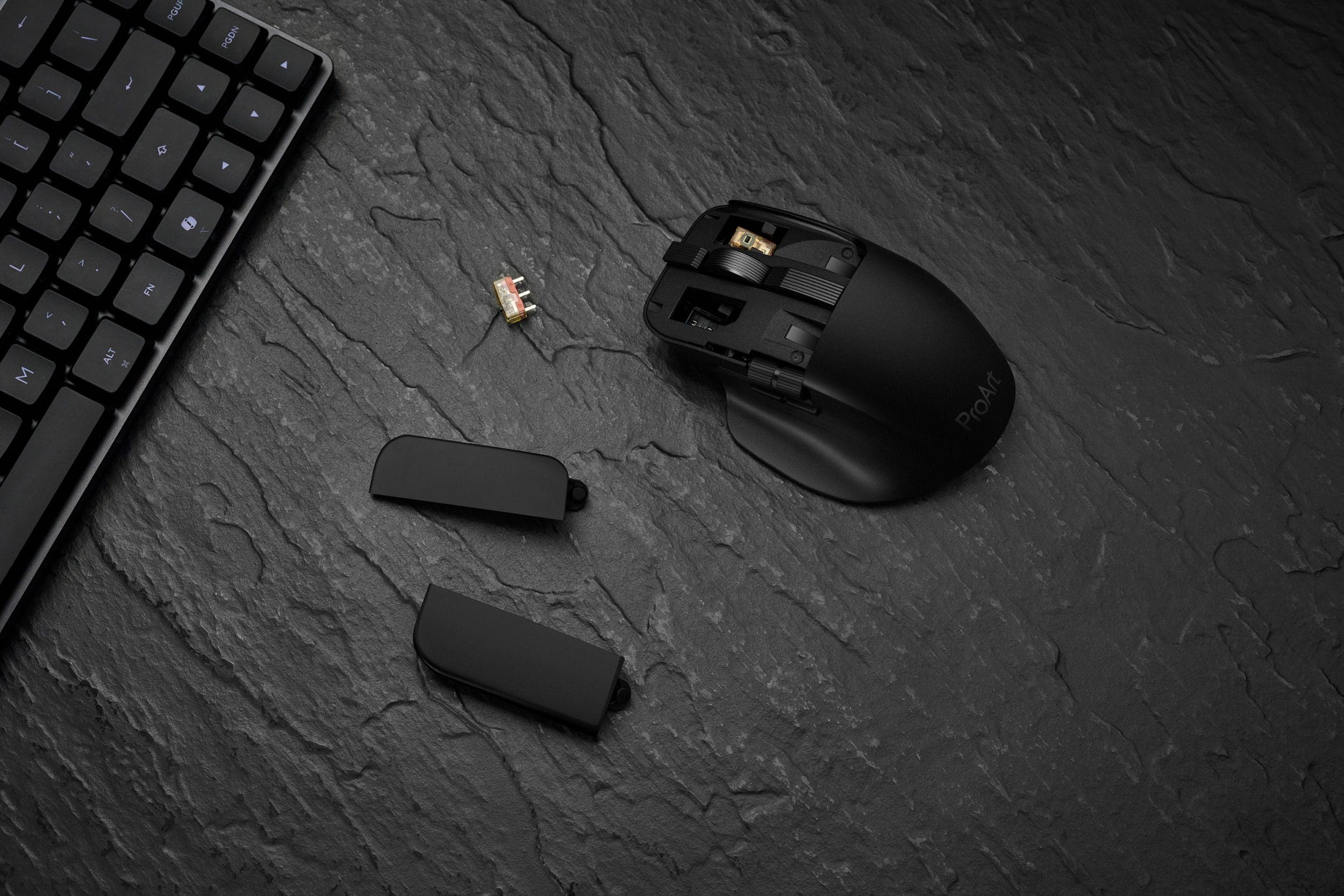 Mouse-ul ProArt (MD301) este gândit drept instrument de precizie cu senzor de 8000 DPI și vine cu o caracteristică unică: butoane interschimbabile compatibile cu switch-uri micro și optice. Suportă conectivitate multiplă (USB, 2.4GHz, Bluetooth) și are o rotiță de scroll de mare viteză.